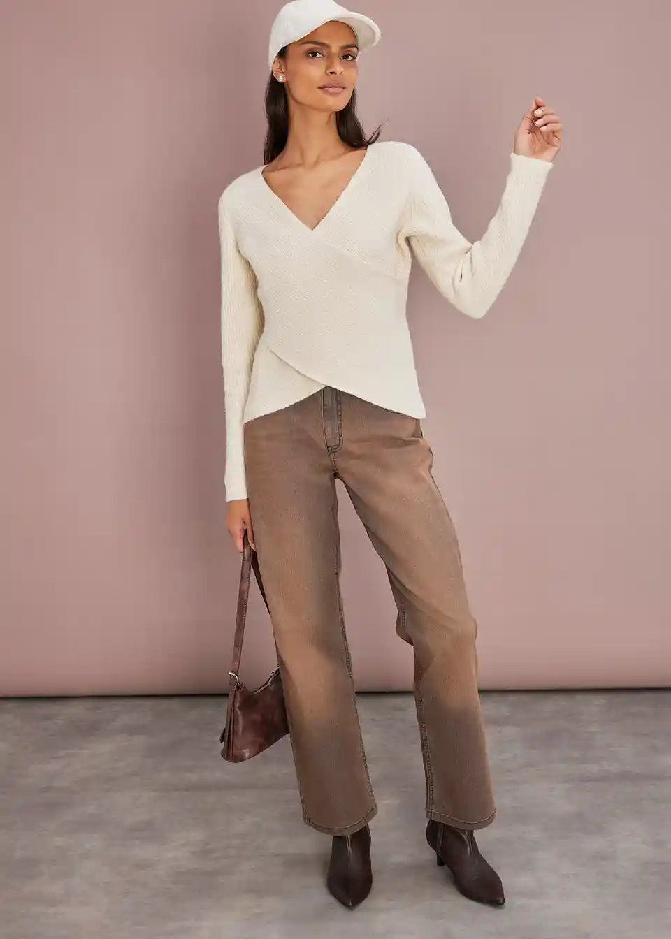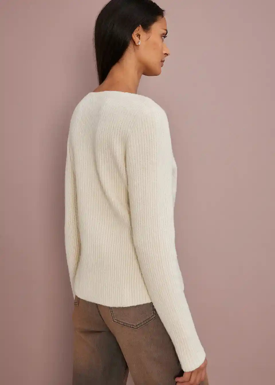 Fini pulover od rebrastog pletiva u omotanom izgledu