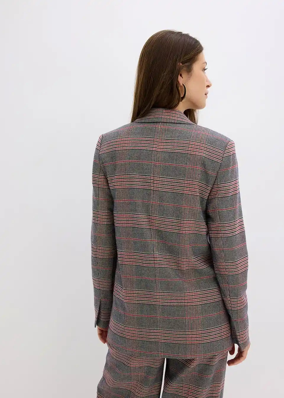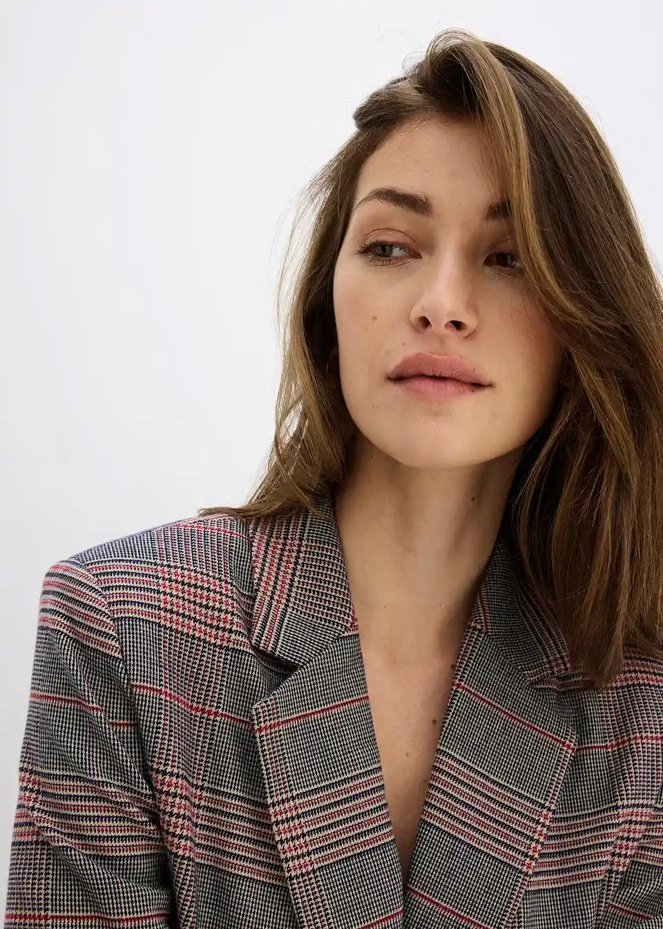 Jednoredni blazer sa snažno naglašenim ramenima zahvaljujući ramenicama i džepovima s preklopom
