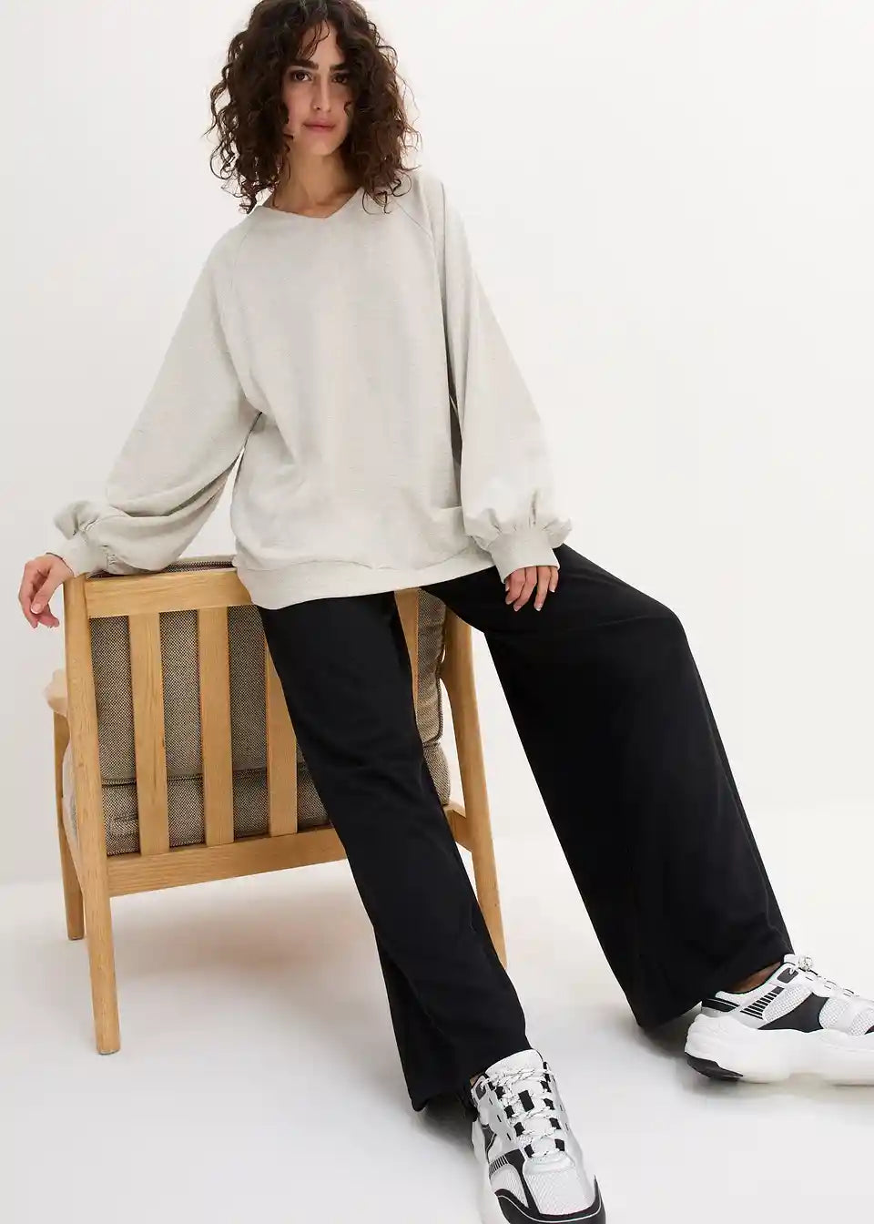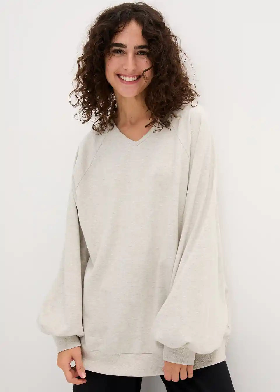 Udobna Oversize majica s šišmiš rukavima i rib detaljima