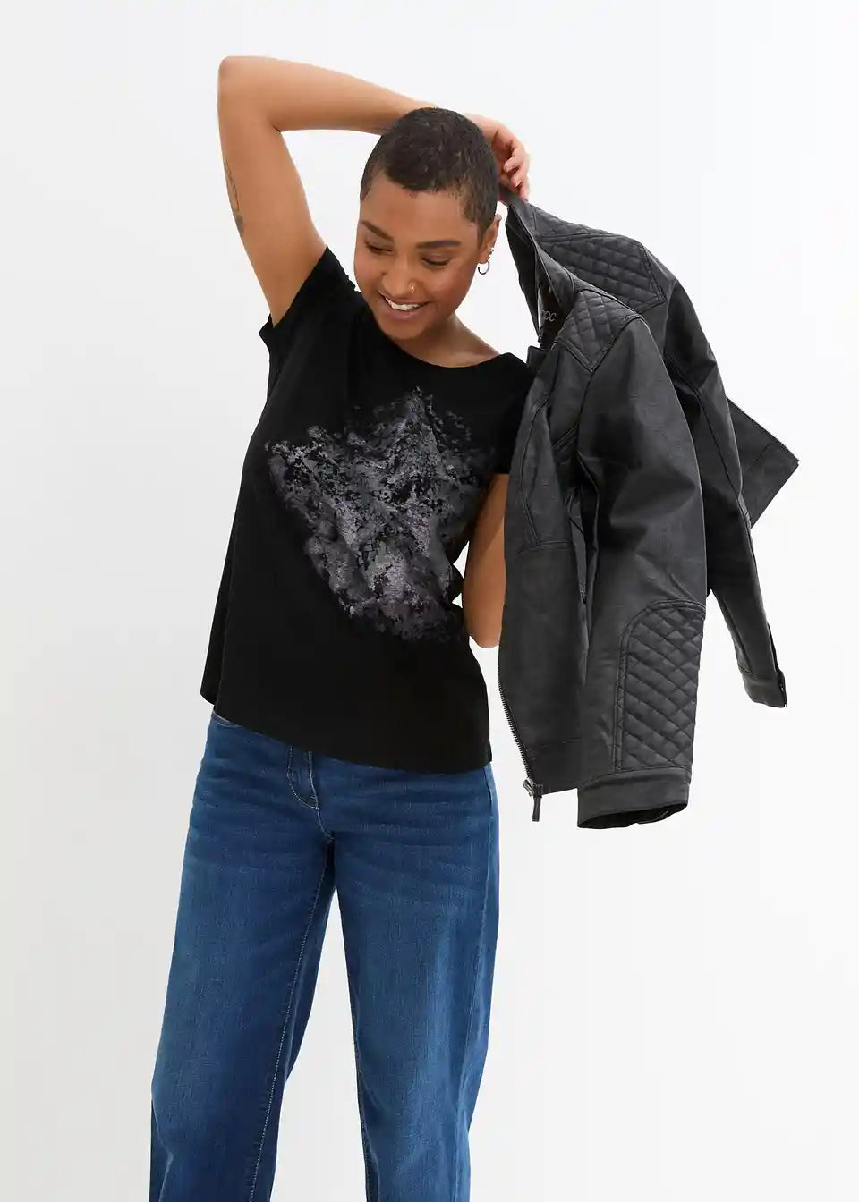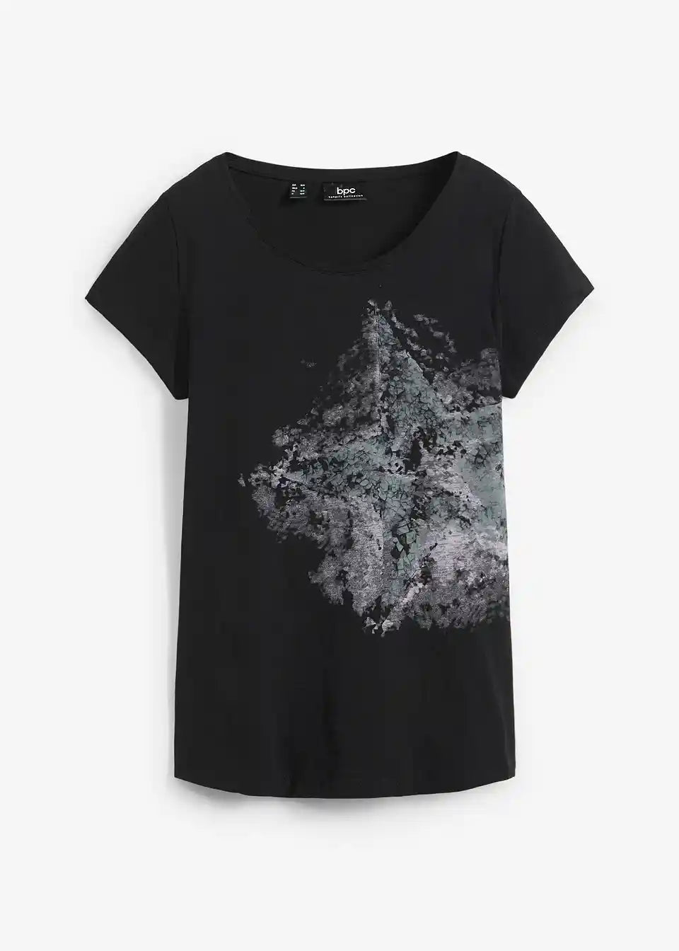 Ova moderna majica od mekano padajućeg flammgarn-a ima sve što je potrebno da postane omiljeni komad. Majica privlači pažnju velikim printom na prednjoj strani. Ima jednostavan okrugli izrez, kratke rukave i blago zaobljen rub. Ležerna majica marke bpc izvrsno se slaže s kratkim i dugim trapericama.