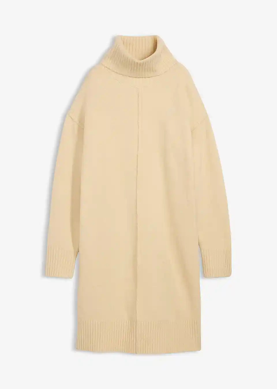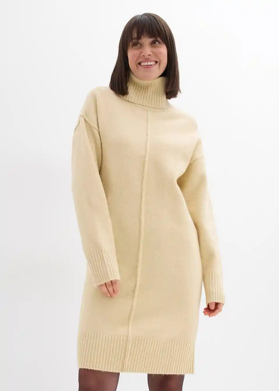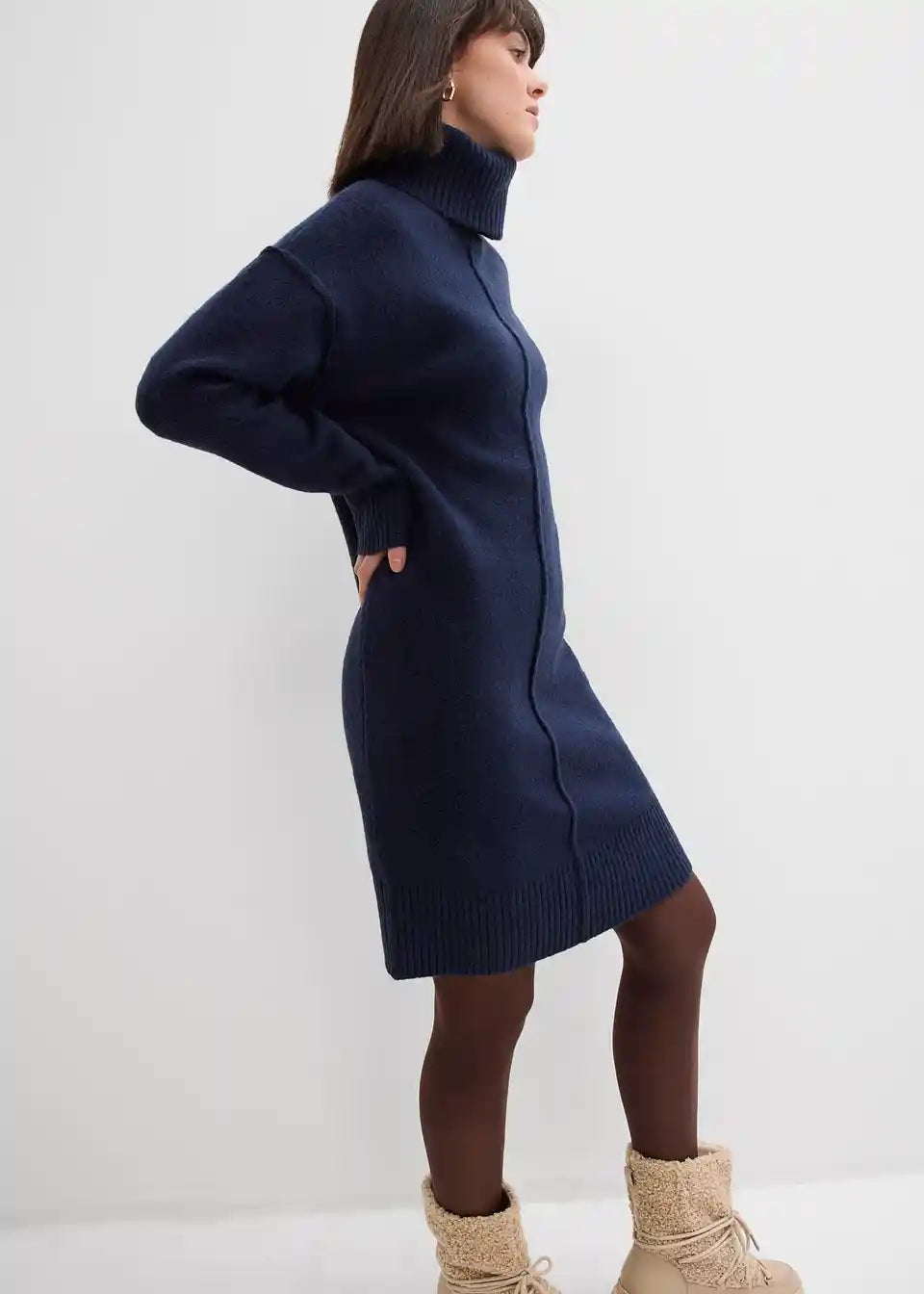 Moderna pletena haljina s dolčevitom i dekorativnim ukrasnim šavom