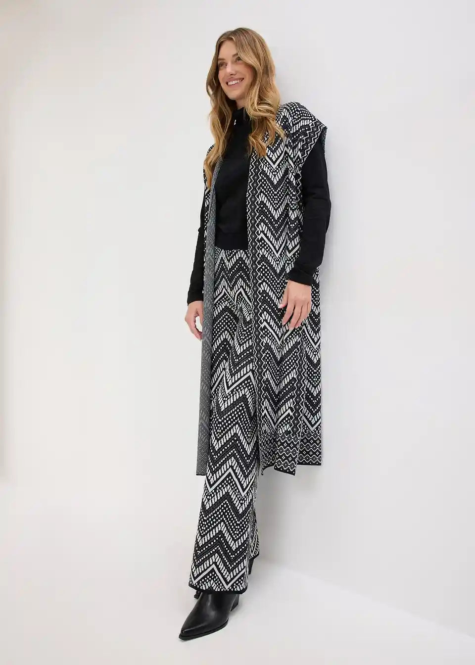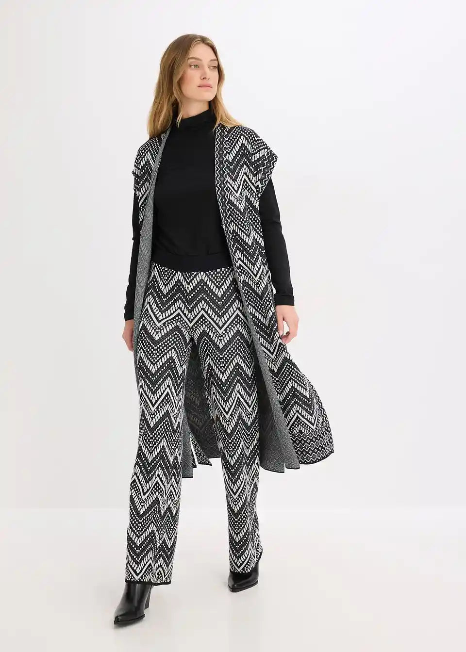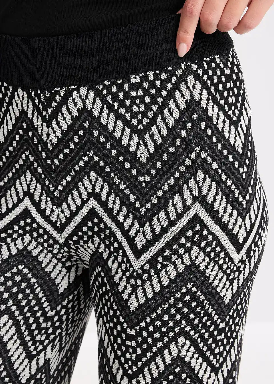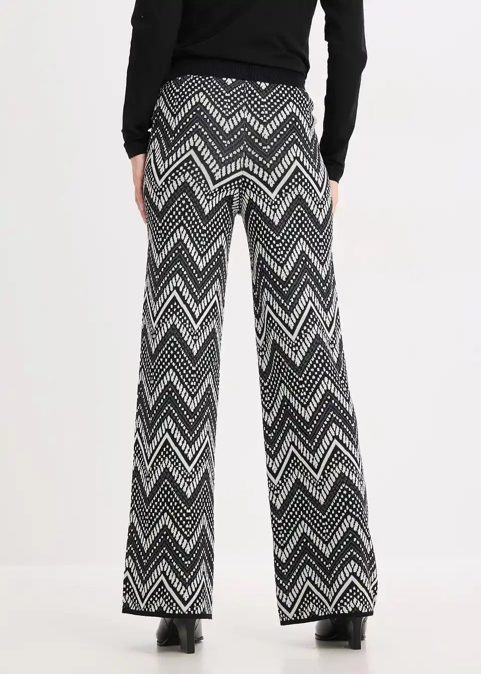 široke jacquard pletene hlače s elastičnim pojasom i modernim uzorkom