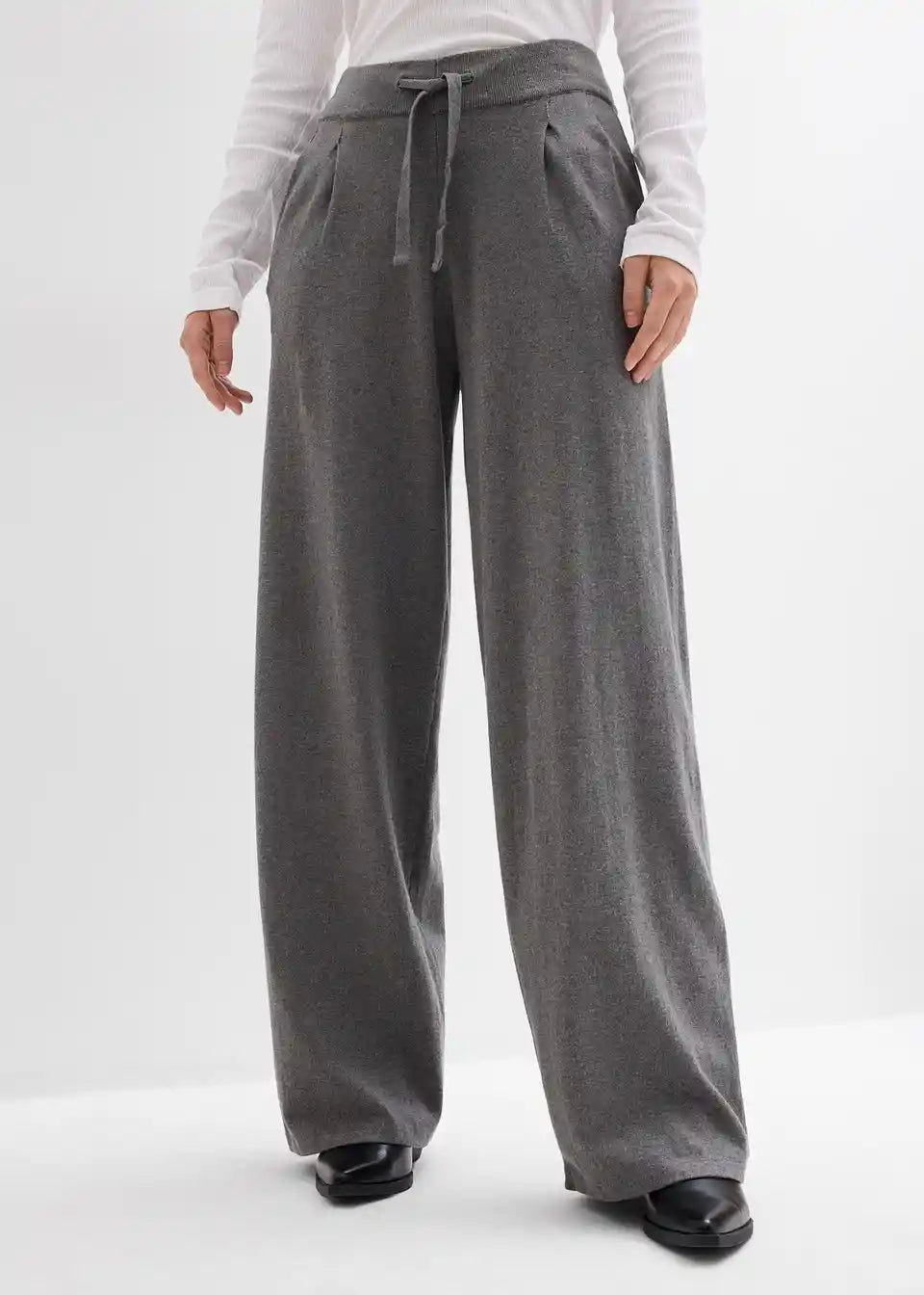 Pletene hlače širokih nogavica s elastičnim podesivim pojasom i vrpcom od mješavine kašmira