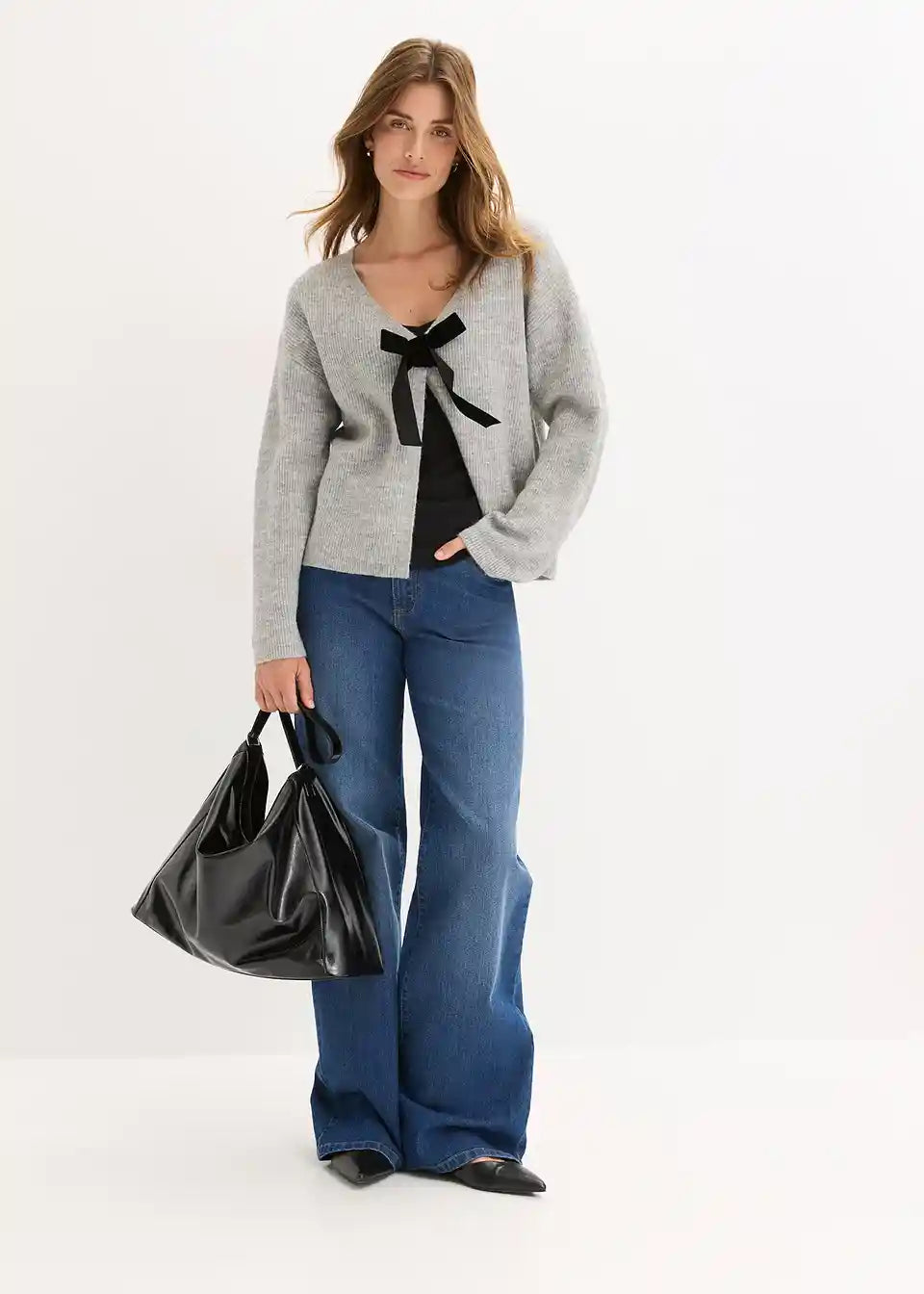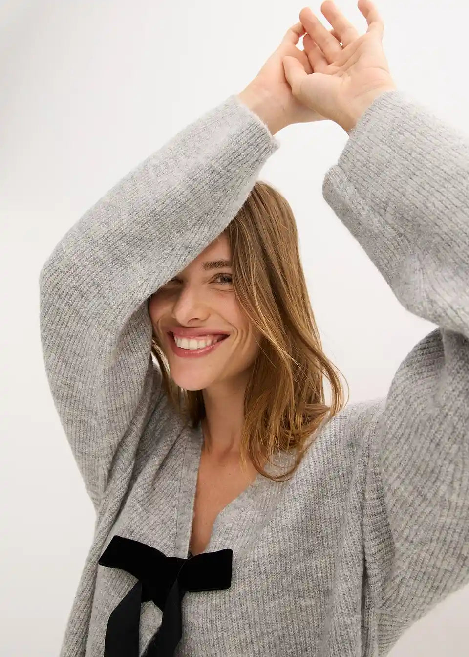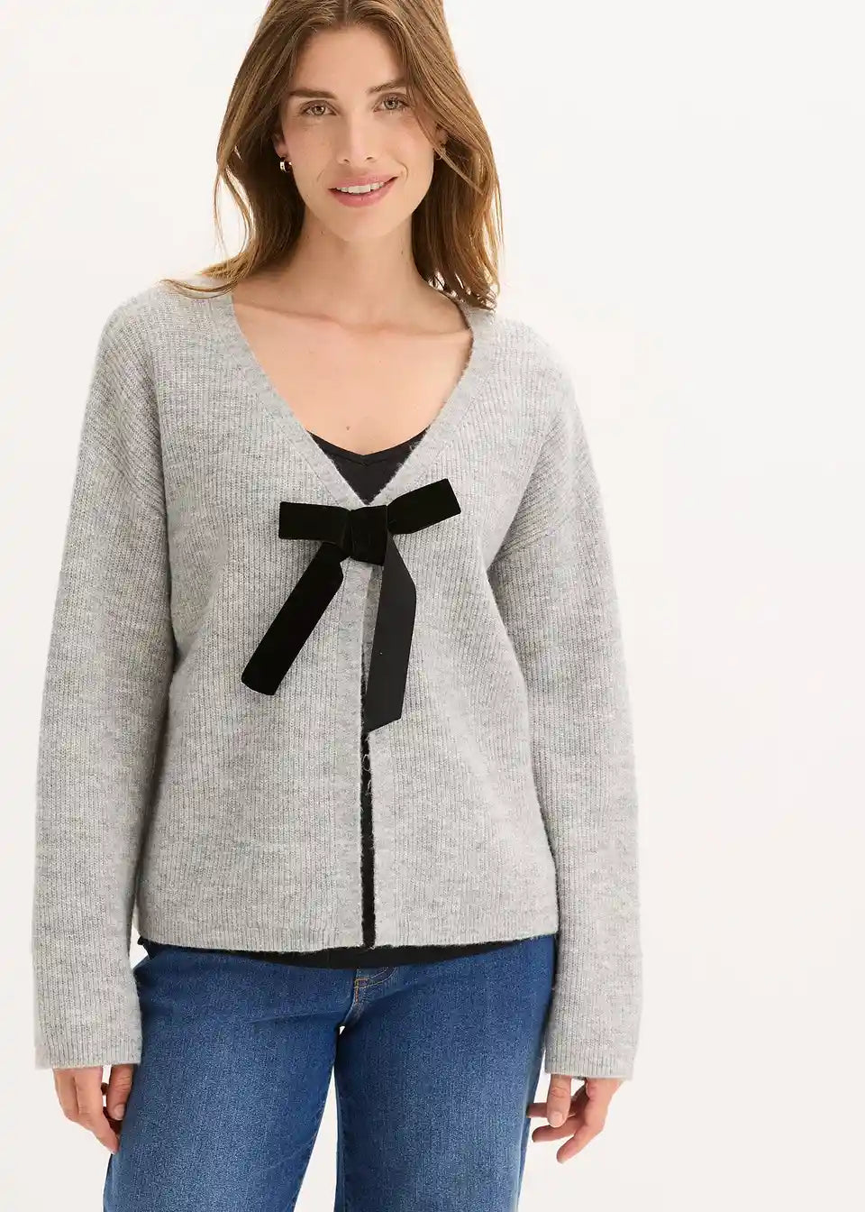 Moderan zatvoreni pleteni kardigan s ukrasnom mašnom