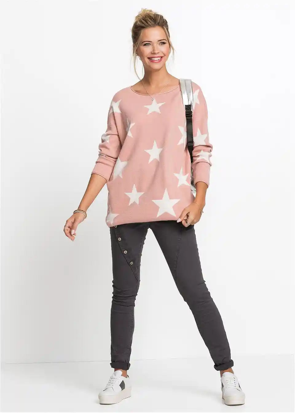 U modernom dizajnu. Uzorak zvijezda i široki, udobni oblik osiguravaju ležeran stil. Odlično se kombinira s trapericama. Duljina u veličini 36/38 cca 68 cm.