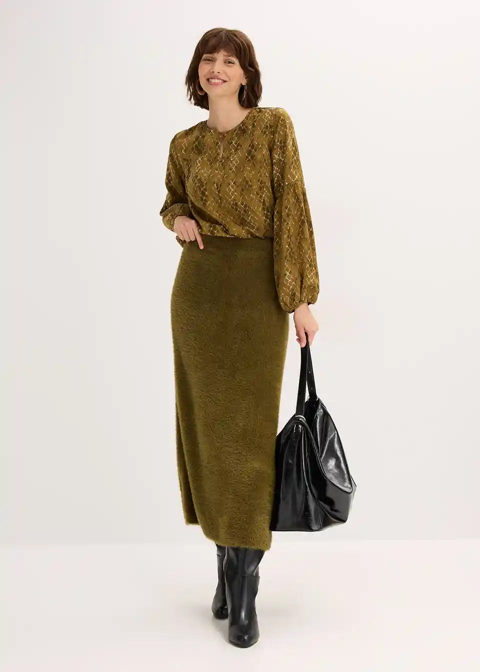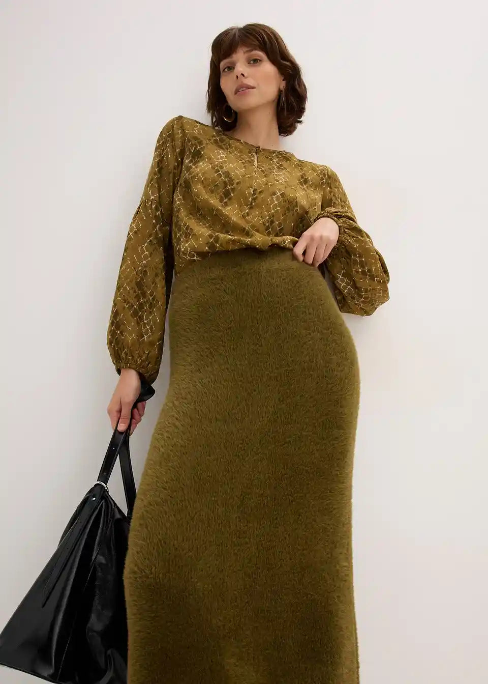 Pletena suknja od mekanog materijala s pahuljastim vlaknima