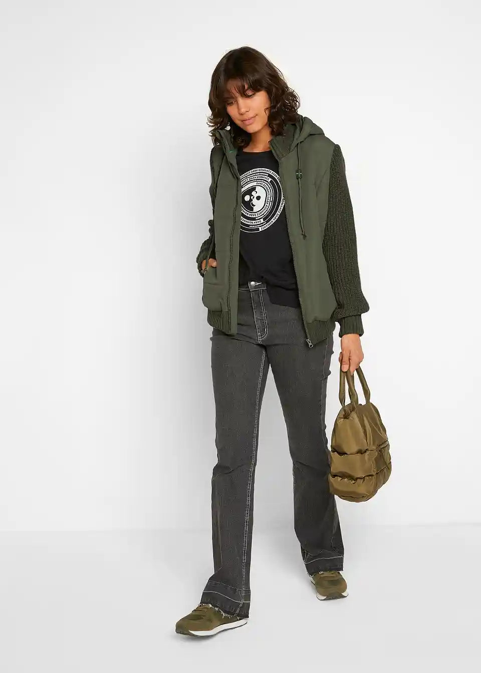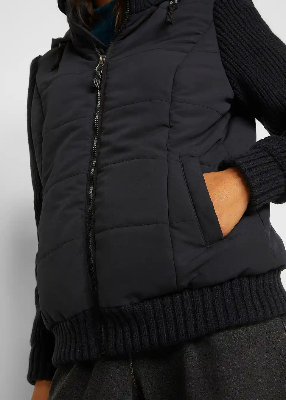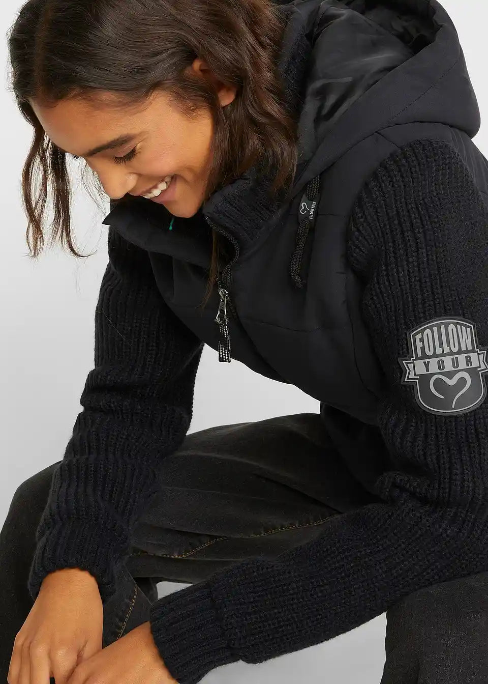 Jakna u stilu prsluka s pletenim rukavima i kapuljačom