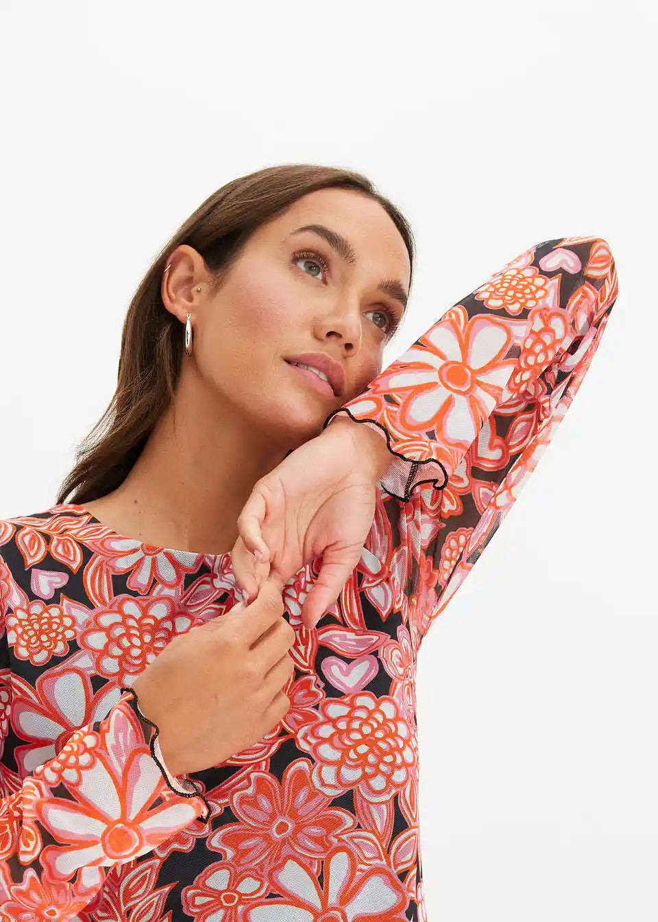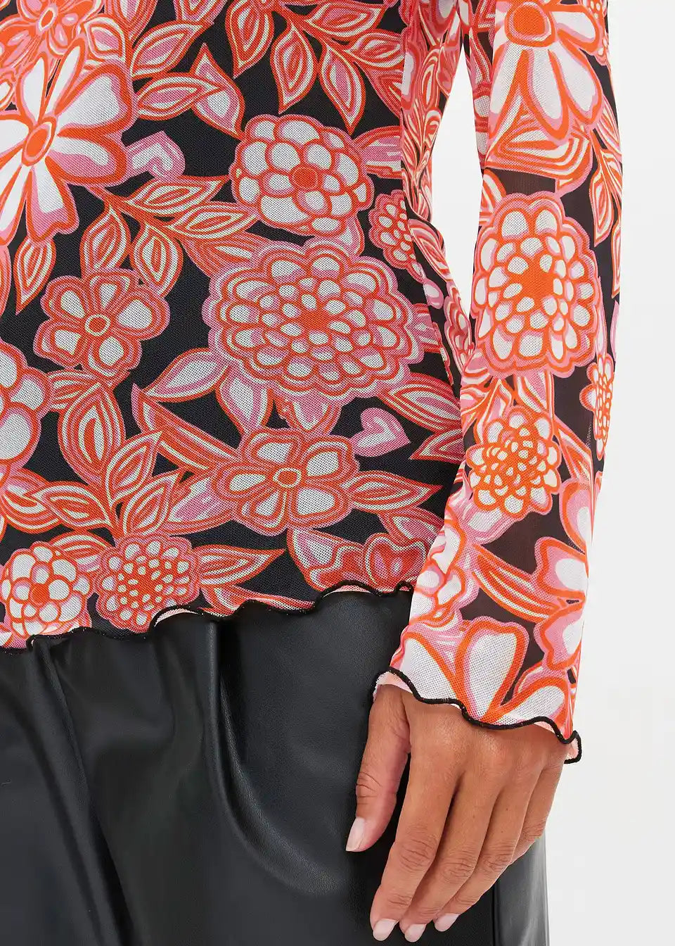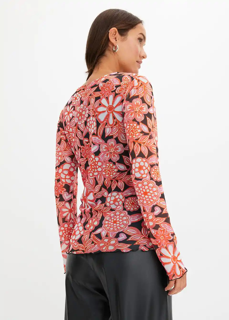 uska majica s dugim rukavima od mrežastog materijala s cvjetnim printom