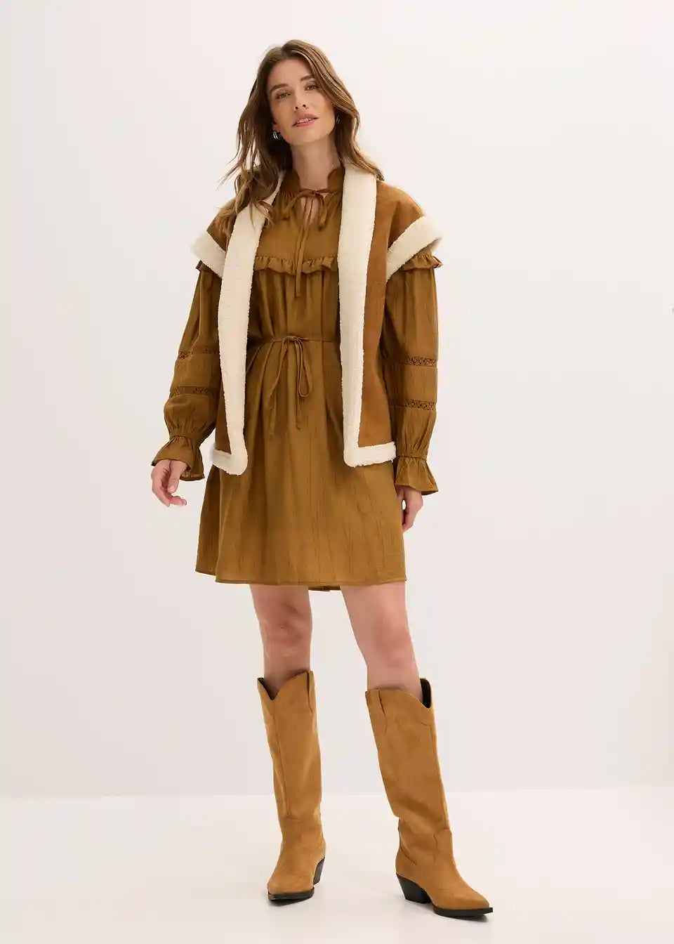 Ležerno krojen reverzibilni prsluk od mekane imitacije janjeće kože