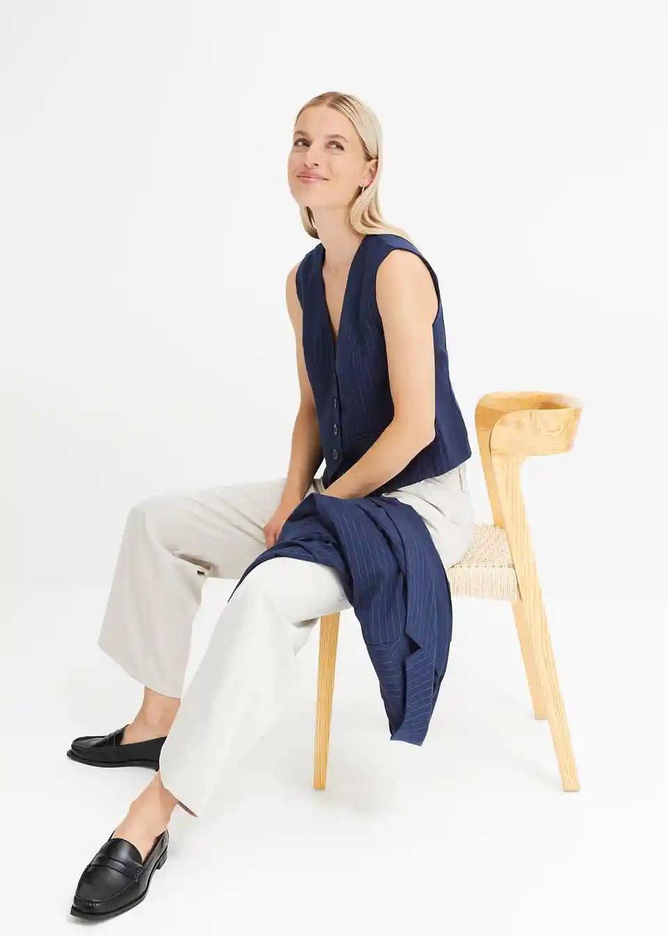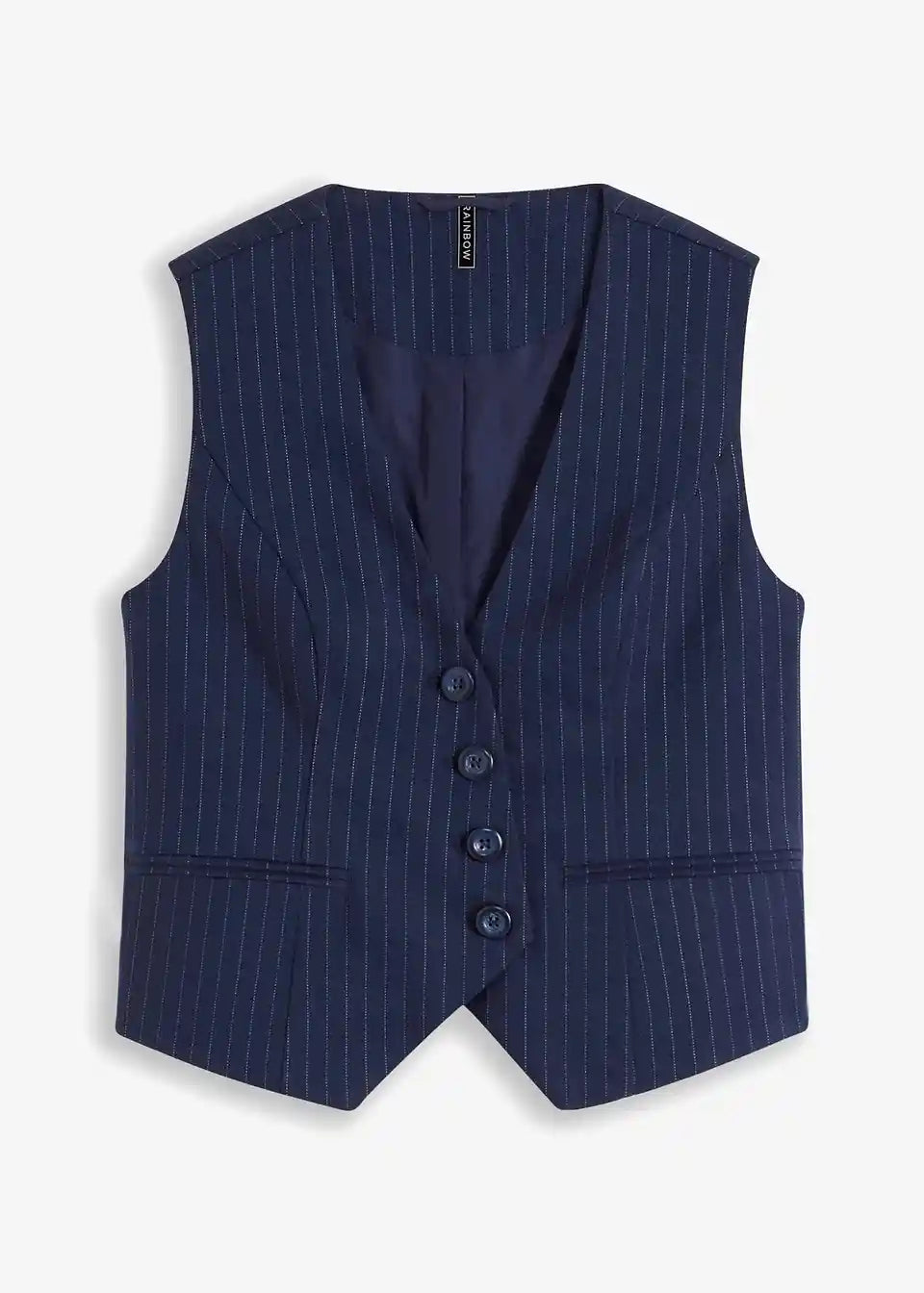 Prsluk s asimetričnim kopčanjem na gumbe i prugama