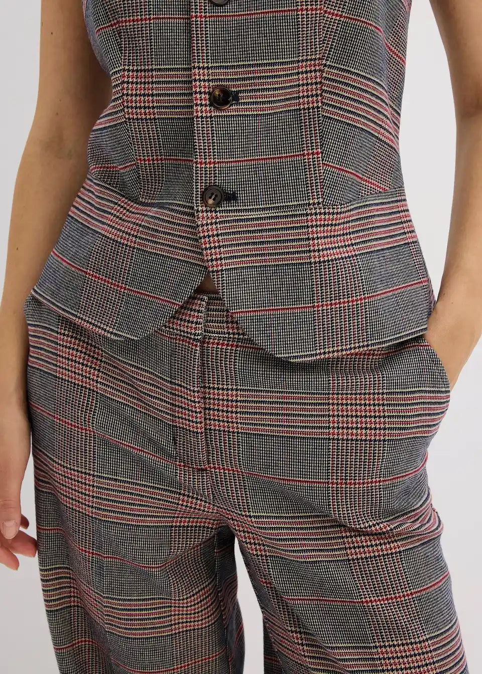 Prsluk koji prati liniju tijela sa peplumom i zaobljenim završetkom na porubu