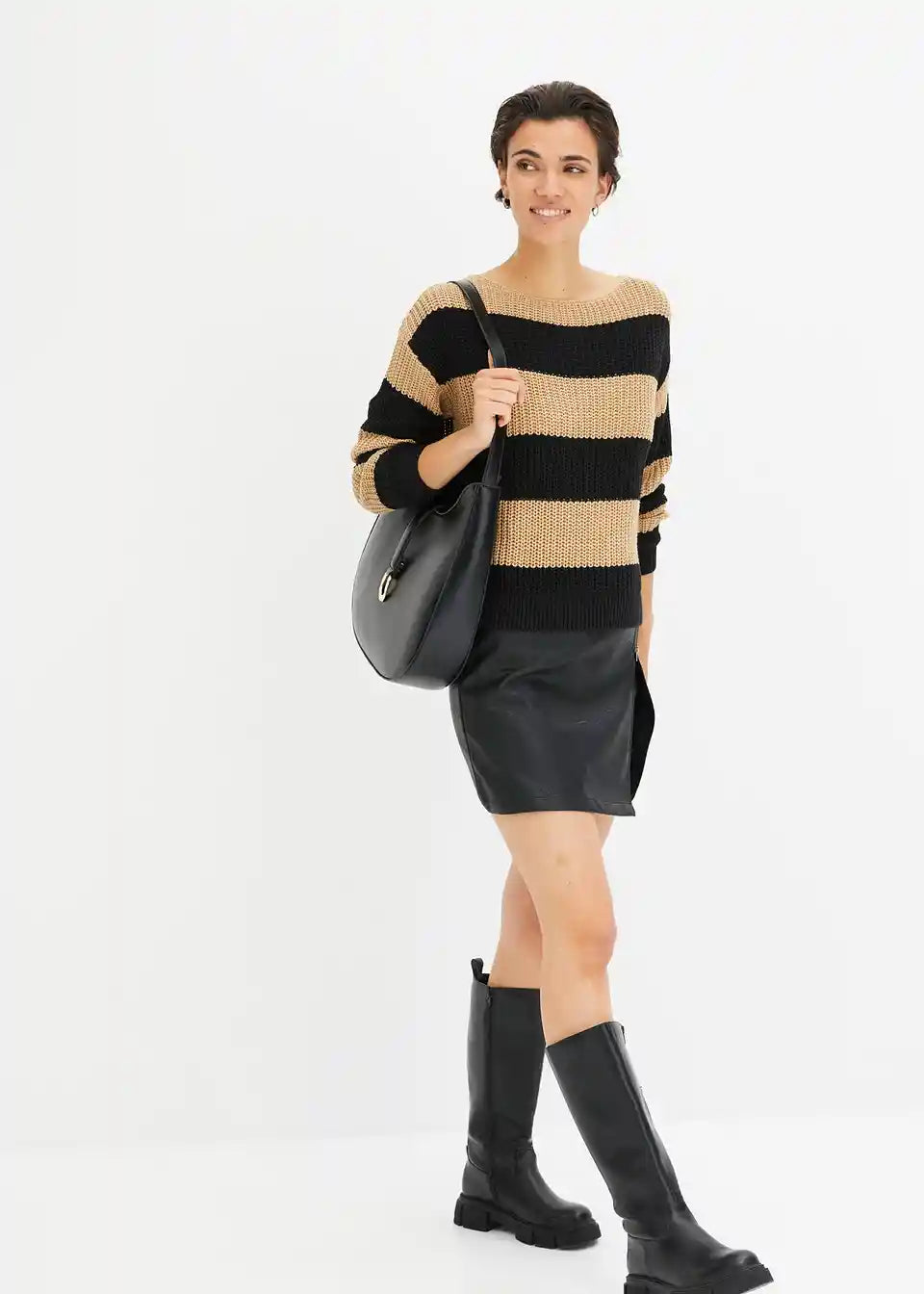 Ležeran pleteni pulover s prugama i laďastim izrezom