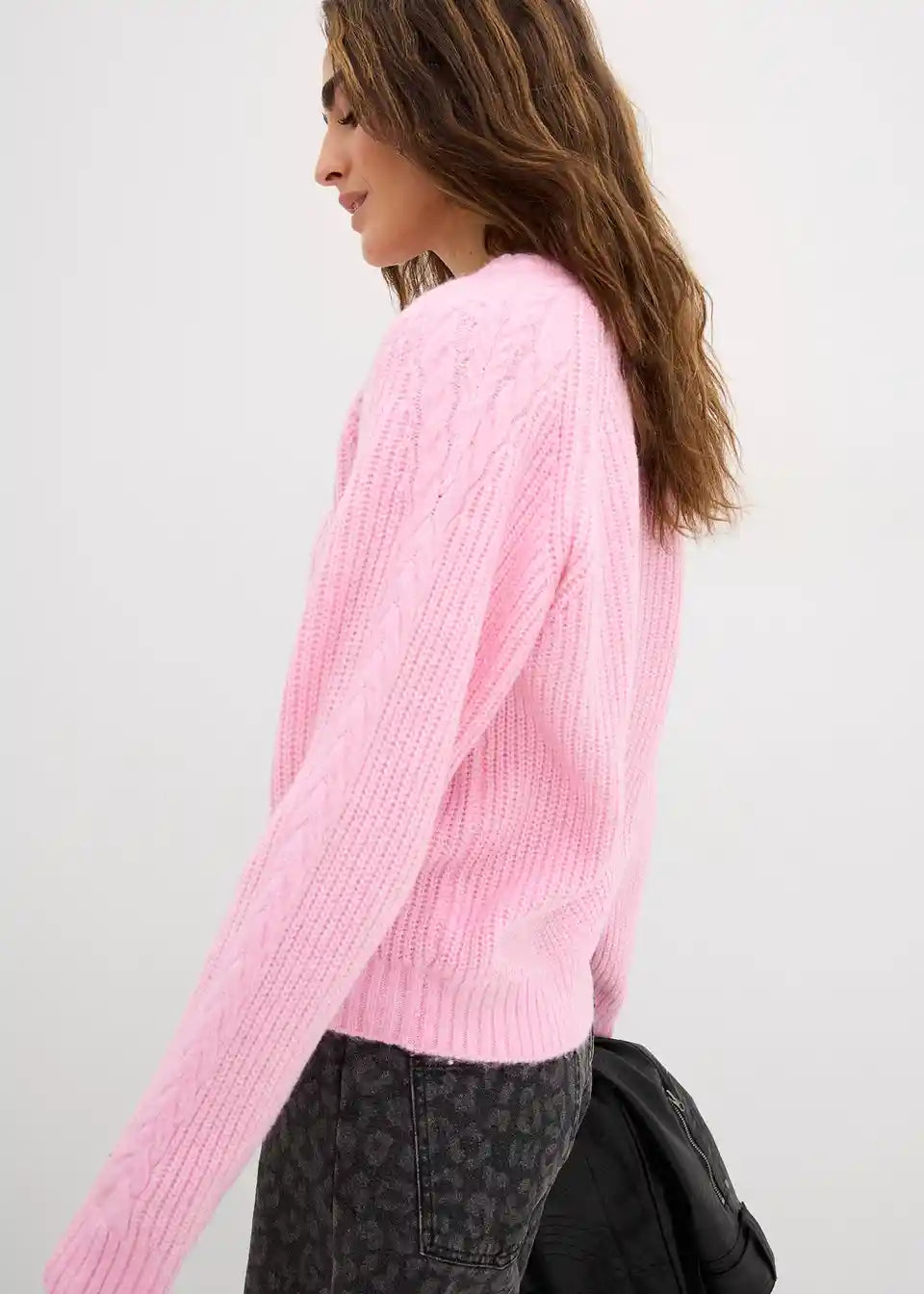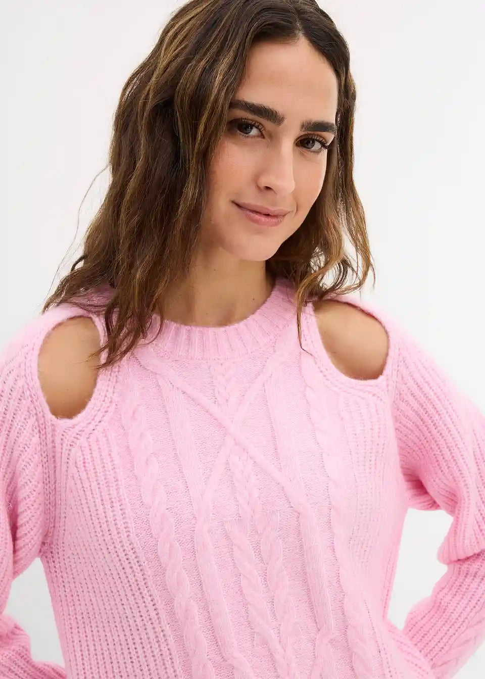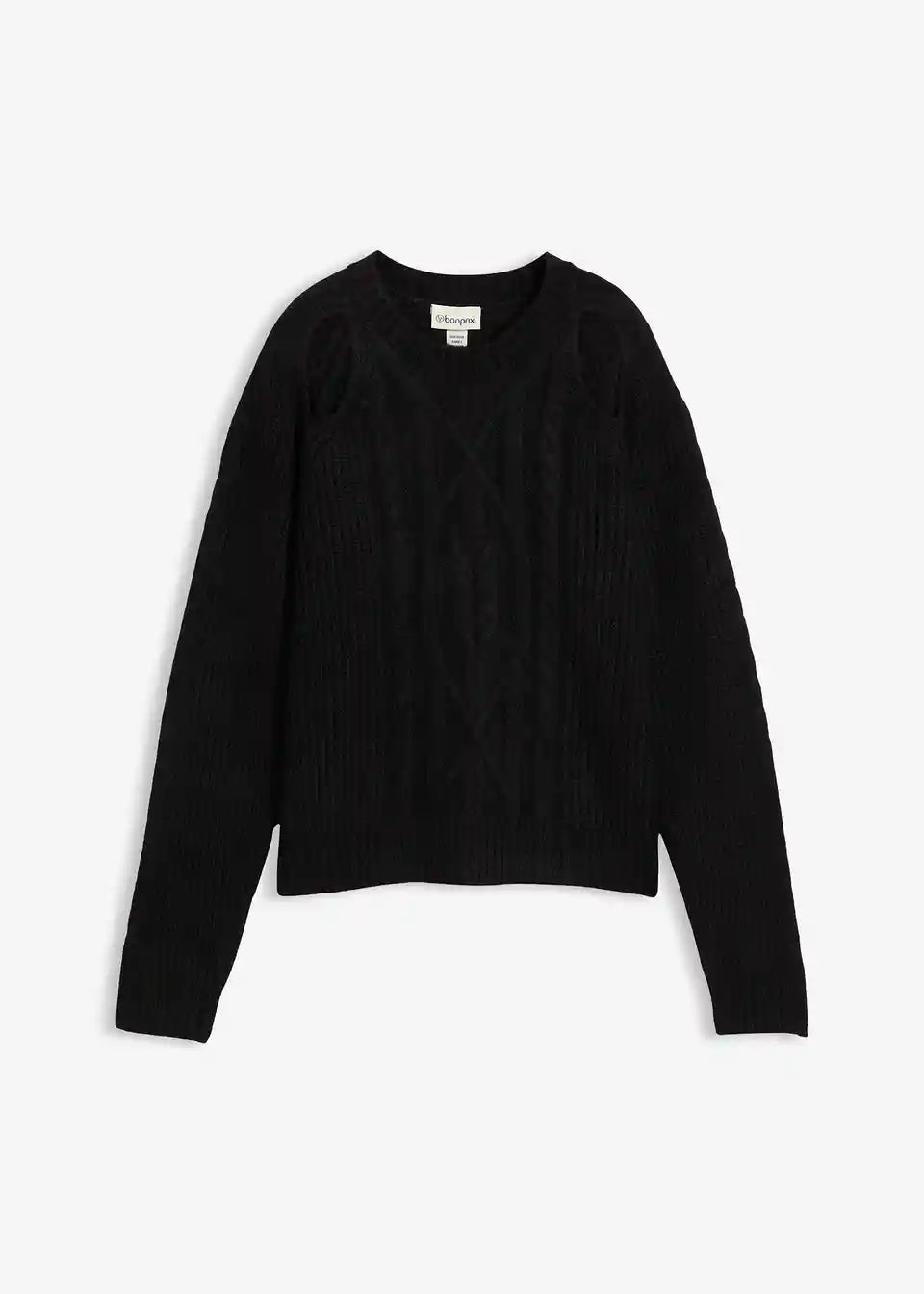 Ležerni pulover od debelog pletiva s pletenim uzorkom i izrezima (cut-out)