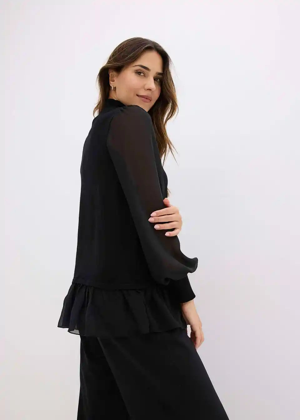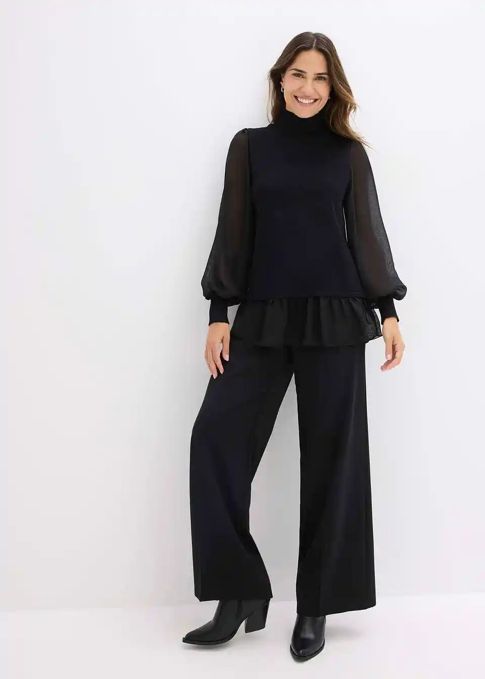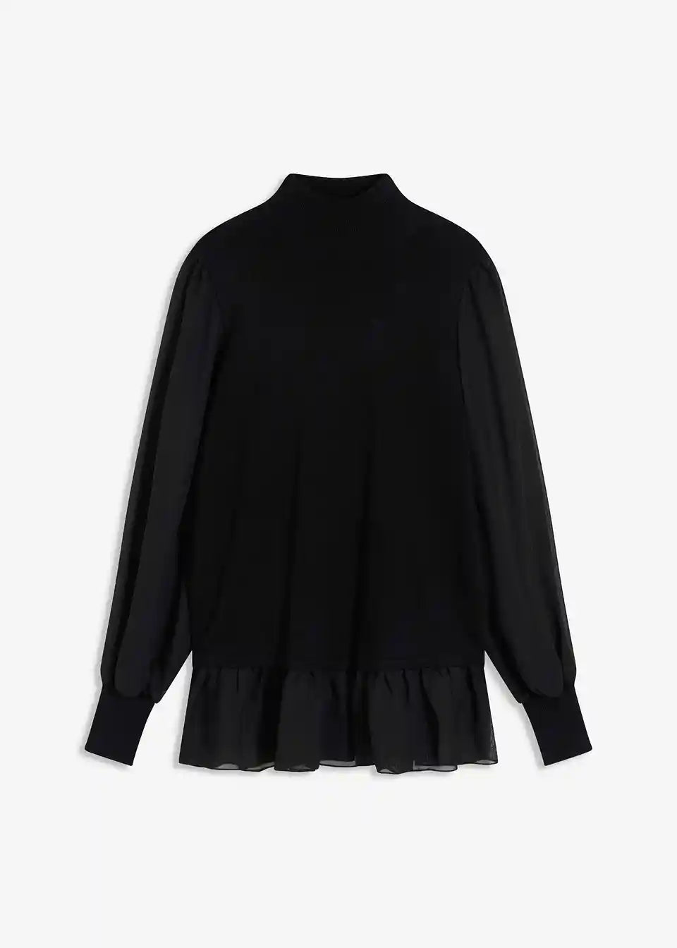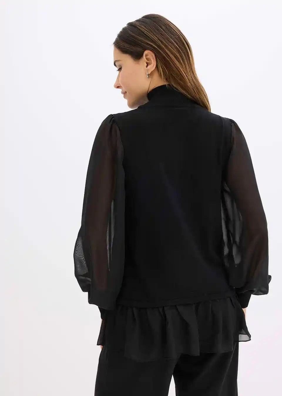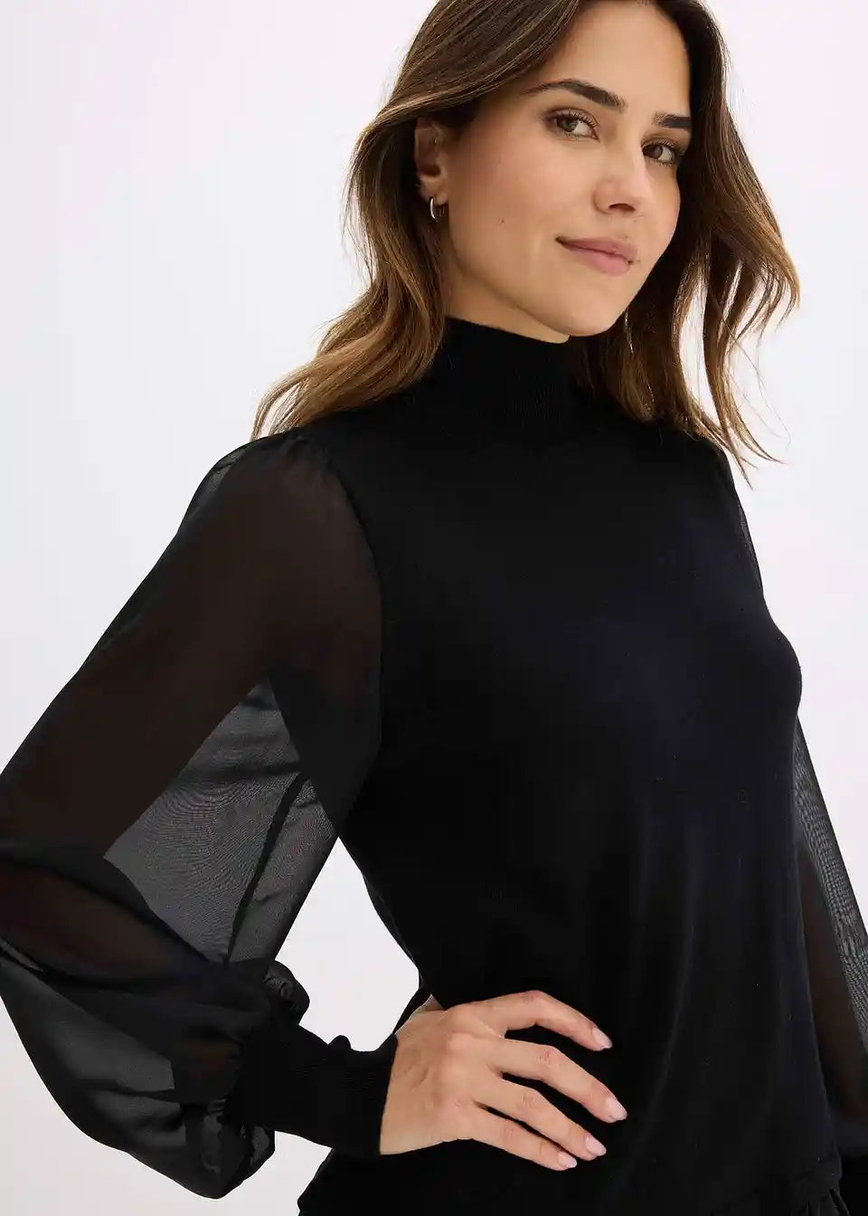 moderan pulover od fine pletenine s rukavima od šifona i šifonskim umetcima na rubu
