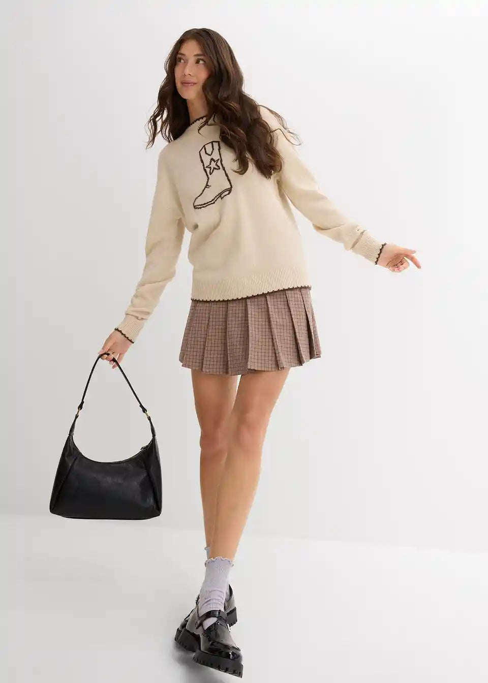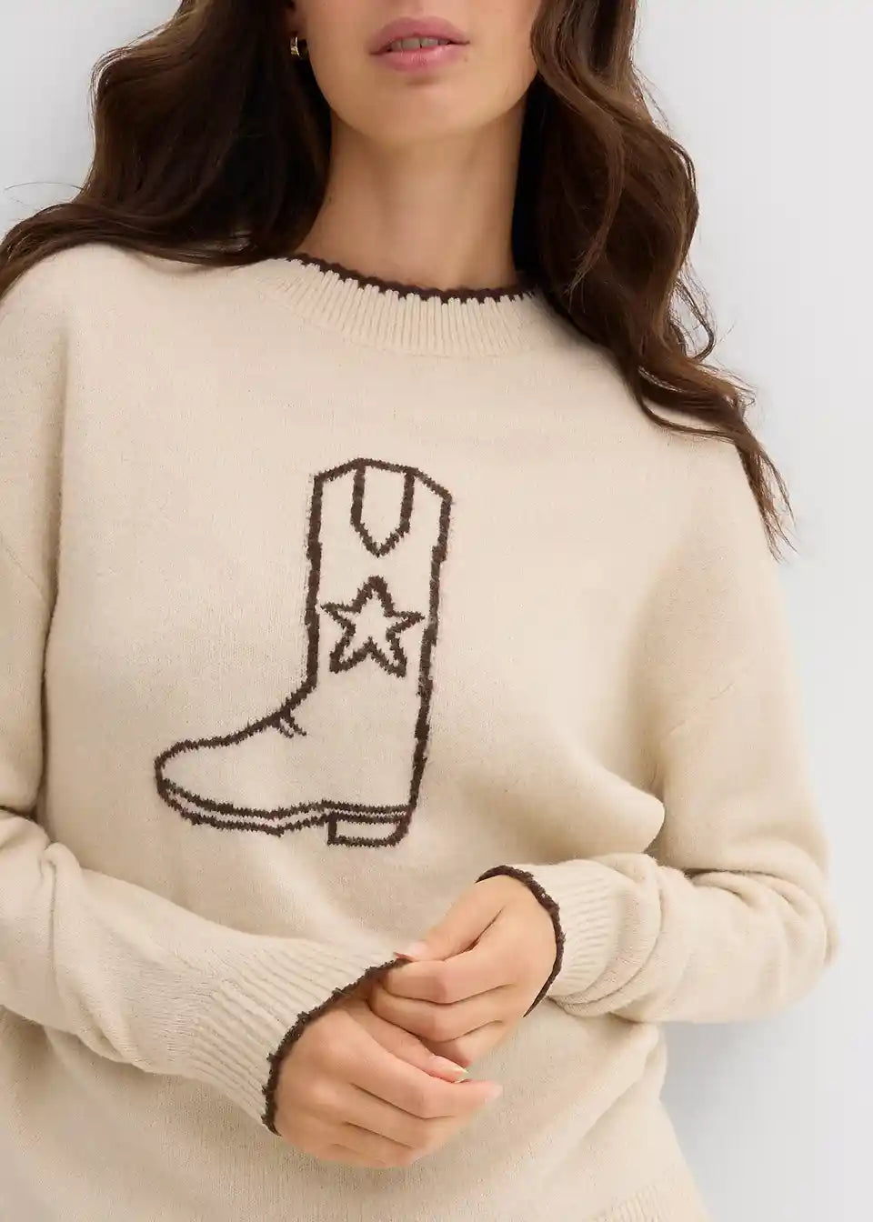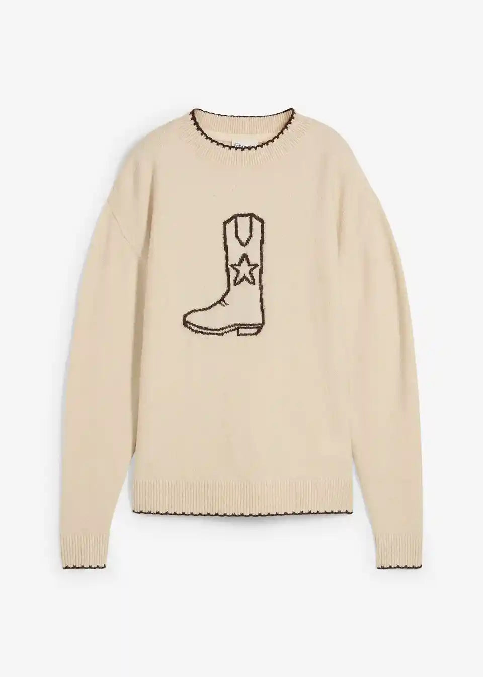 Ležeran pulover od fine pletenine s opuštenim ramenima i modernim motivom