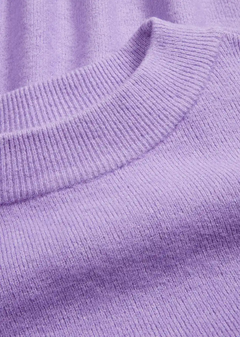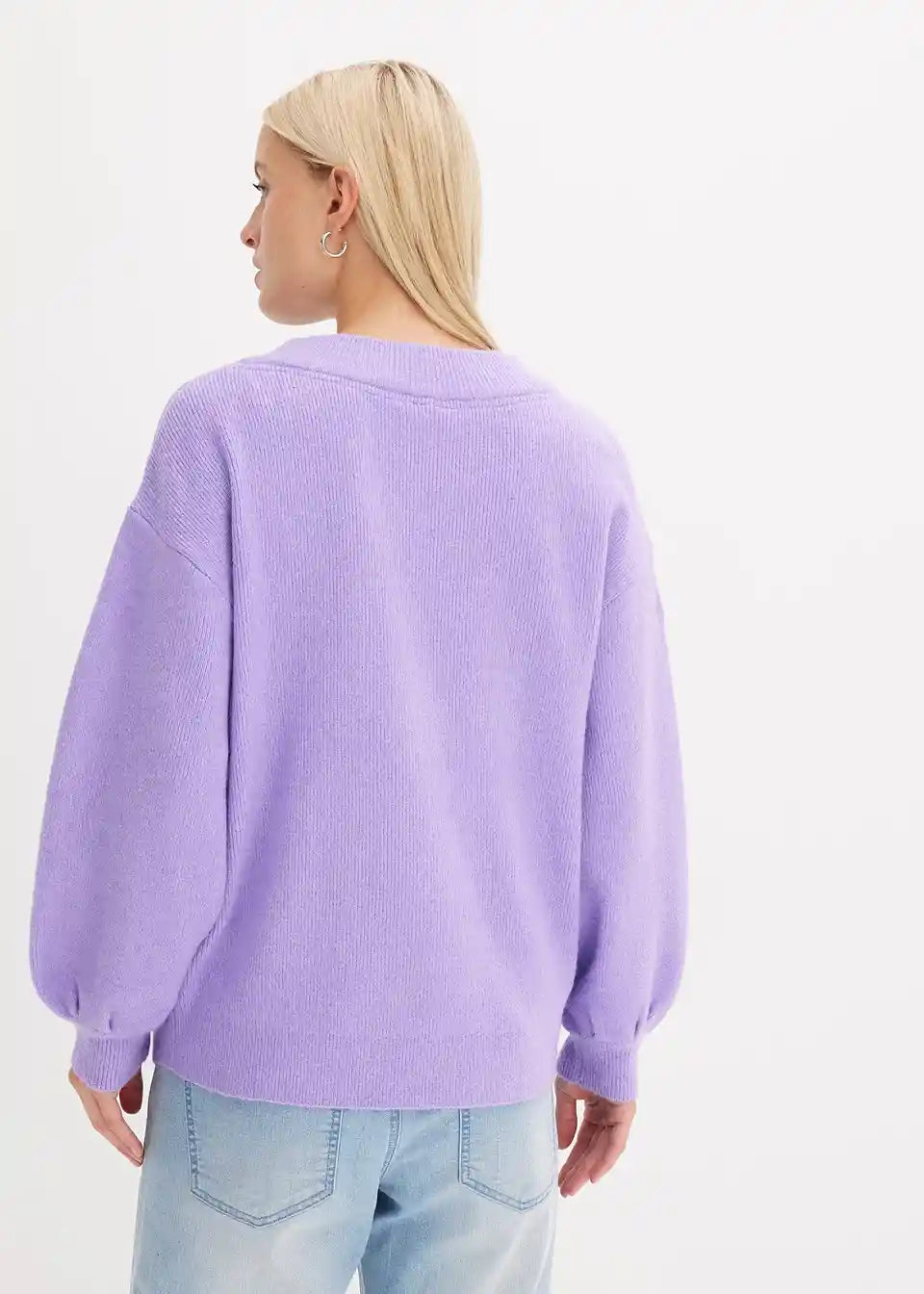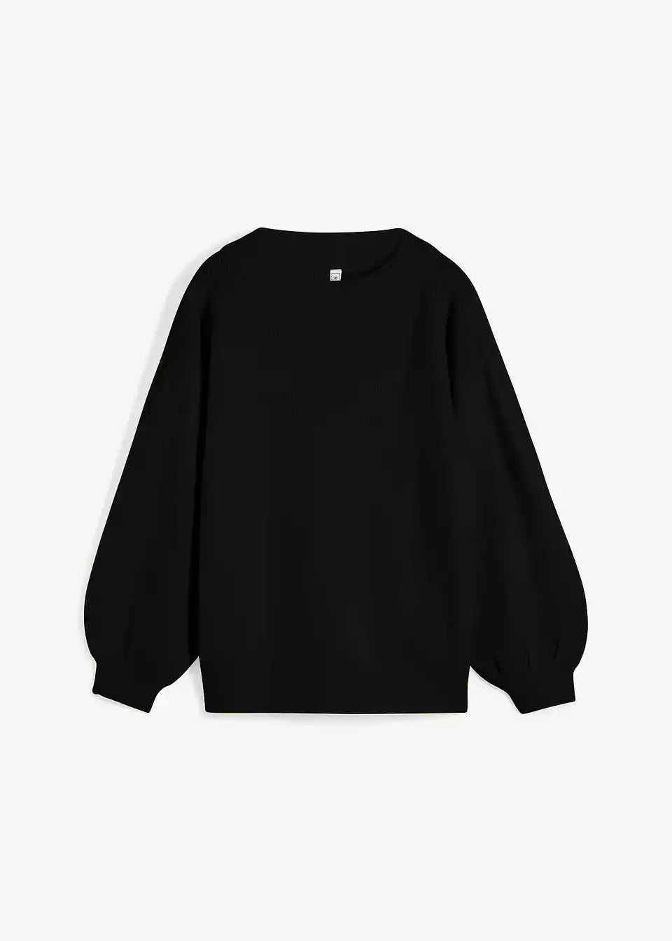 Atraktivan pletivi pulover s visokim okruglim izrezom i modernim balon rukavima
