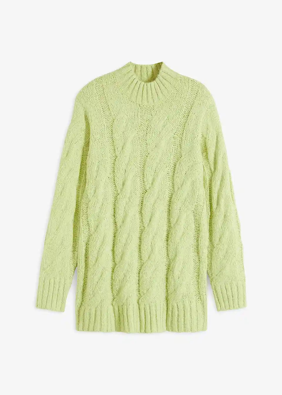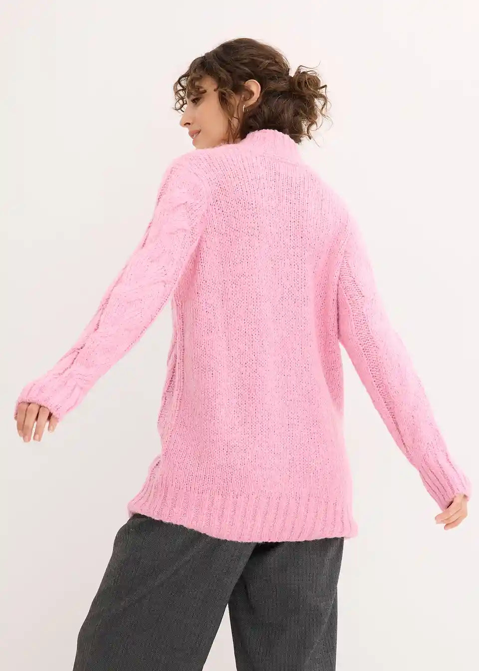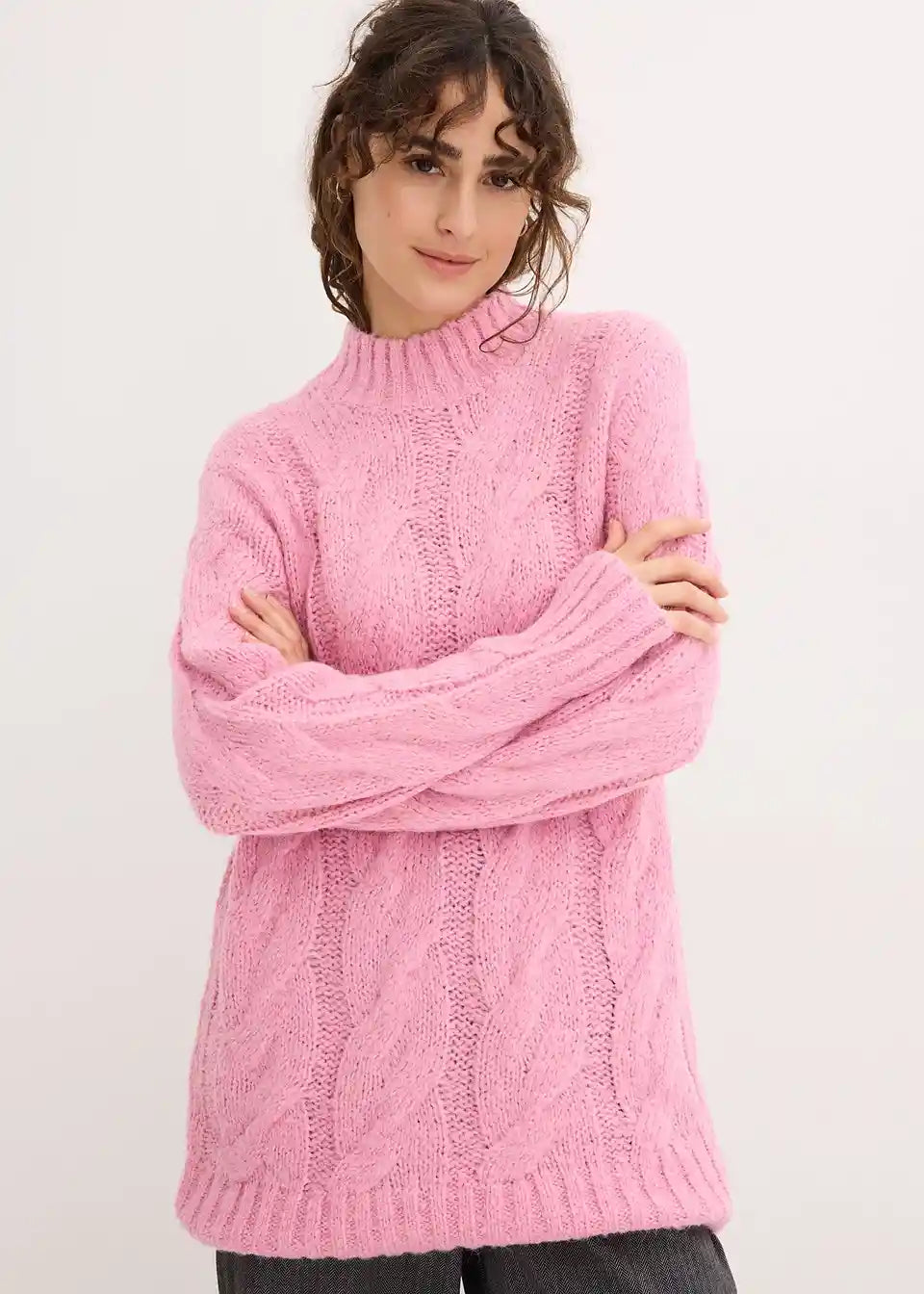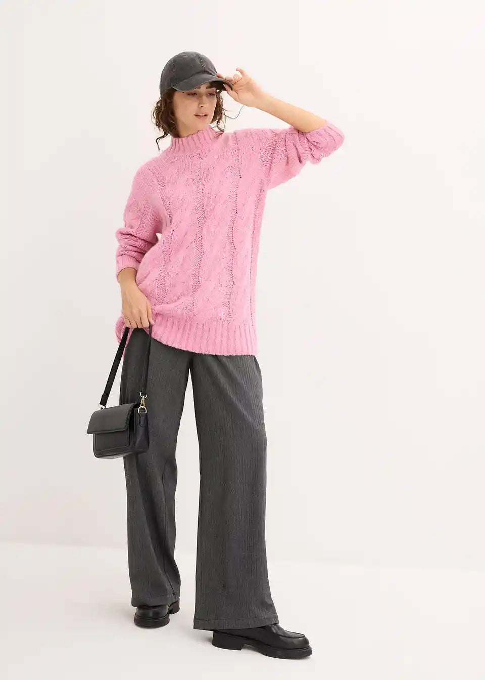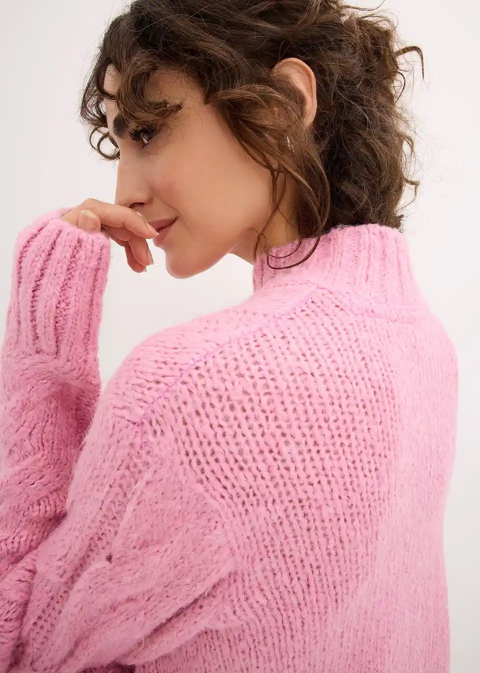 Moderan pleteni pulover s visokim ovratnikom u Boxy izgledu