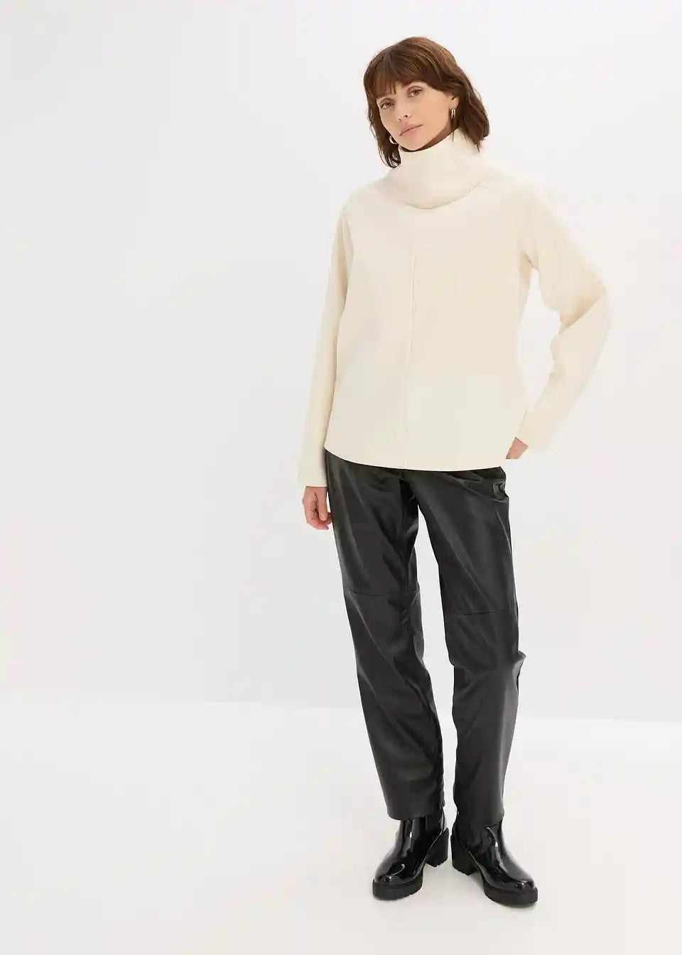 široko krojen pulover s visokim ovratnikom
