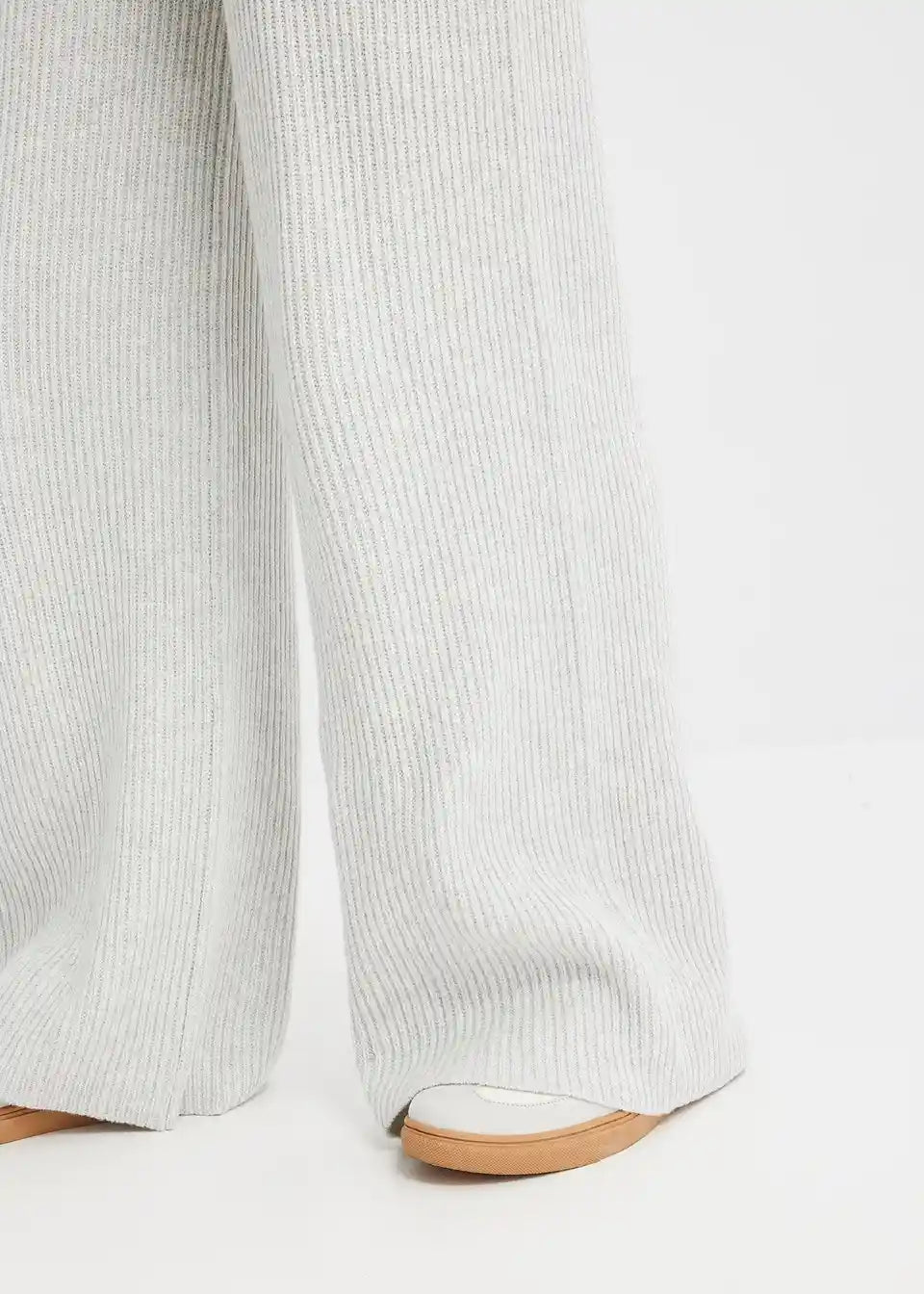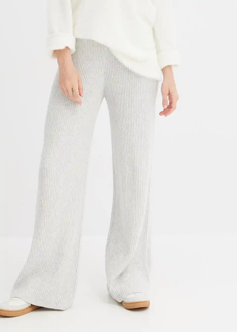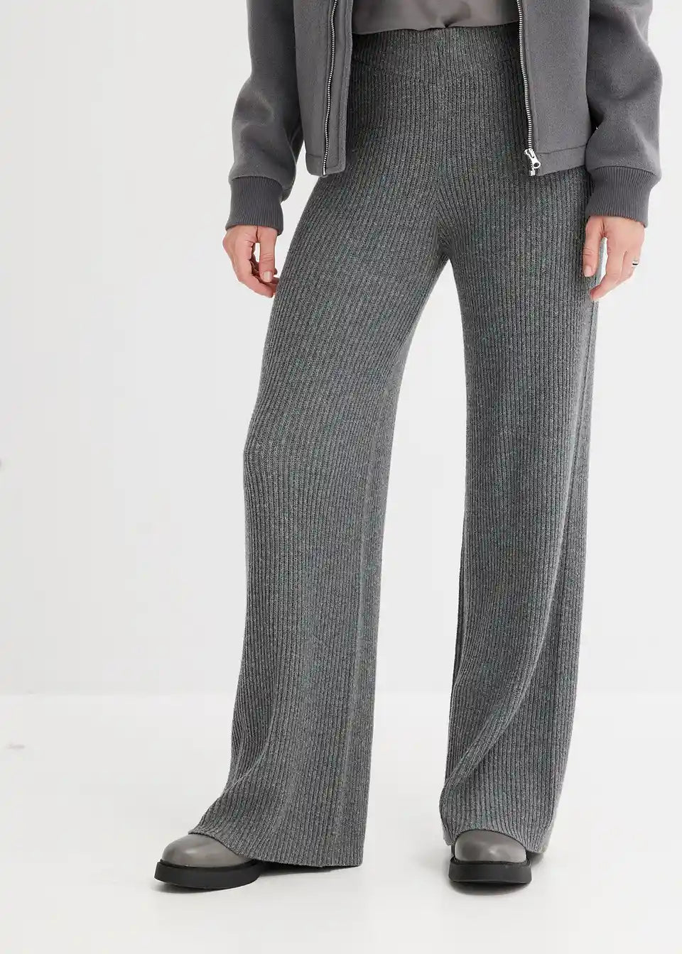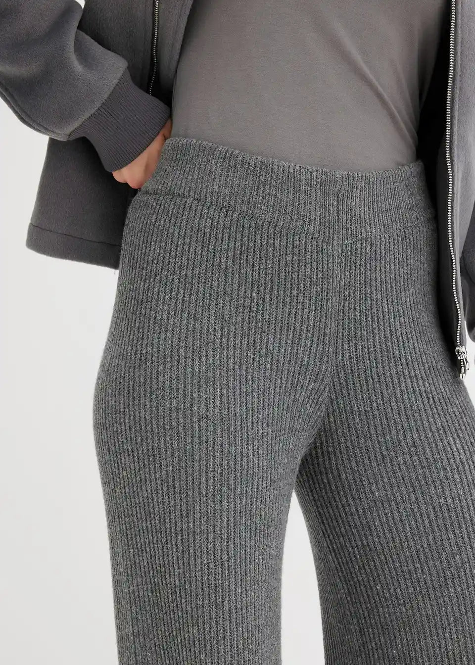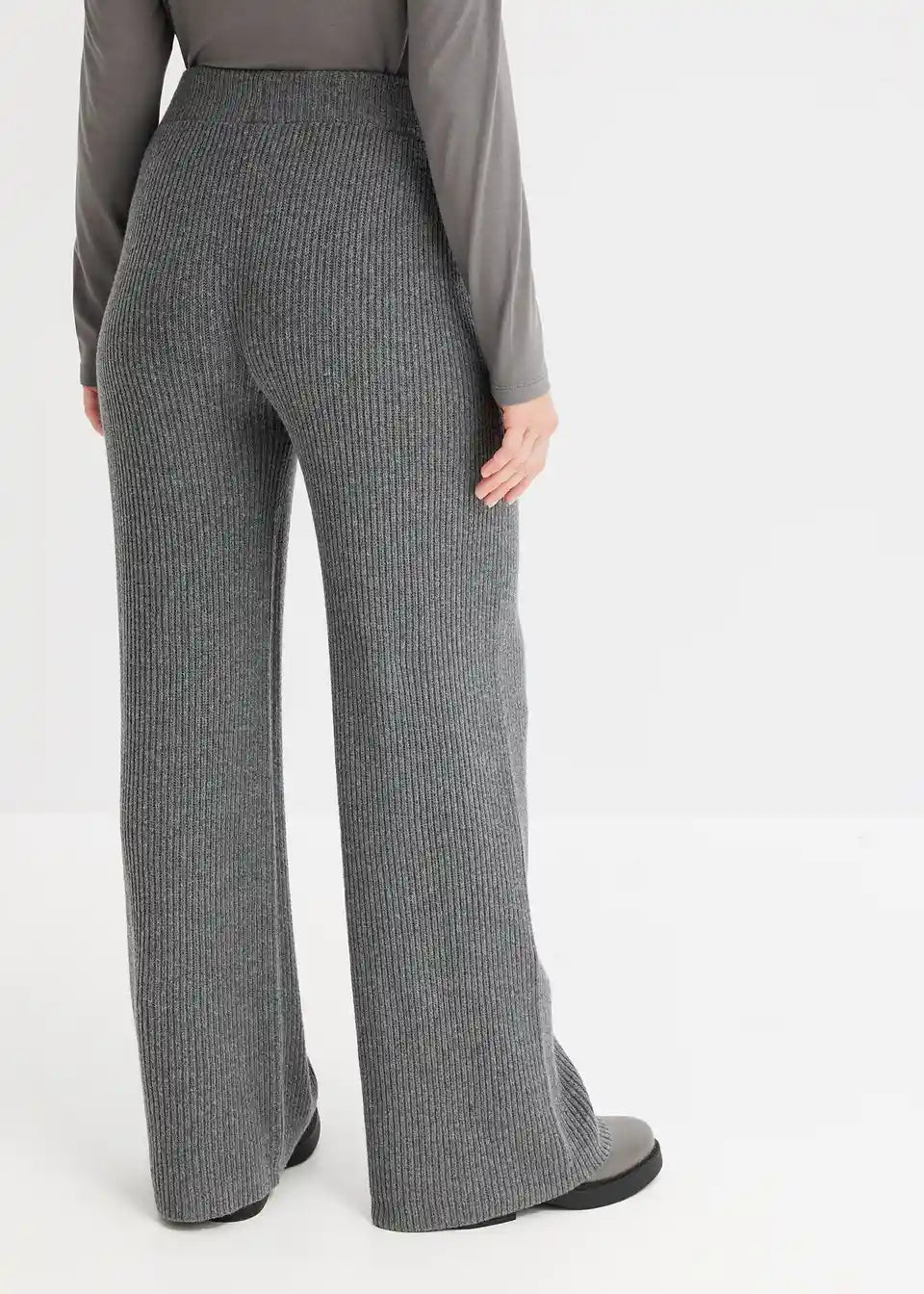 Lijepe hlače od rebrastog pletiva djeluju oblikujuće zahvaljujući širokom pojasu