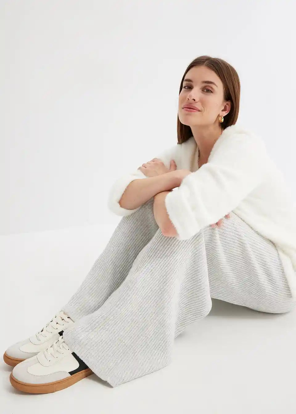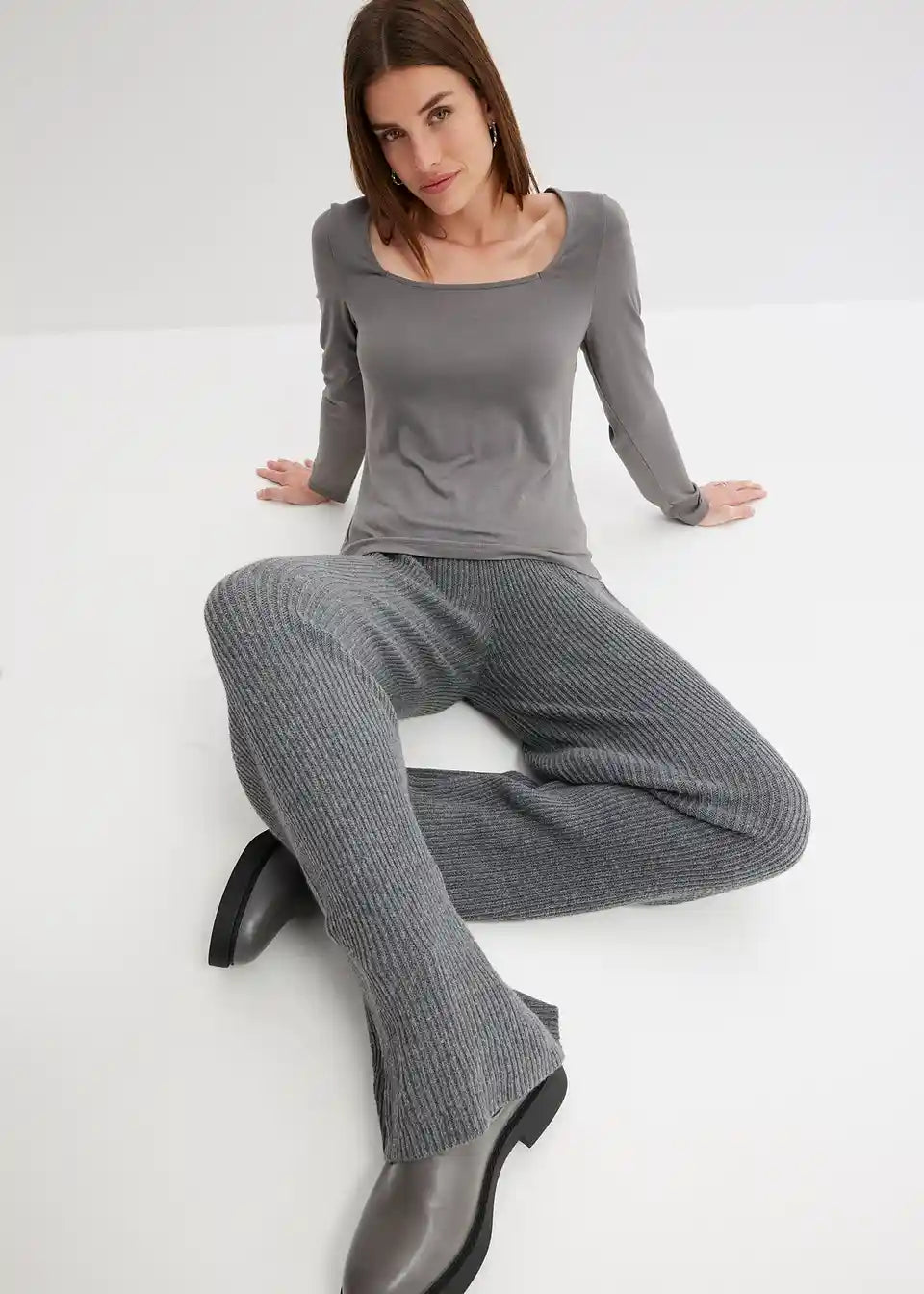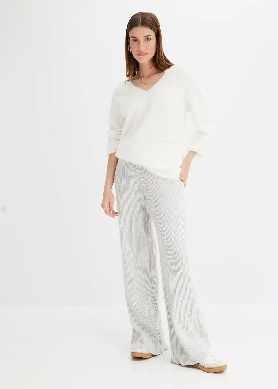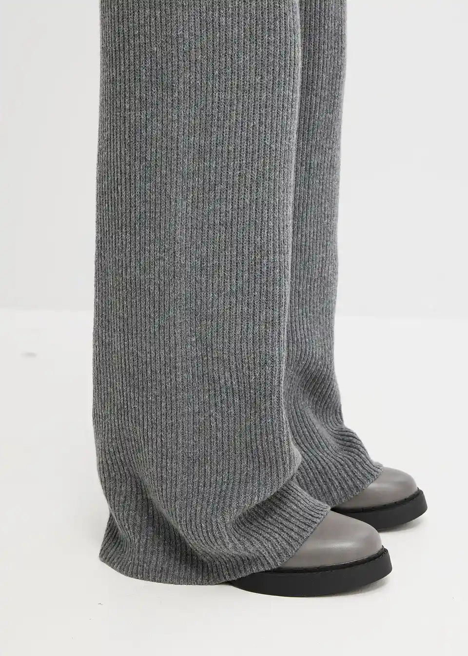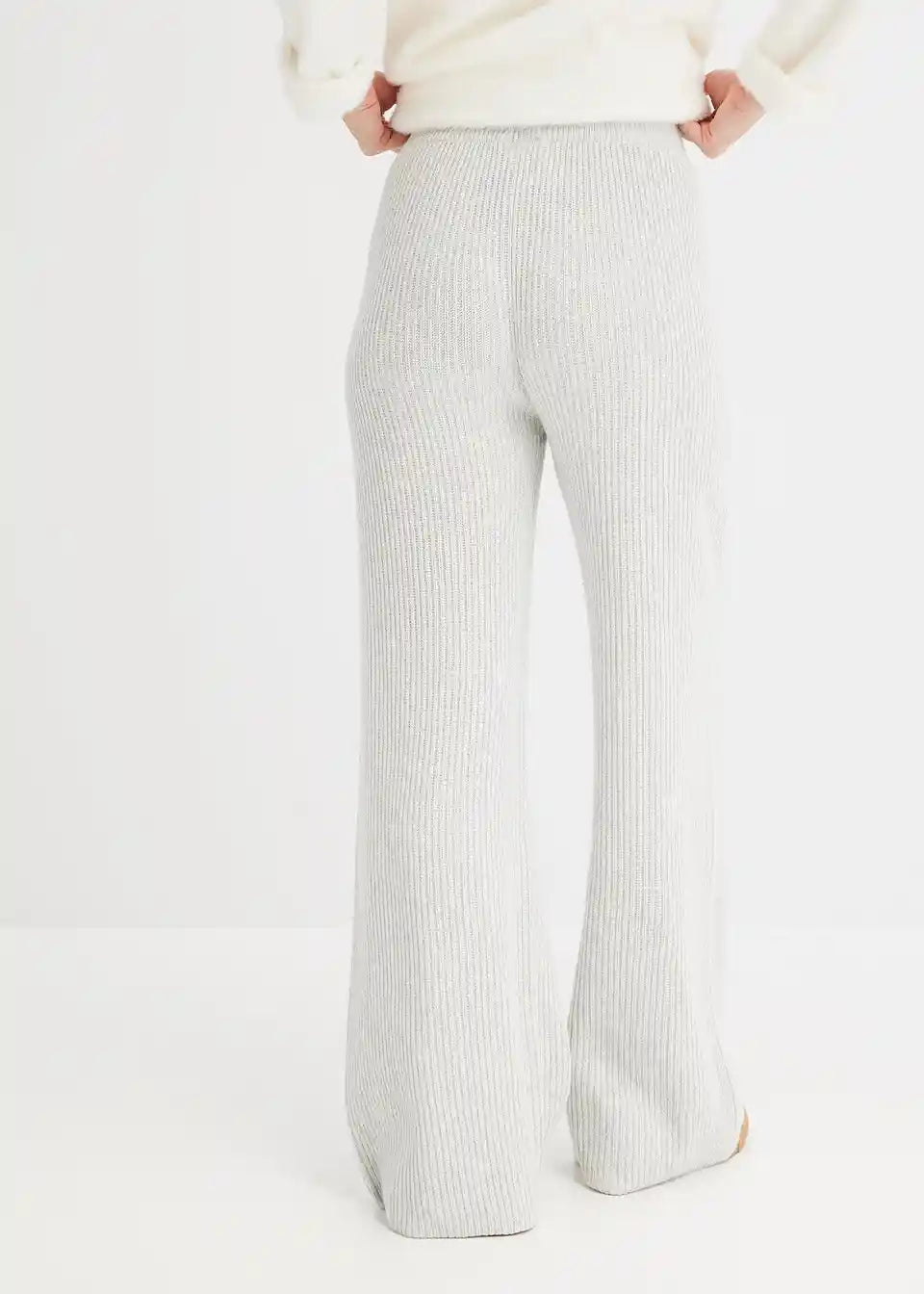 Lijepe hlače od rebrastog pletiva djeluju oblikujuće zahvaljujući širokom pojasu