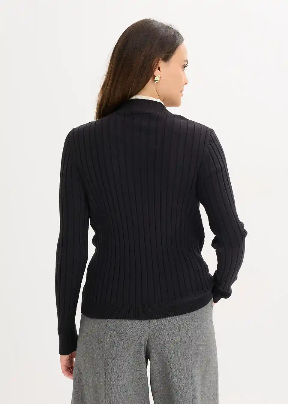Rebrasti fino pleteni pulover s viskozom slojevitog izgleda