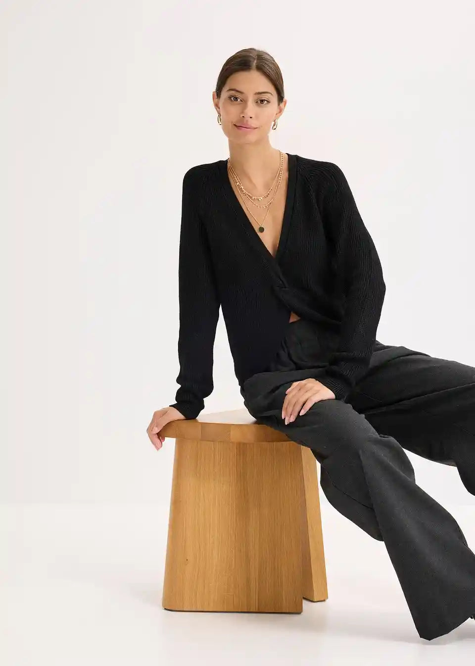 Rebrasti pulover od padajućeg materijala s udjelom viskoze