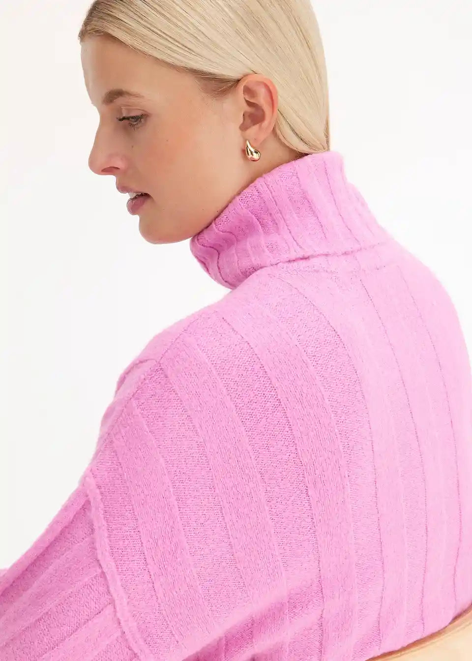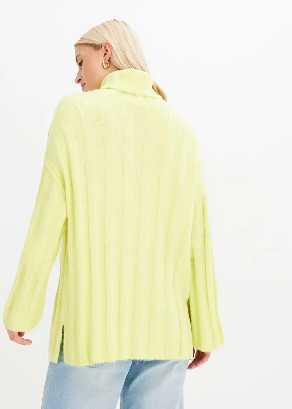 Rebrasti Pulover s Rol kragnom i bočnim prorezima