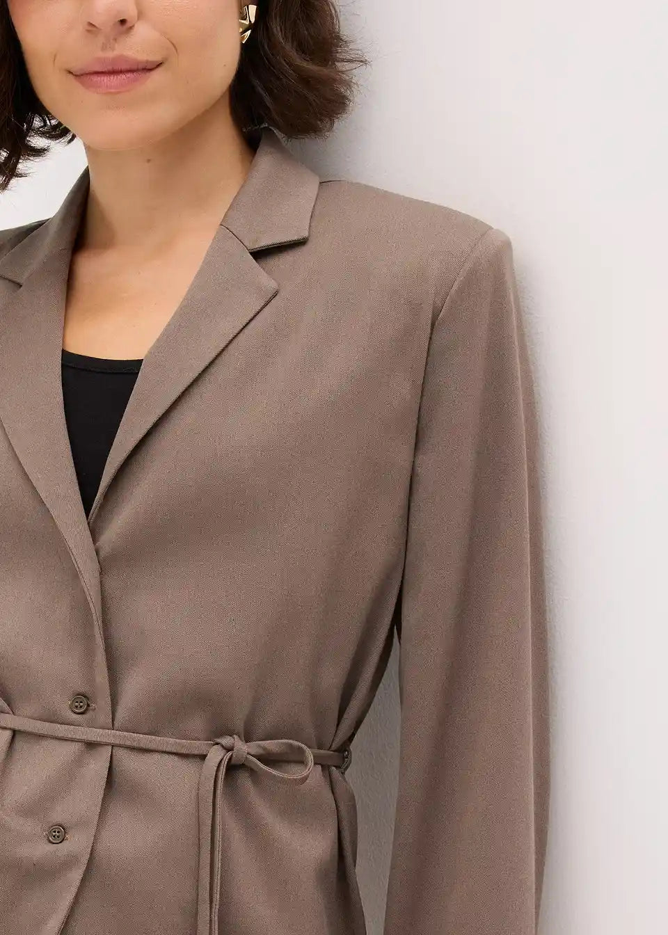 Ležeran sako s reverd ovratnikom i pojasom za vezanje