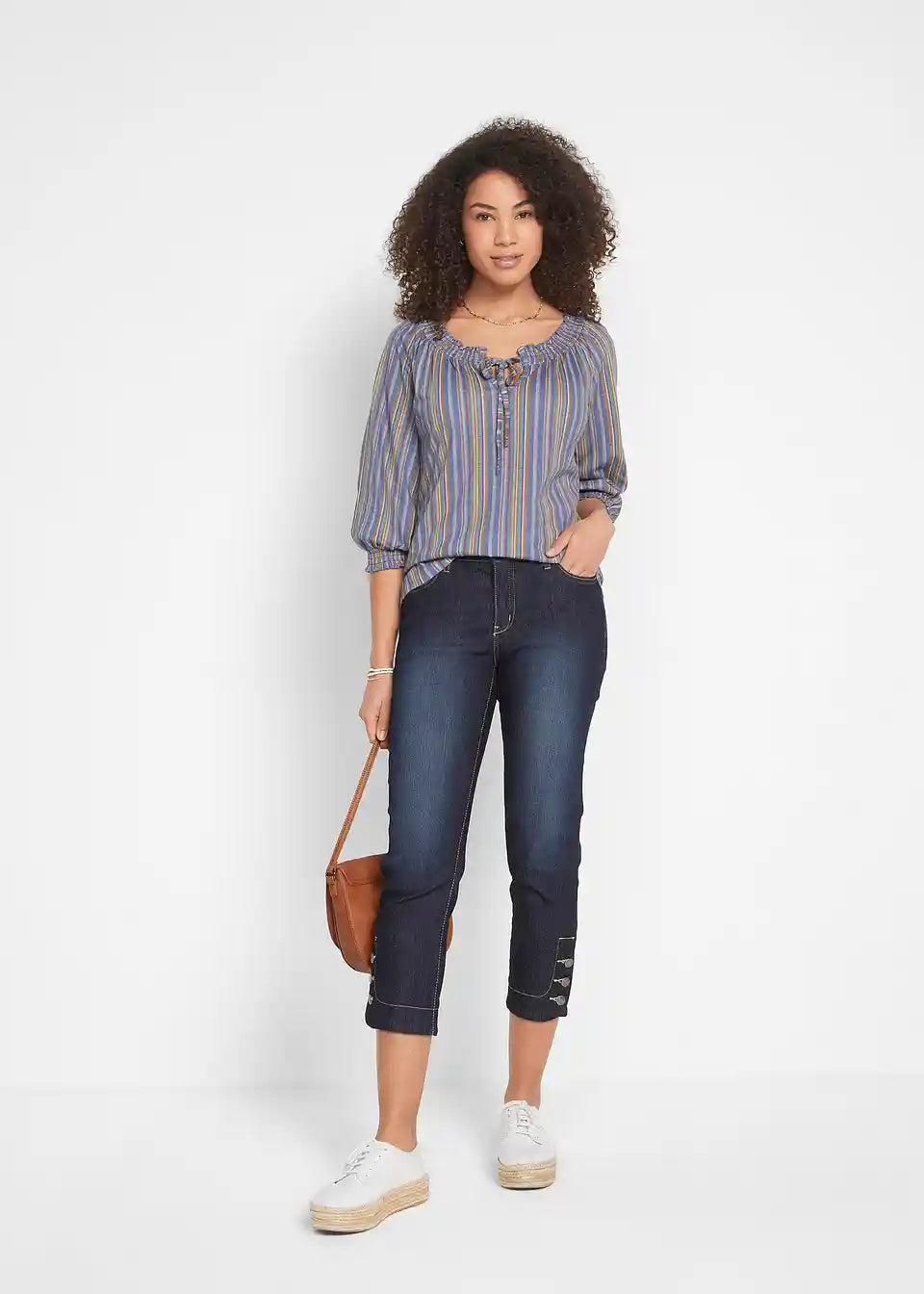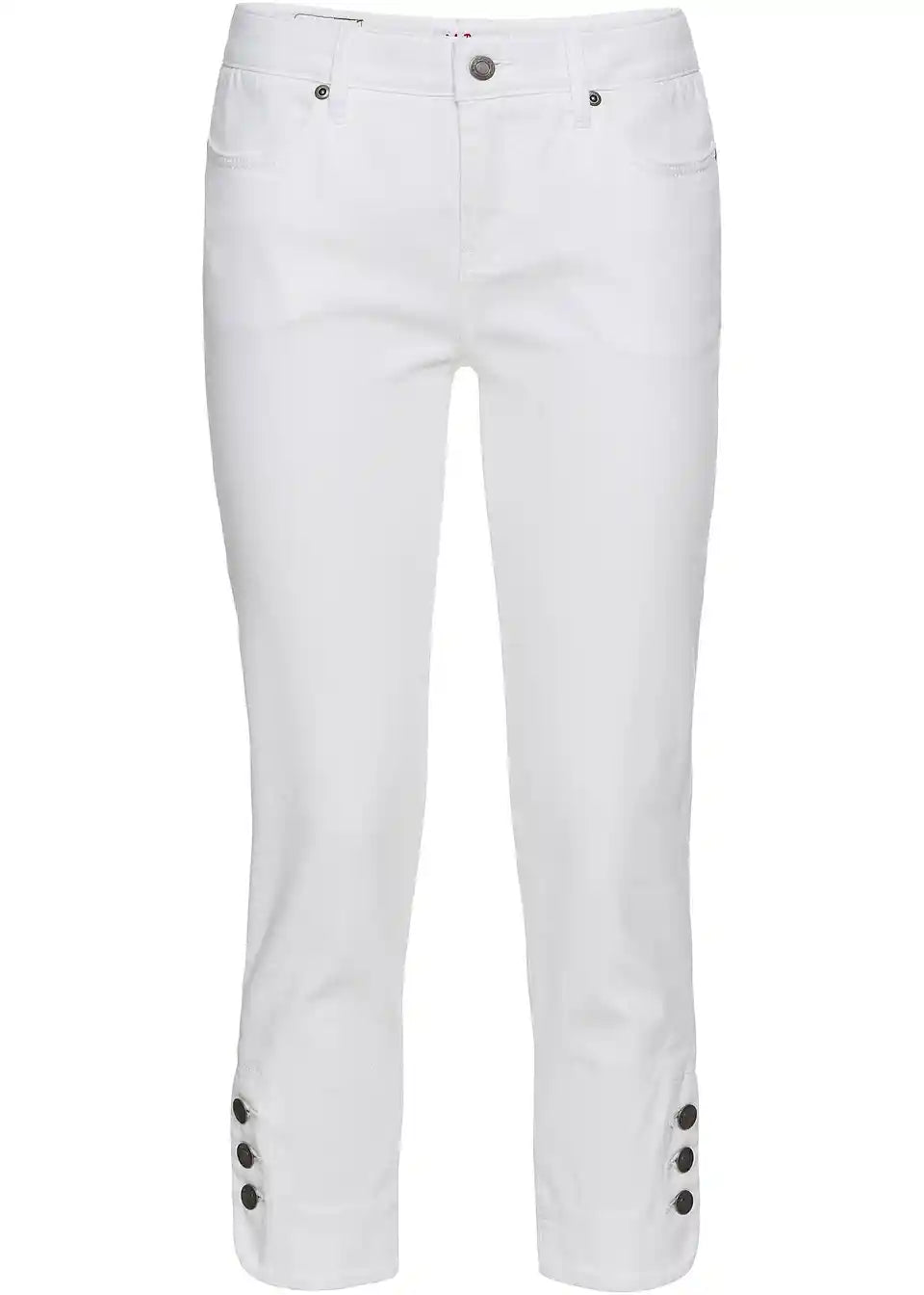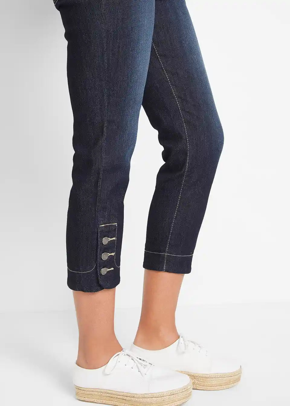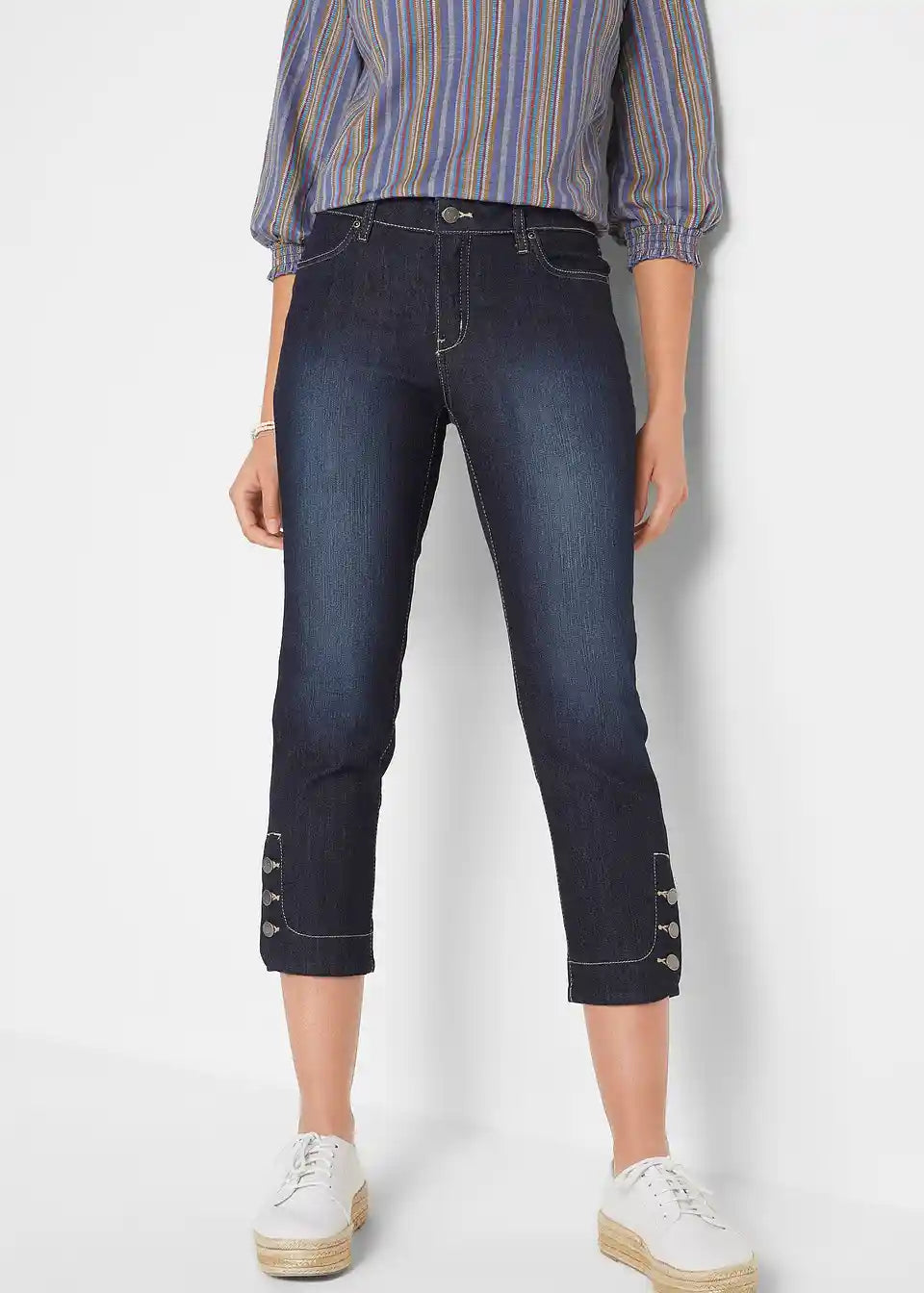 U ovim udobnim rastezljivim trapericama 3/4 dužine ležerne dame izgledaju sjajno. Slim Fit traperice iz aktualne kolekcije John Baner krojene su u 4-džepnom stilu i zatvaraju se gumbom i patentnim zatvaračem. Pametni gumirani bočni prorezi i vrlo uska silueta ističu moderan stil rastezljivih SLIM traperica s gumbima.