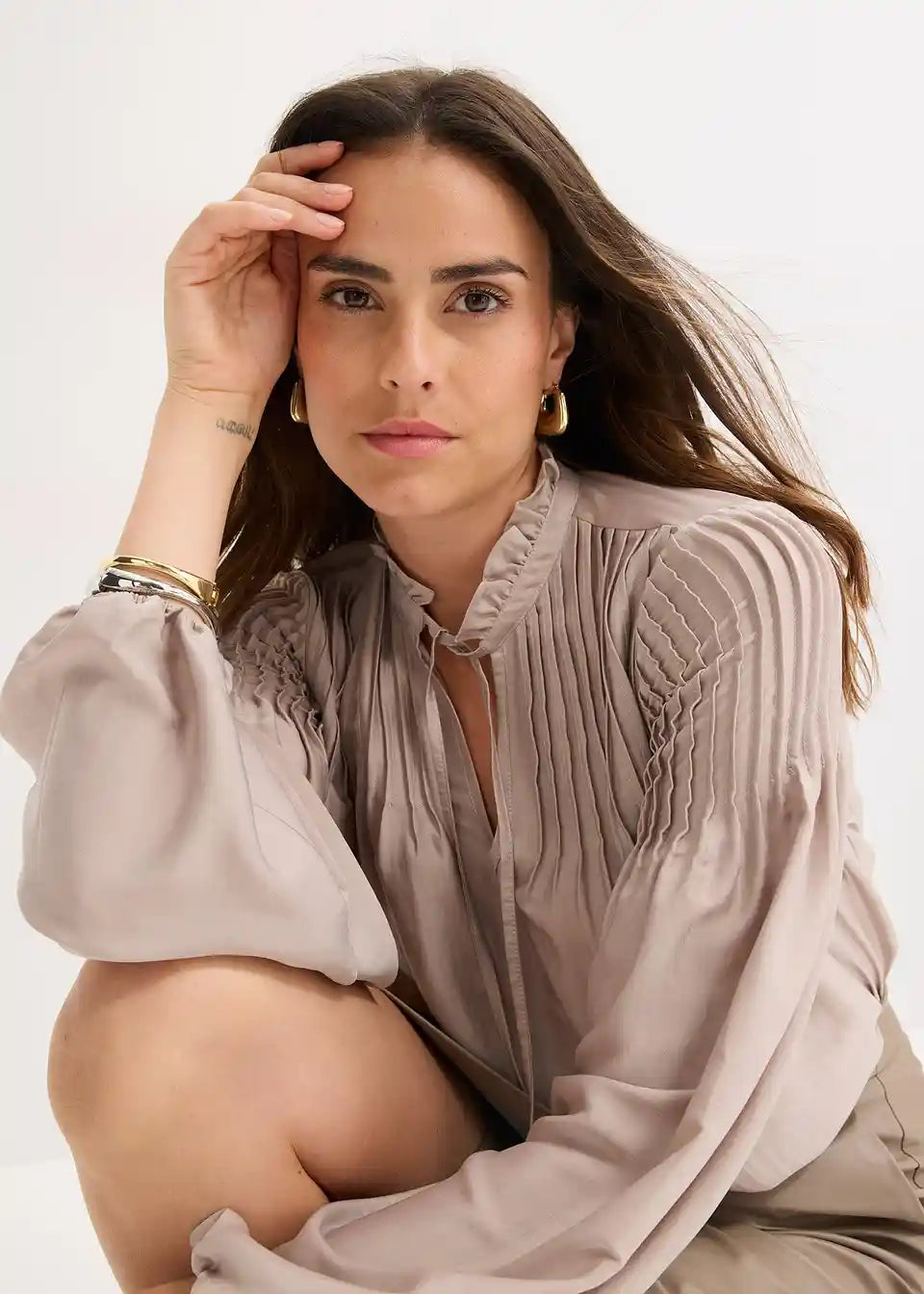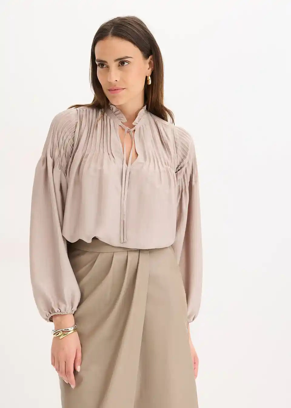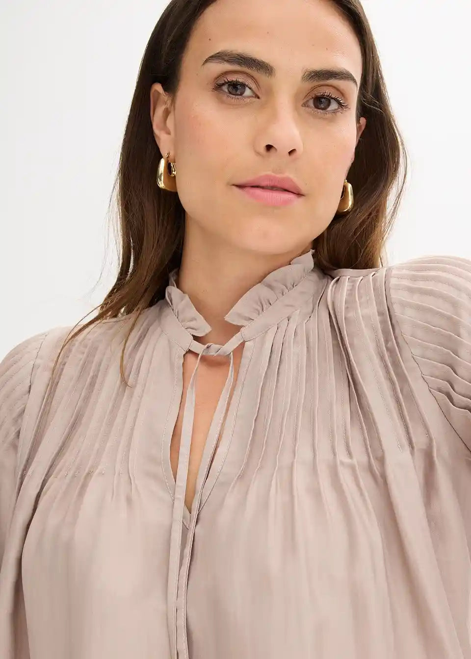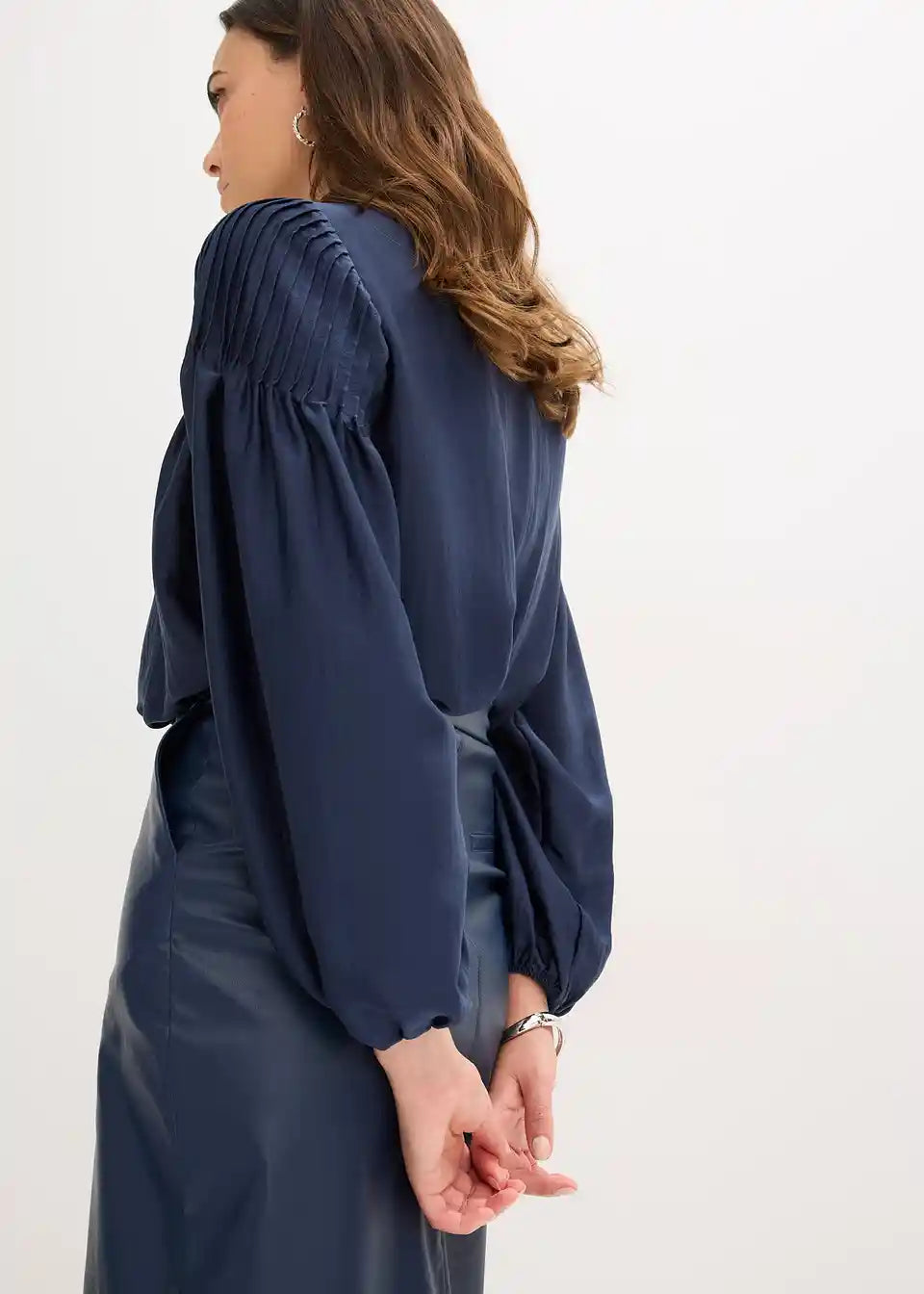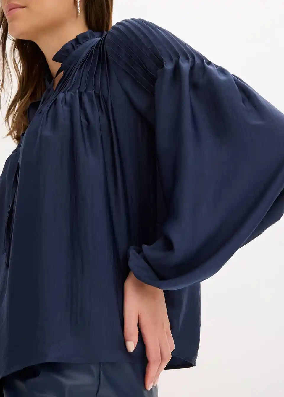 Tunika u kroju bluze od satena sa sjajem i prošivenim rubovima
