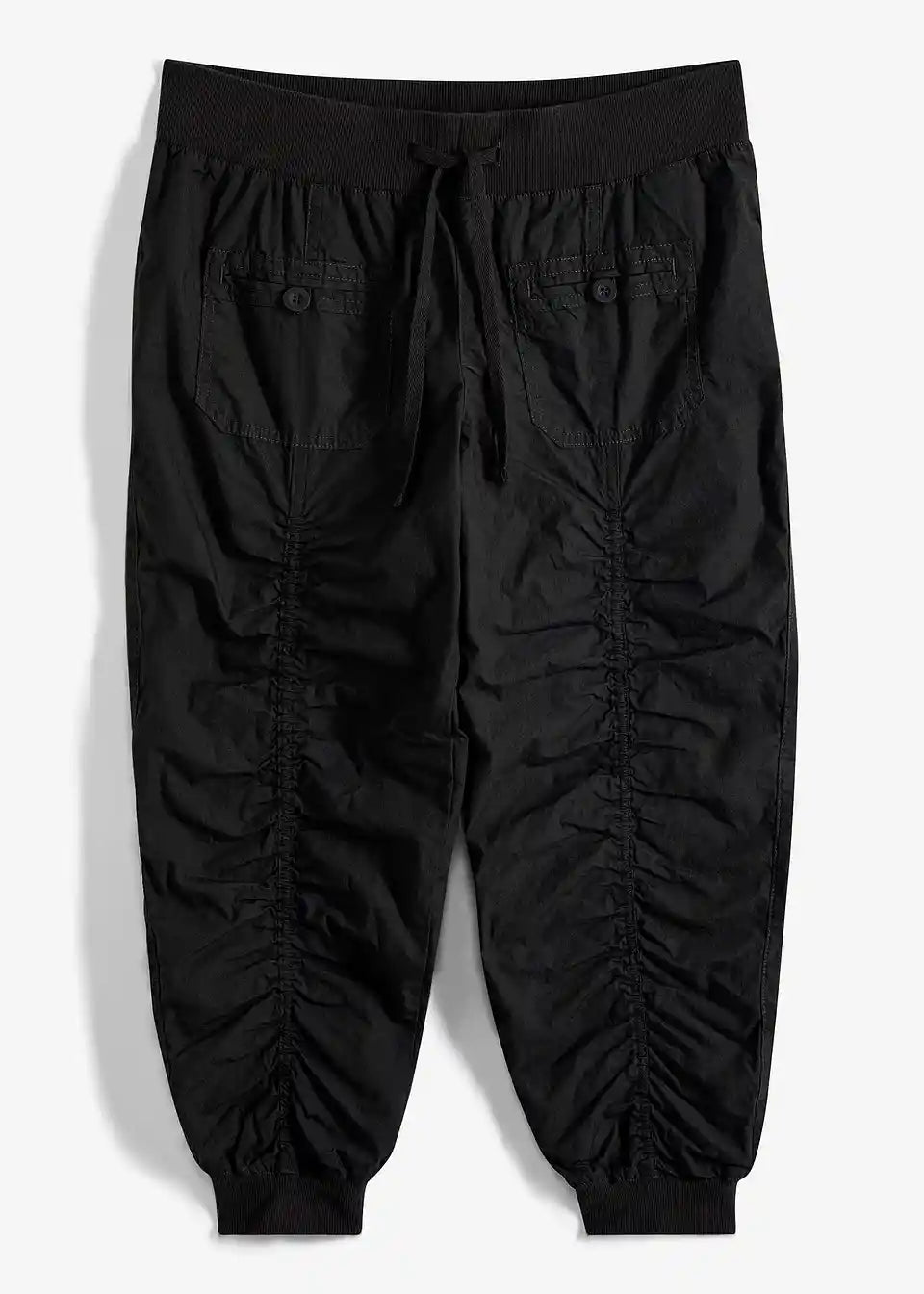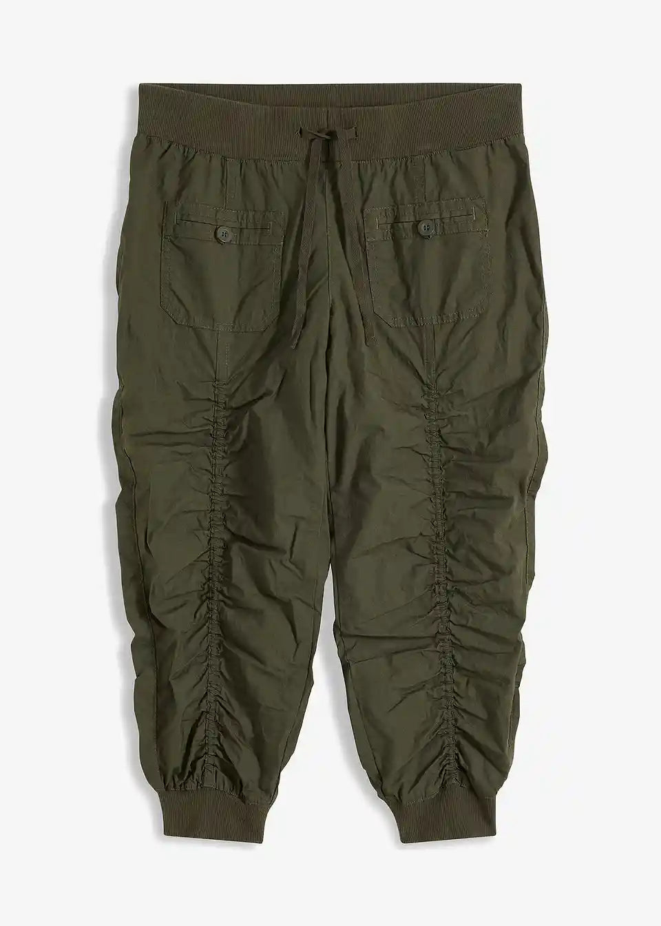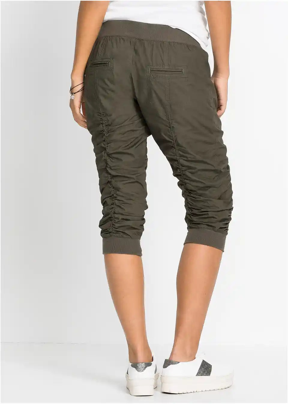 Pravi hit za sve djevojke koje se vole oblačiti praktično i cool su ove udobne Capri-hlače. Moderne 3/4-hlače su dizajnirane s elastičnim rebrastim pojasom na struku i nogavicama. Dekorativni šav s naborima na nogavicama i dva našivena džepa sprijeda naglašavaju moderan izgled hlača.