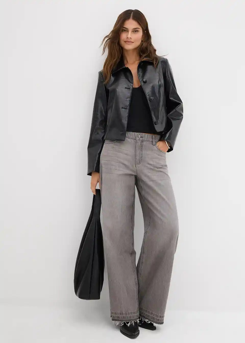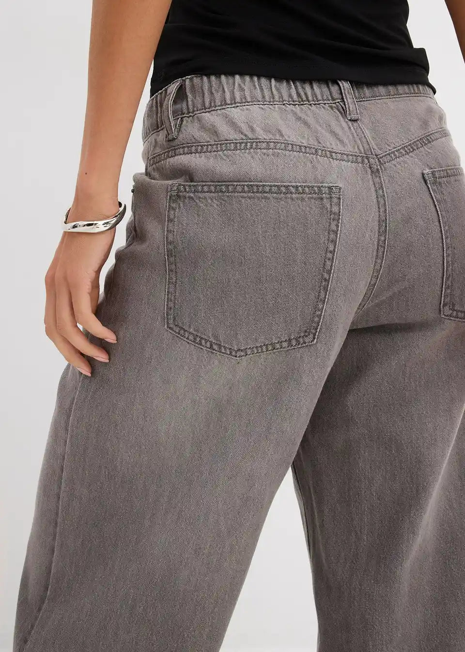 Široke 5-džepne traperice s elastičnim udobnim pojasom od čvrstog pamuka denima, koji je u početku nešto krut, ali nošenjem postaje mekši i opušteniji
