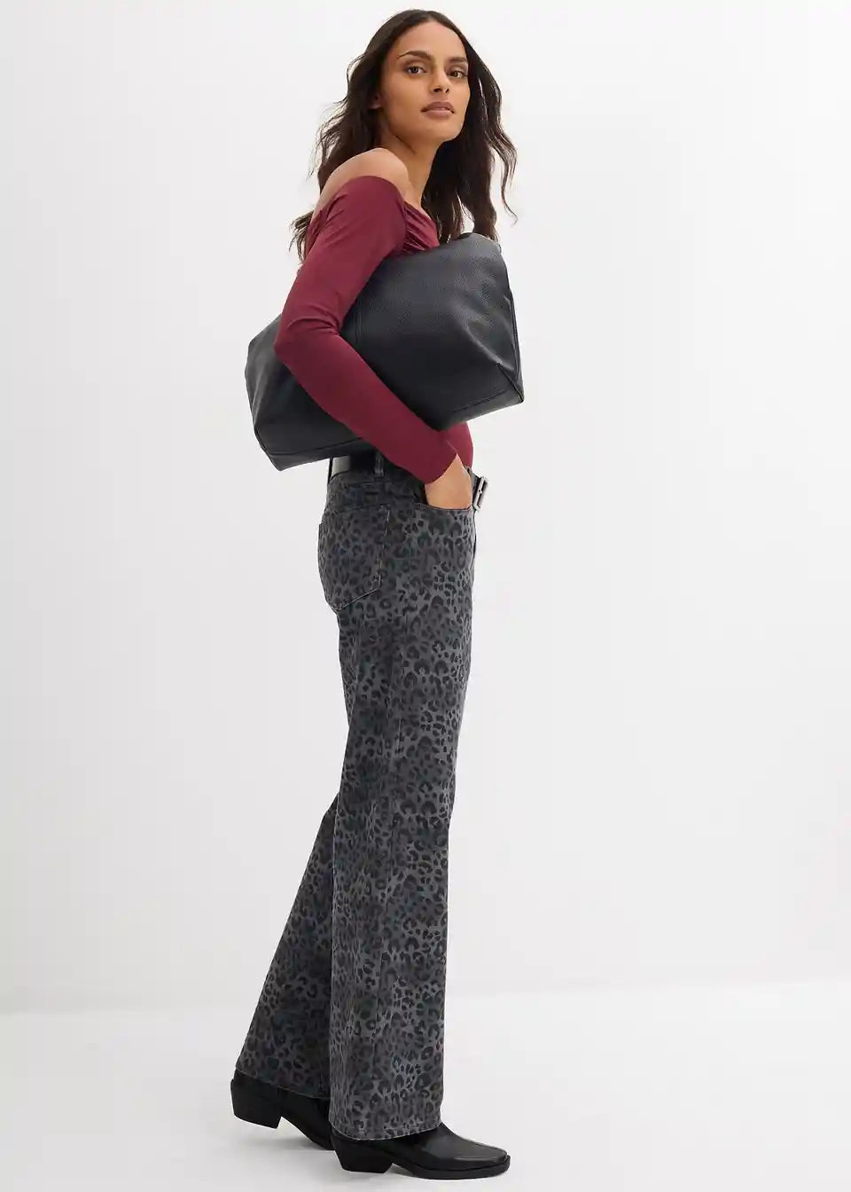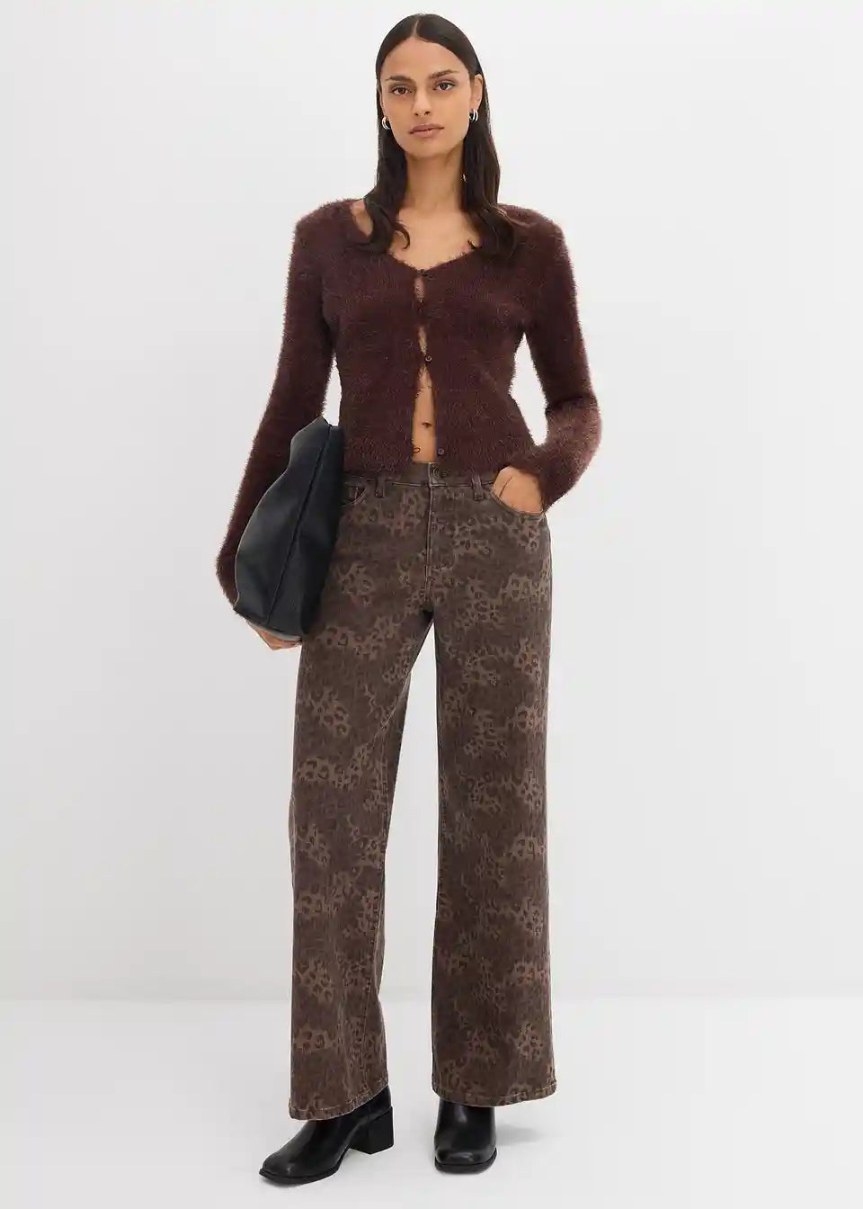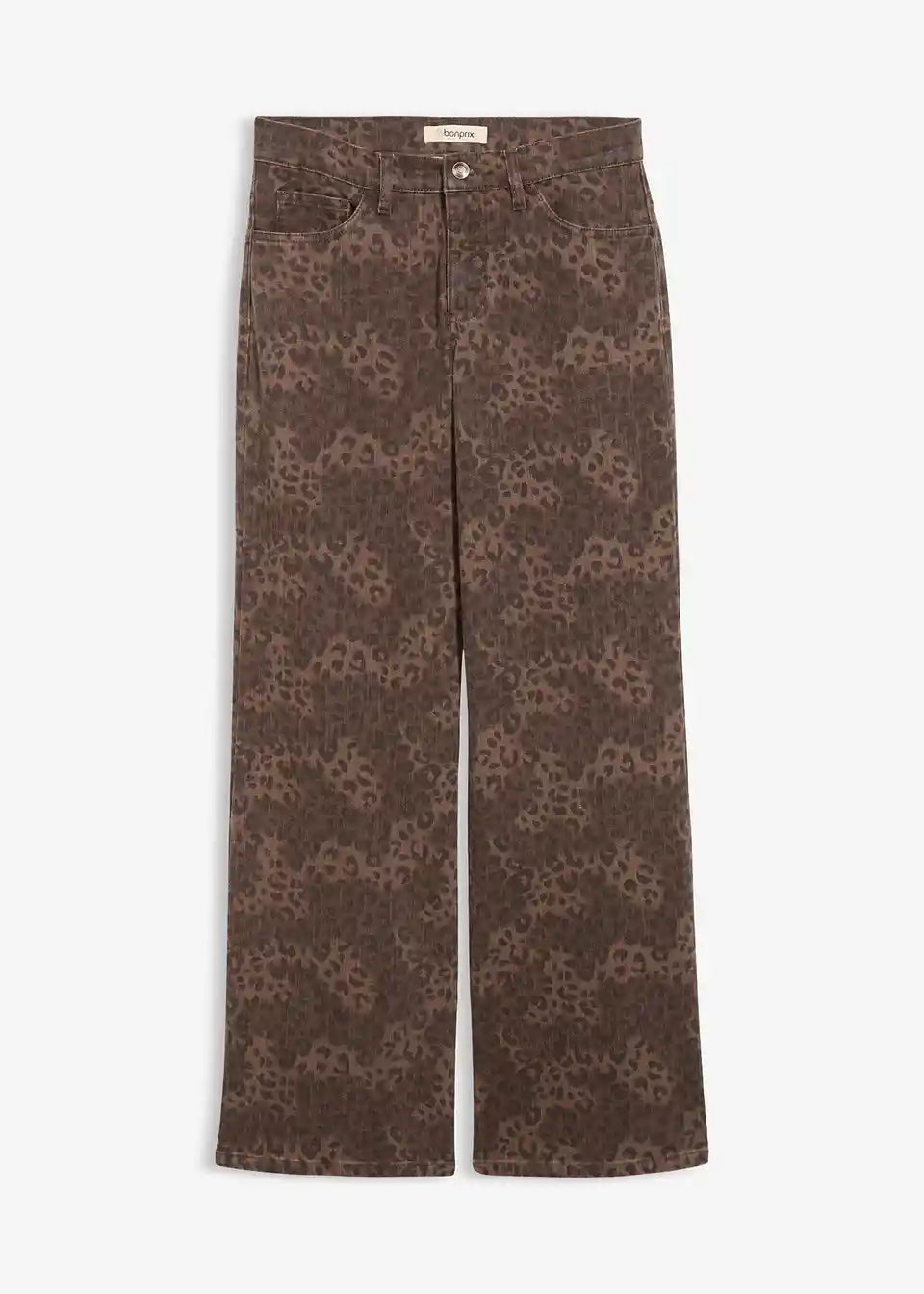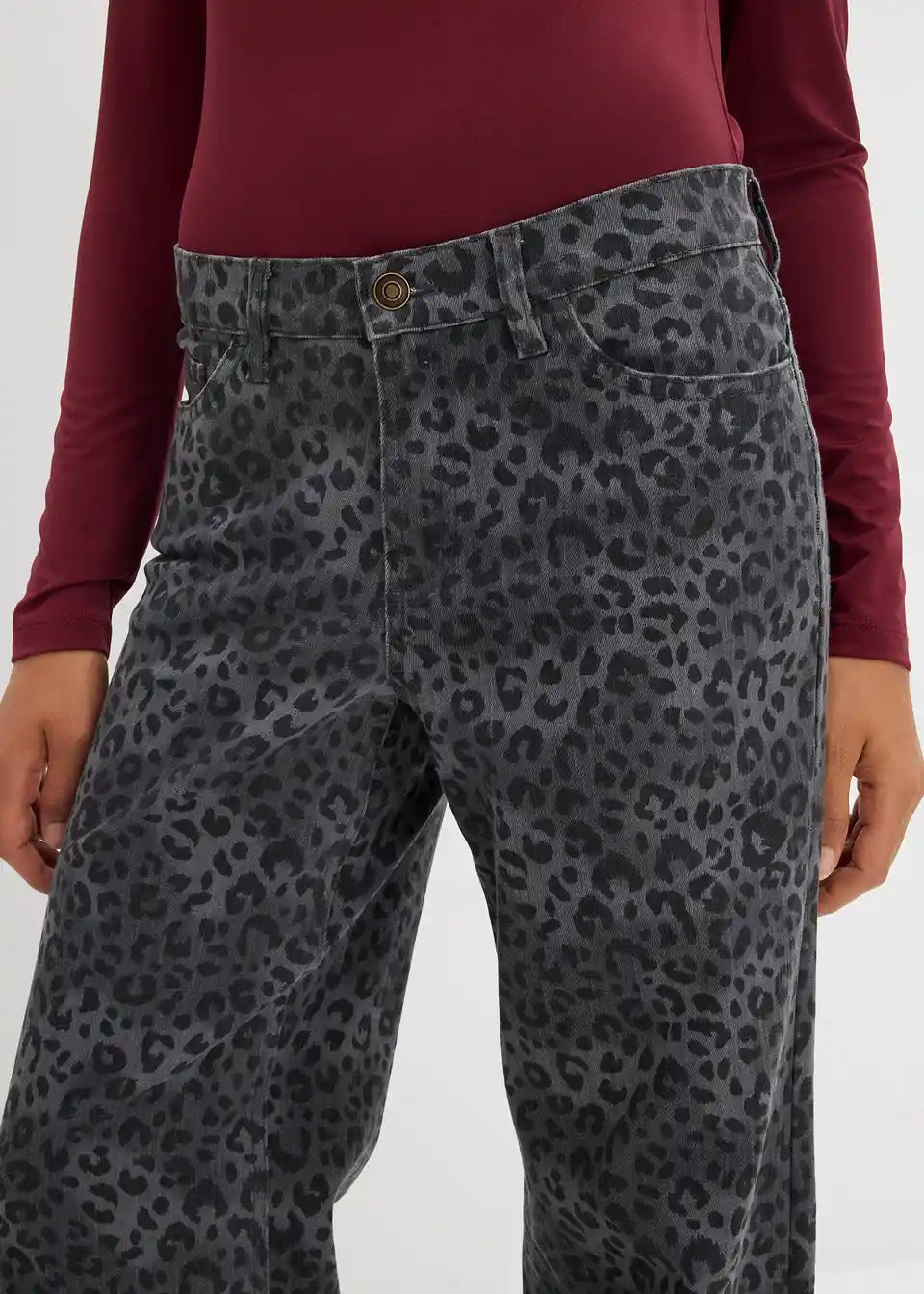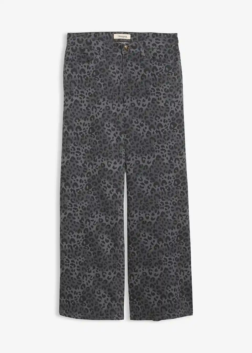 Moderne twill hlače s leopard uzorkom i širokim nogavicama