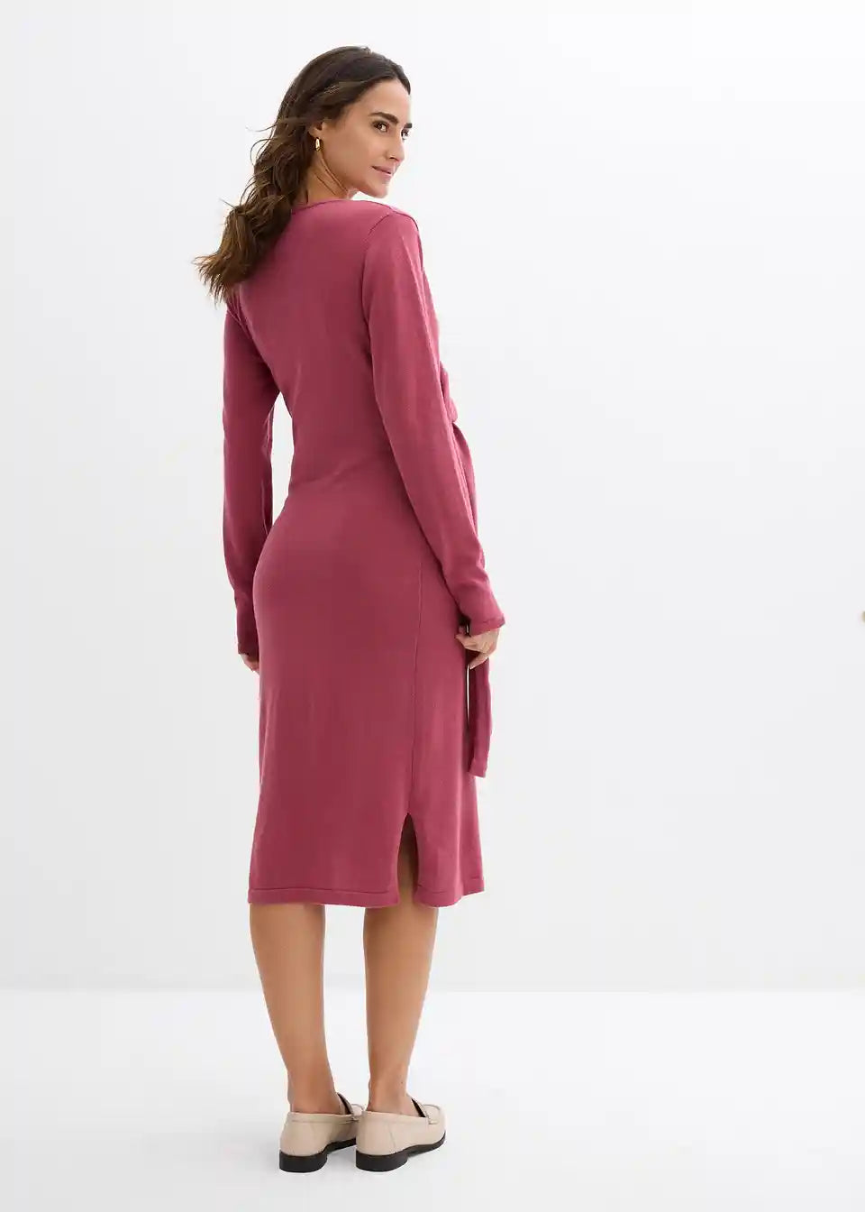 Dugih rukava midi haljina od mekane pamučne pletenine