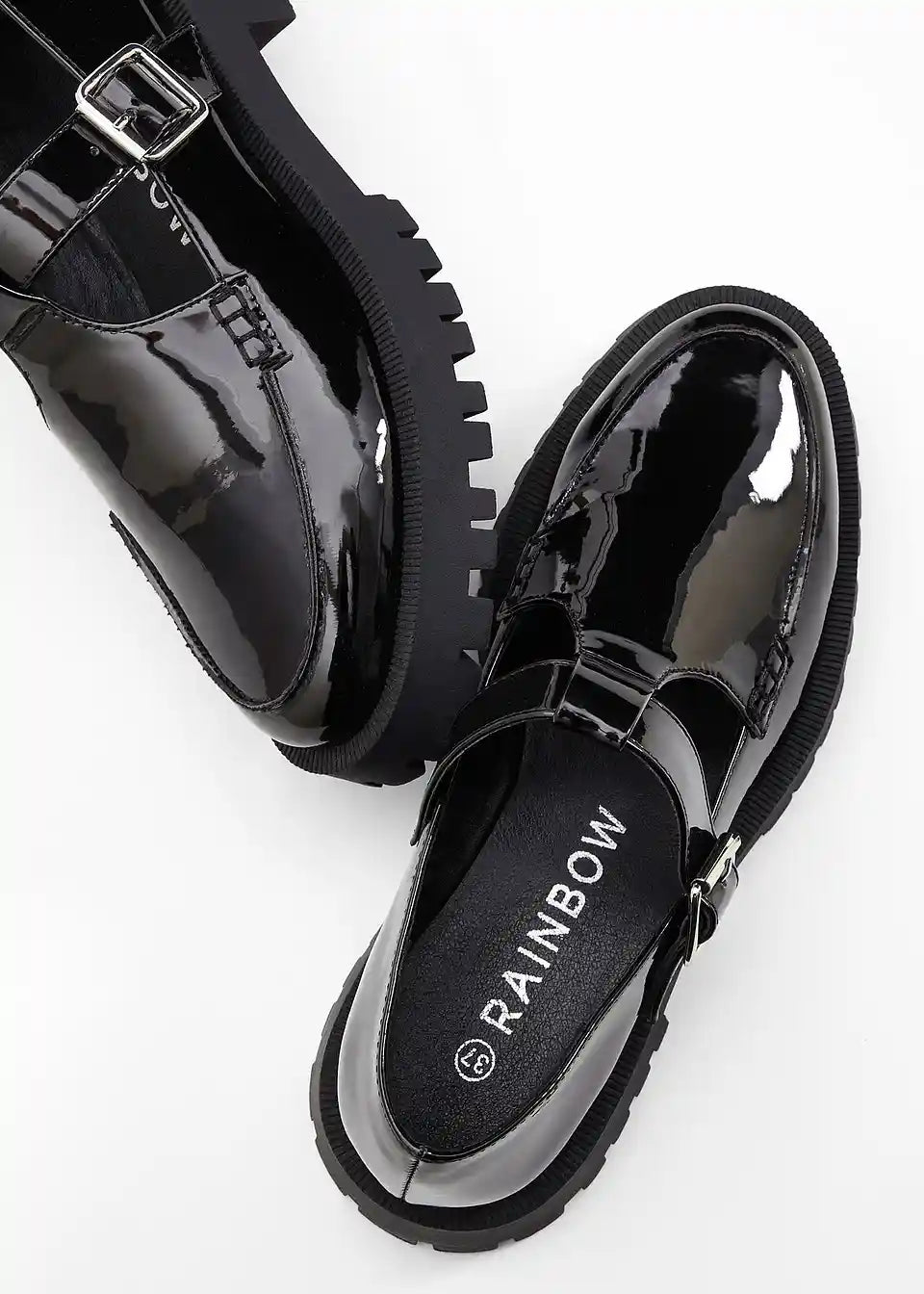 Materijal:gornji materijal: imitacija lakirane kože, podstava: imitacija kože, potplat: sintetika, uložna tabanica: imitacija kože