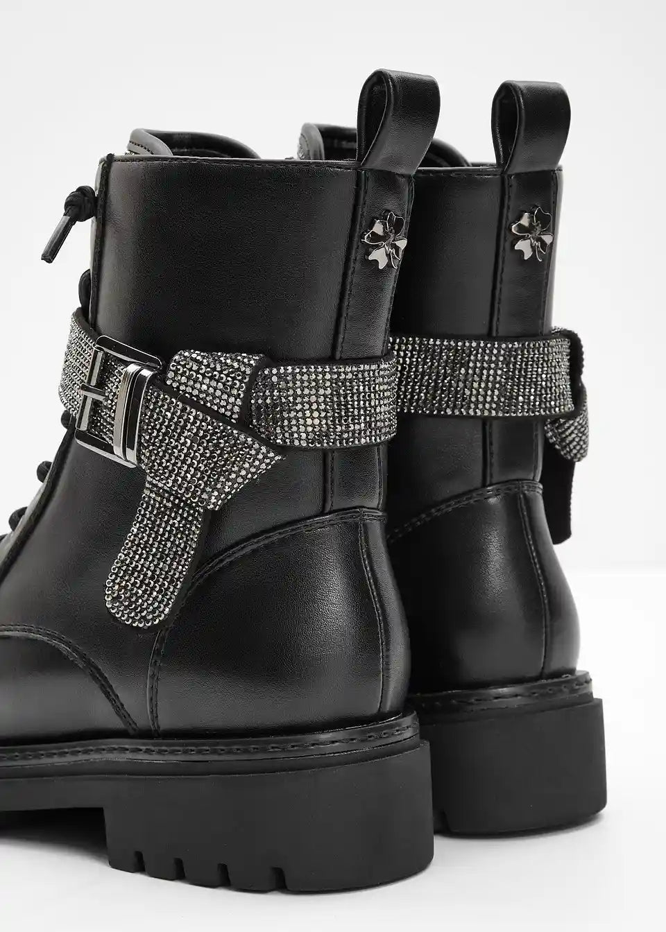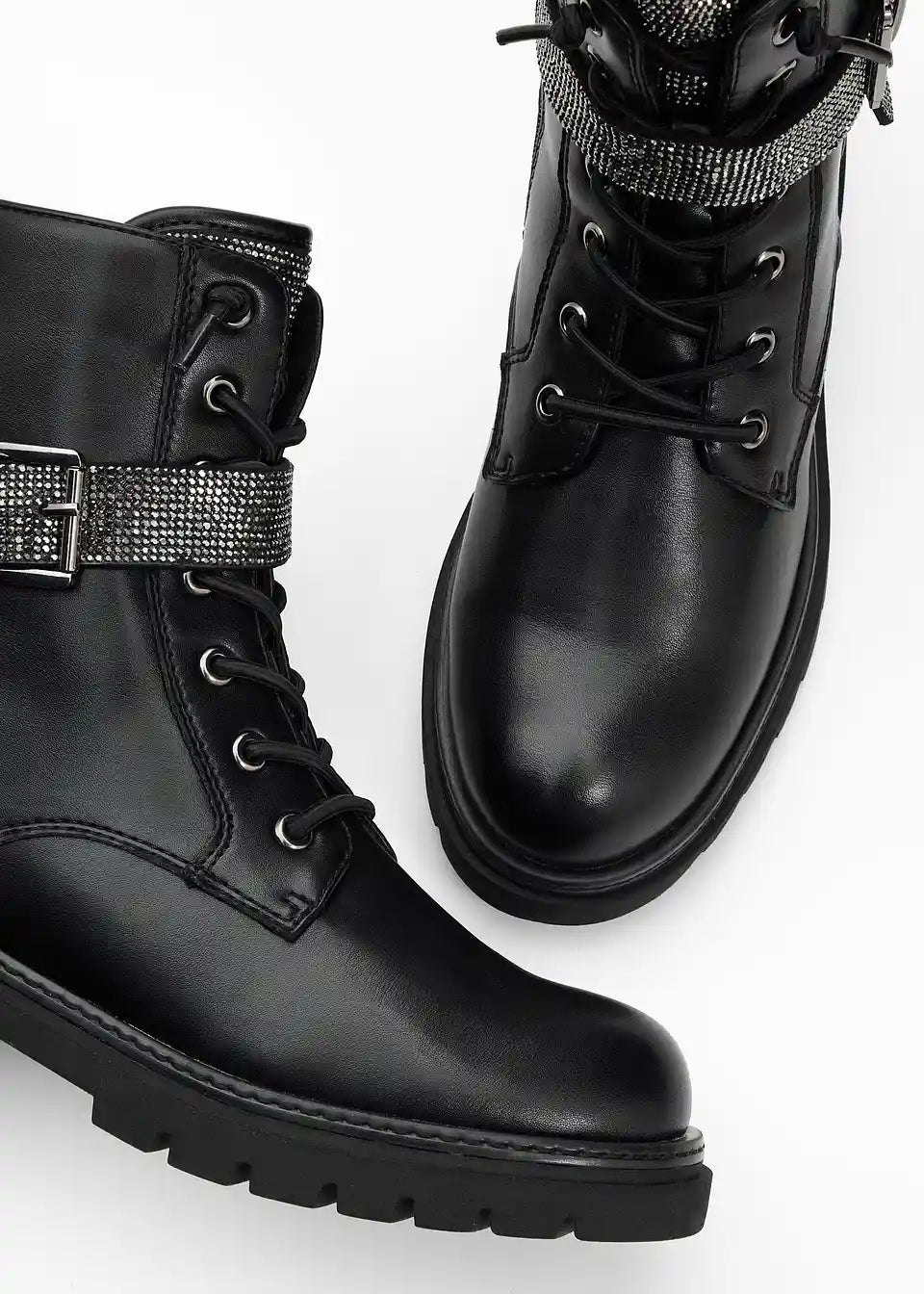 Lijepe vezane gležnjače s blistavim ukrasnim remenom kao atraktivan detalj