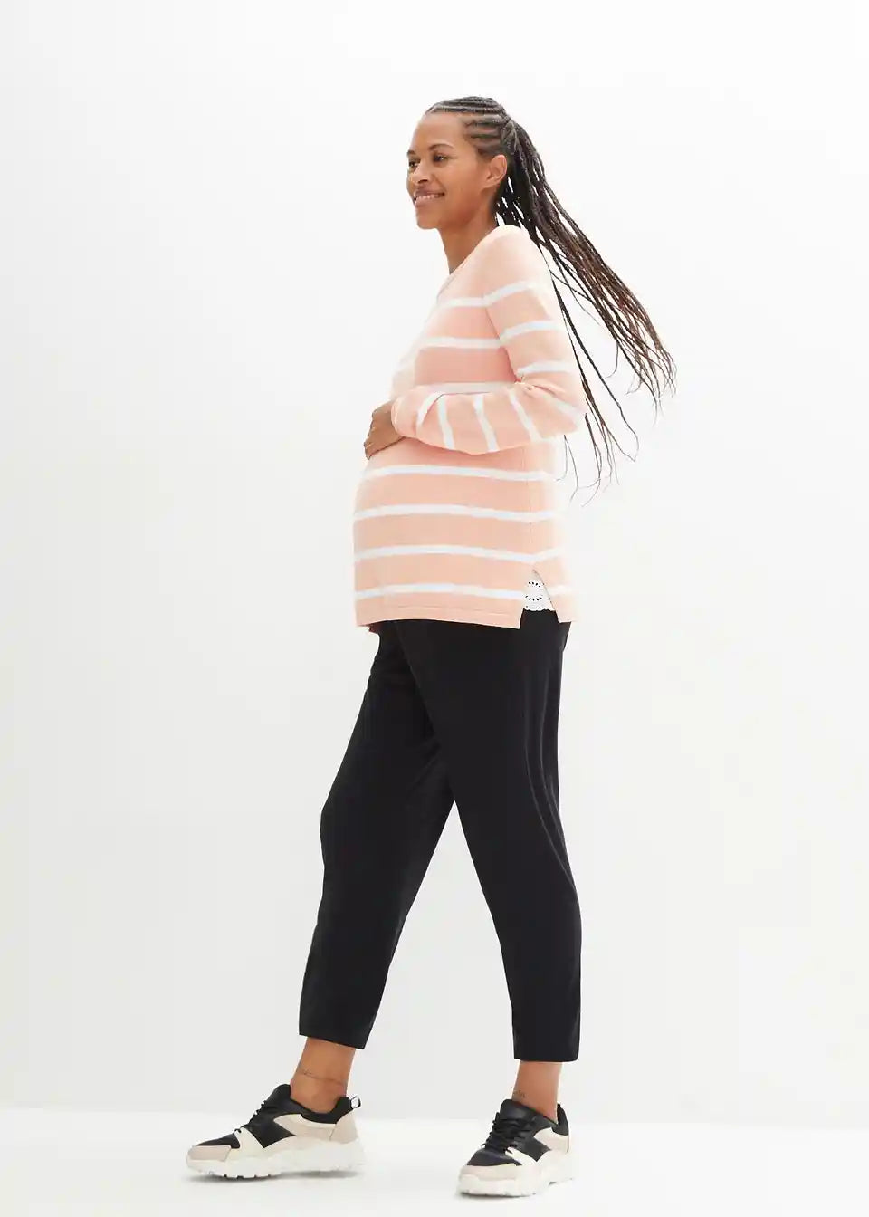 Udobne trudničke hlače izrađene od laganog, elastičnog materijala od jerseya. Široki, povezani pojas od jerseya osigurava savršeno pristajanje na trbuhu. Također su prikladne za trudničku jogu i pilates.