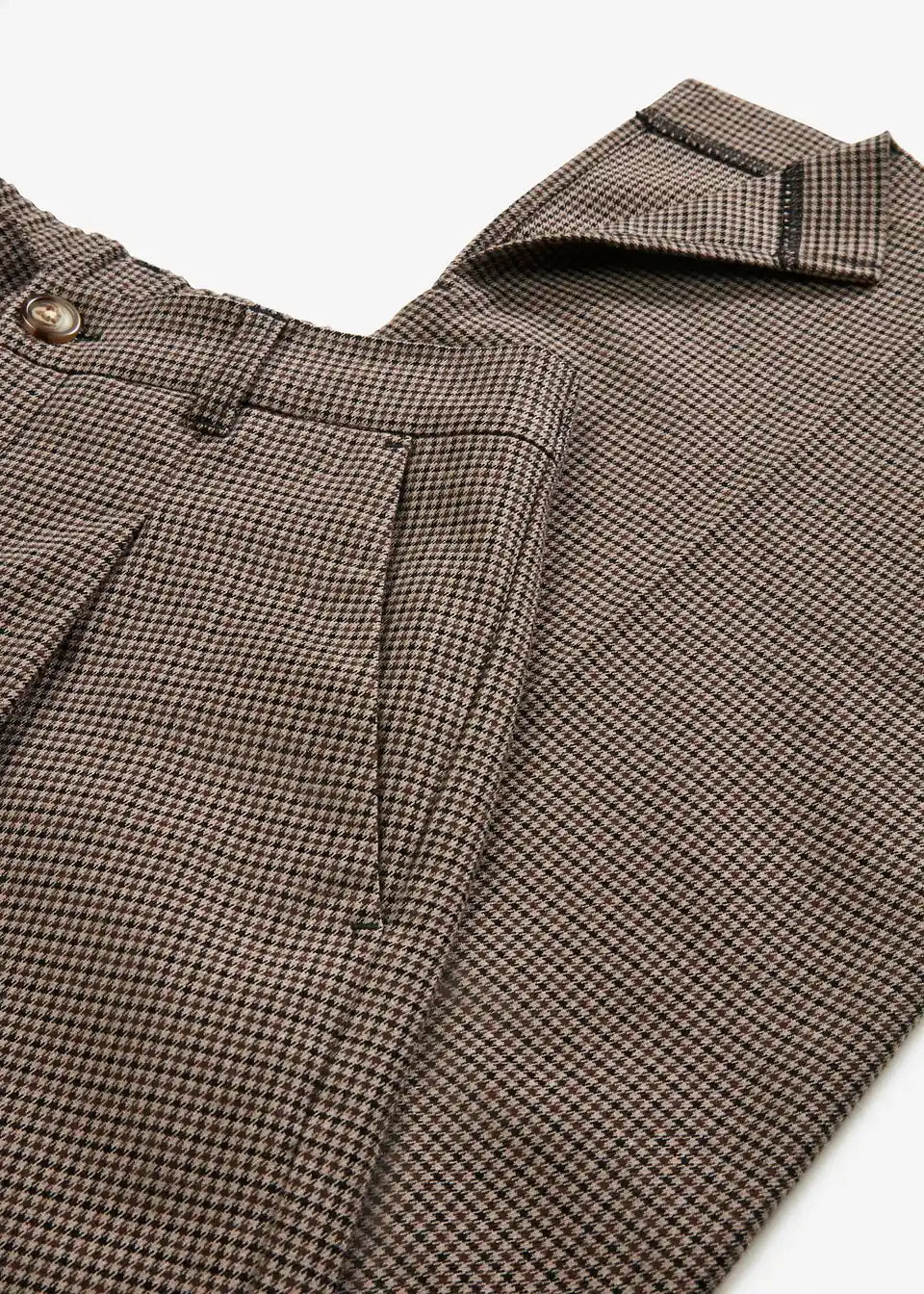 Karirane hlače s naborima u struku i odvojivim lančićem