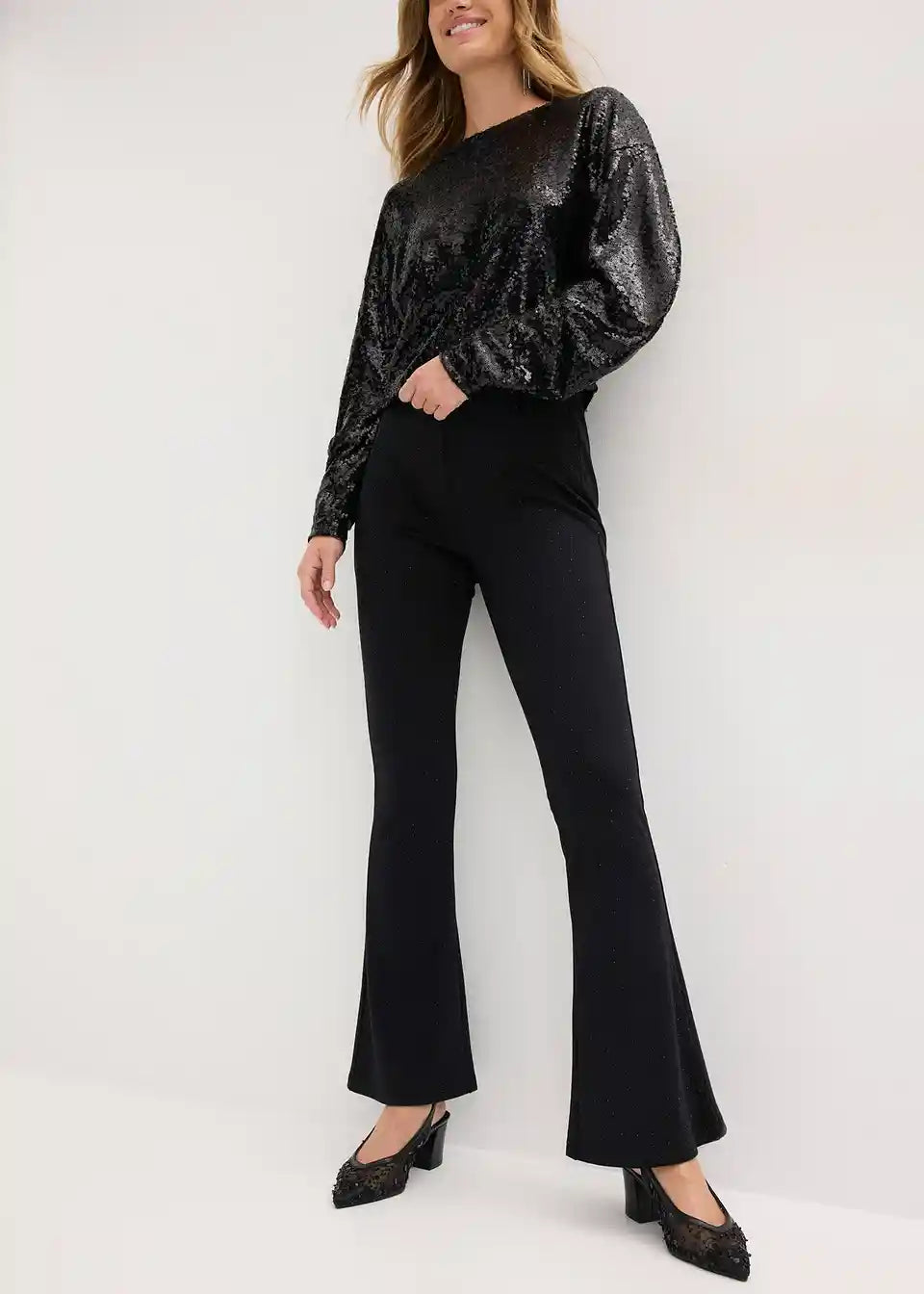 Flared Leggings od udobnog Punto di Roma materijala s kamenčićima