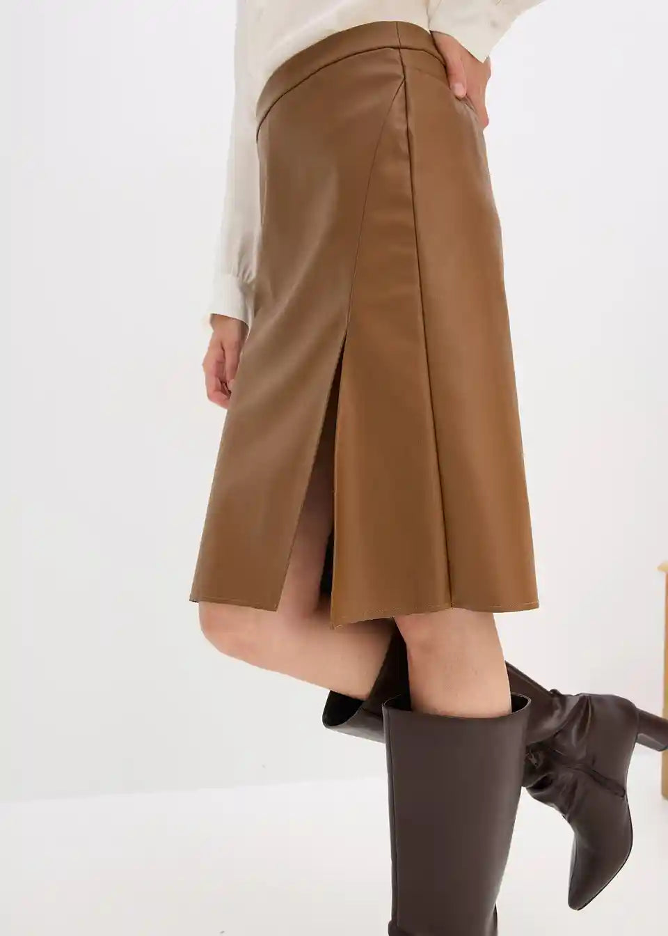 Krojena suknja s kosim prorezom sprijeda i pasicom straga
