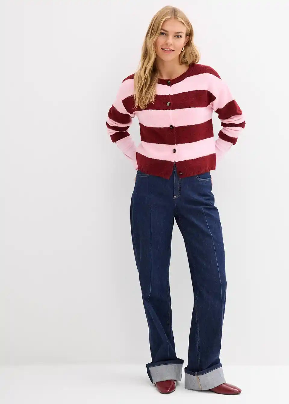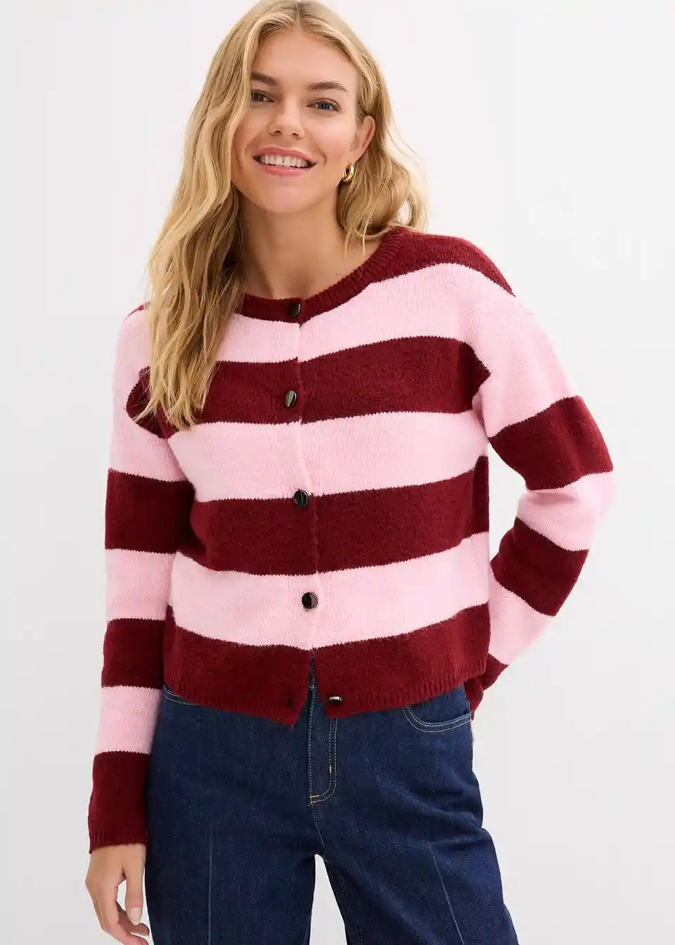 Kratki kardigan od finog pletiva s gumbima, prugasti