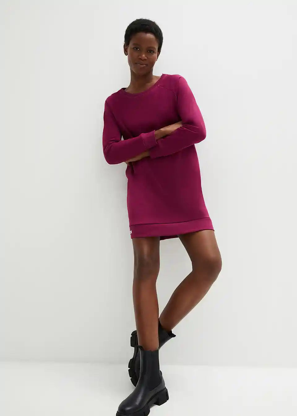 Tko voli udobnost, ali i modu, s ovom haljinom od trenirke pronaći će savršen odjevni predmet. Model s laskavim krojem za figuru dolazi s tipičnim elementima trenirke poput elastičnih rubova i raglan rukava. Konačan detalj haljini iz kolekcije bpc daje vez u obliku slova V ispod okruglog izreza. Bilo sa tenisicama, čizmama ili balerinkama: haljina od trenirke osigurava dobro raspoloženje i ležernu udobnost.