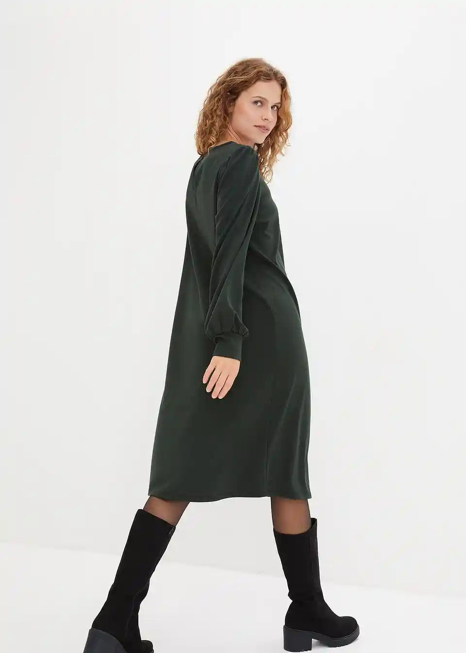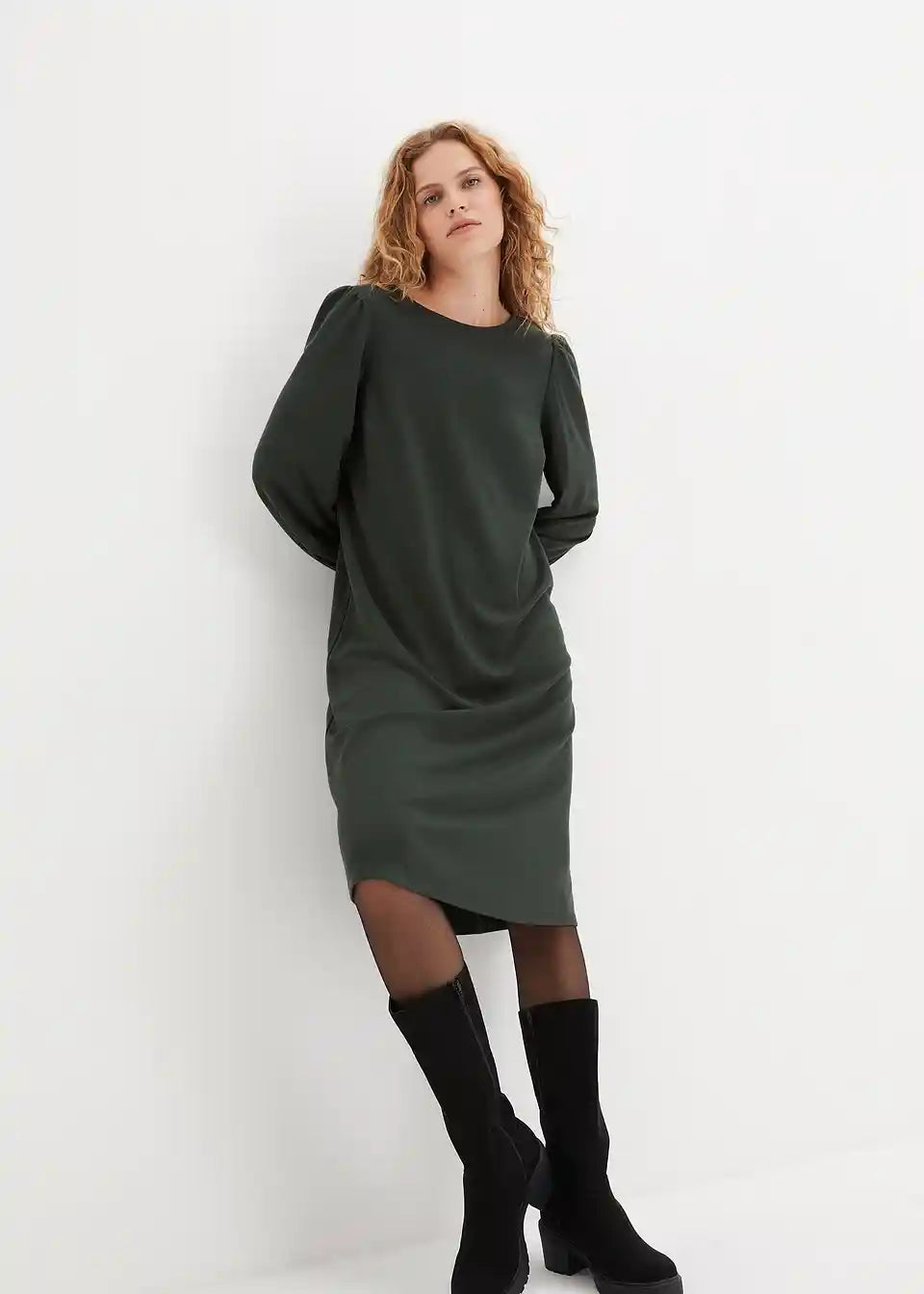 haljina koja oblikuje figuru izrađena od čvrstog jersey-materijala, manžete rukava zatvaraju se elegantnim, tkaninom presvučenim gumbima