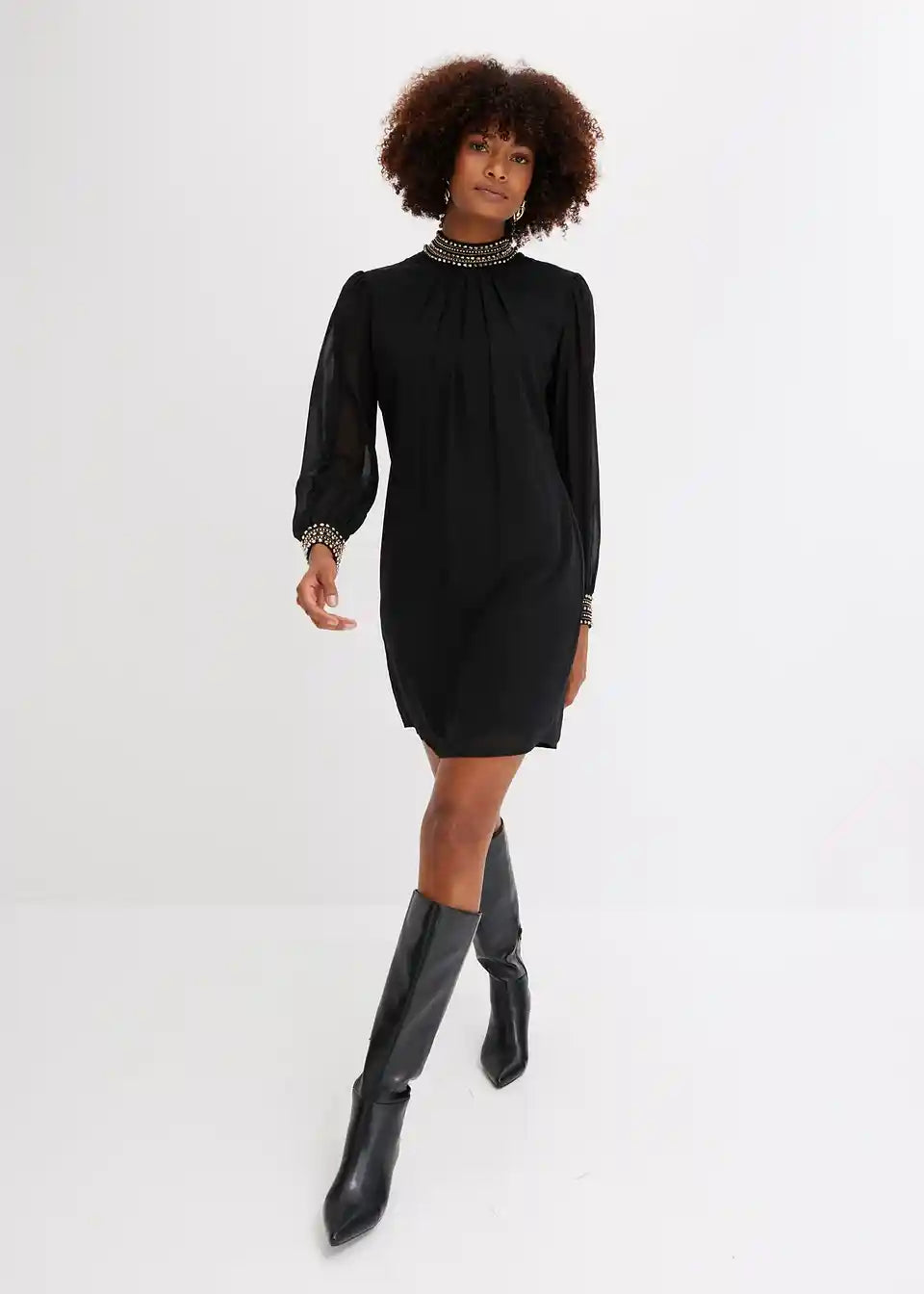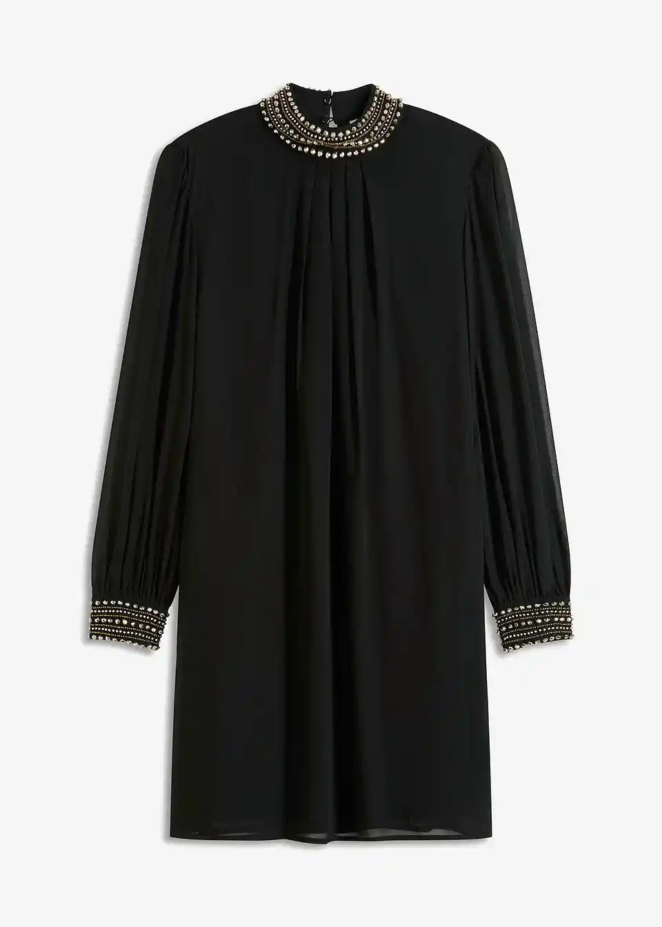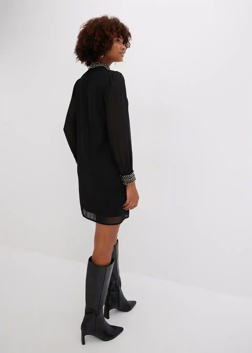 Moderna i ženstvena: Košulja-haljina od laganog šifona s vezenim perlama na ovratniku i manžetama