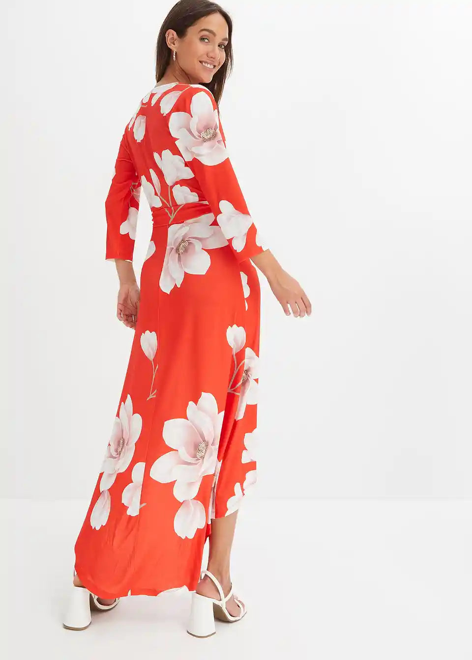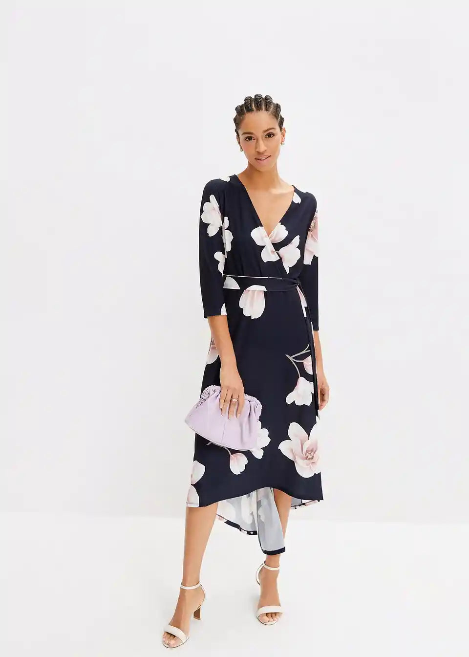 Ova elegantna haljina marke BODYFLIRT ukusno naglašava dekolte i listove. Ženstvena midi haljina očarava atraktivnim cvjetnim uzorkom, asimetričnim porubom i sofisticiranim preklopnim izgledom. Uski pojas za vezanje u struku ističe liniju tijela na privlačan način. Dugačka vokuhila-haljina s pojasom za vezanje izgleda fantastično uz elegantne cipele s visokom potpeticom.