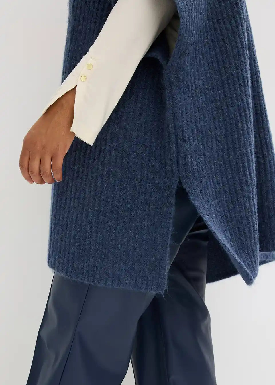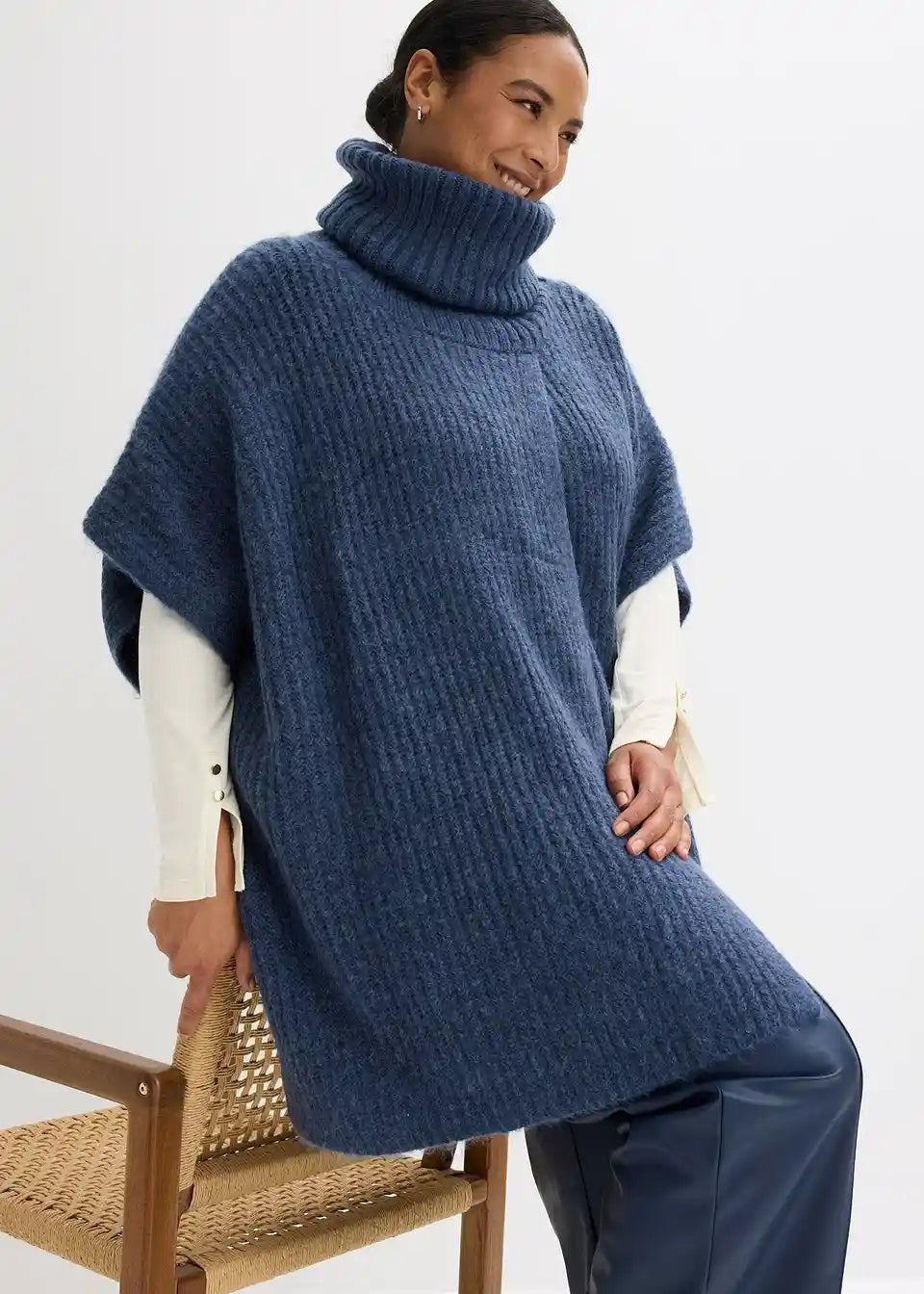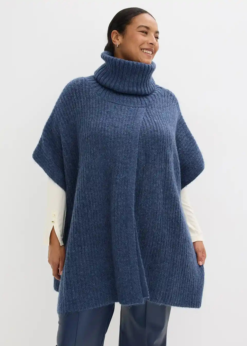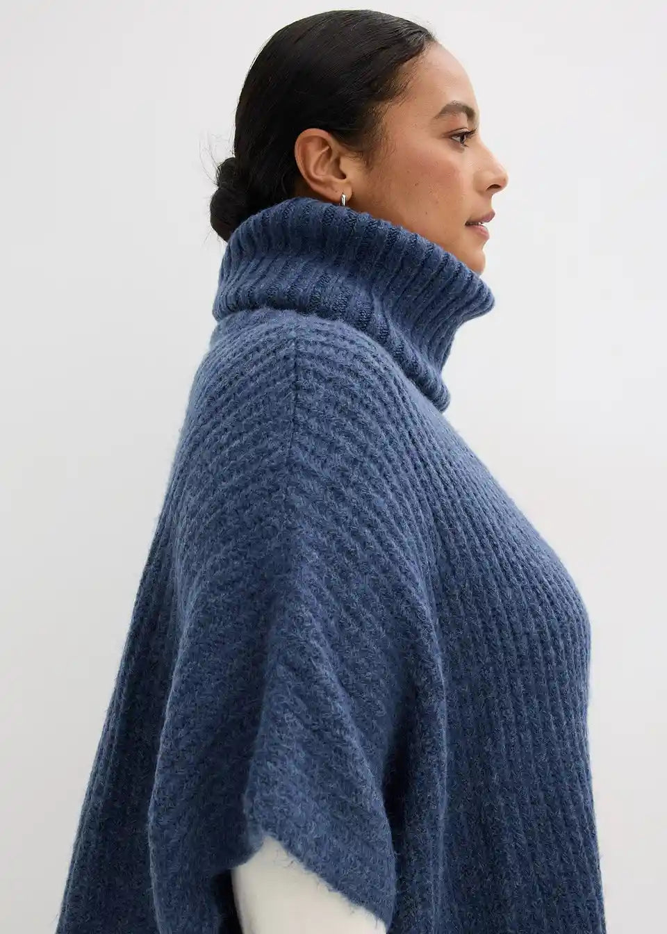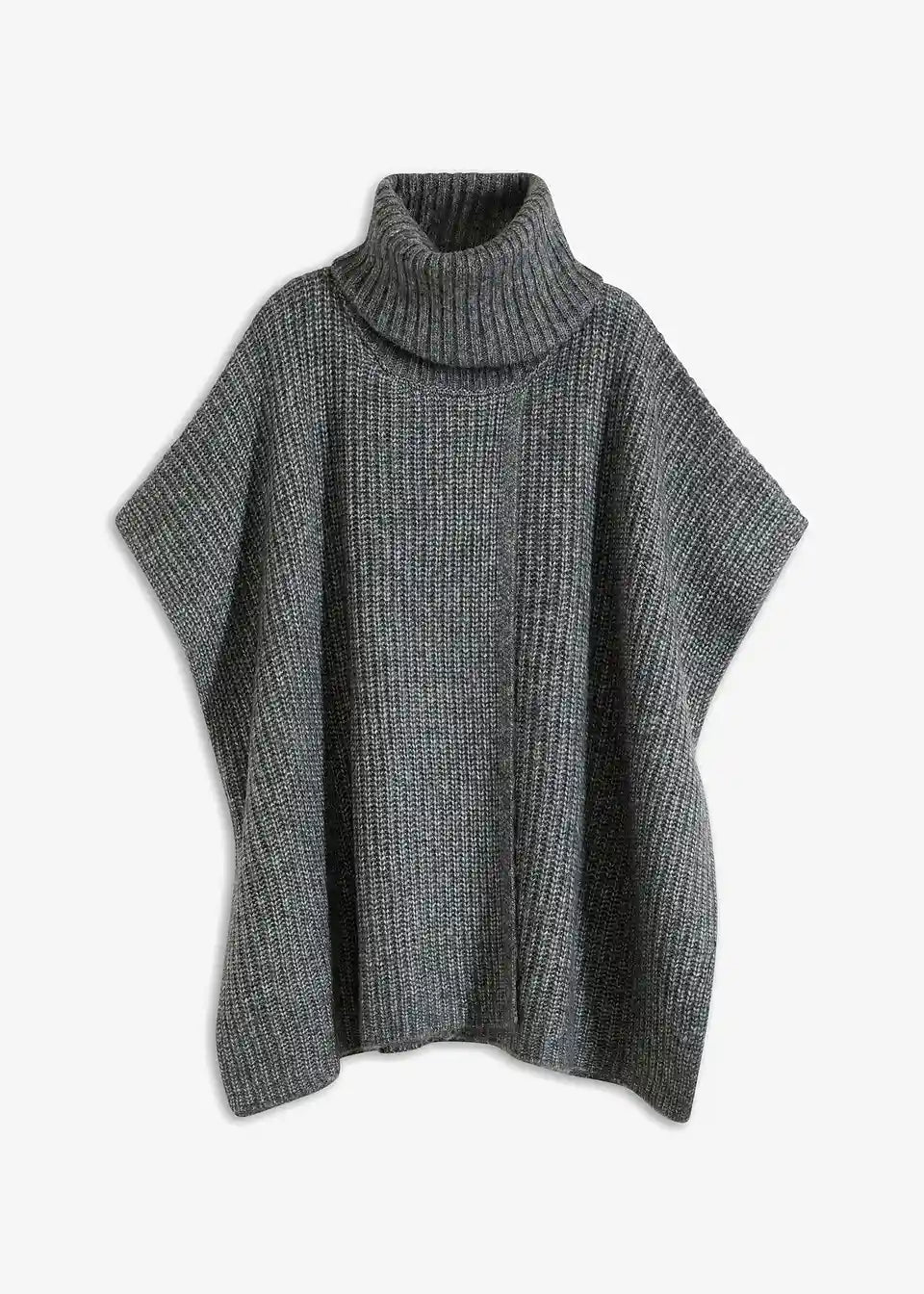 Udoban pončo-pulover sa širokim šal ovratnikom.