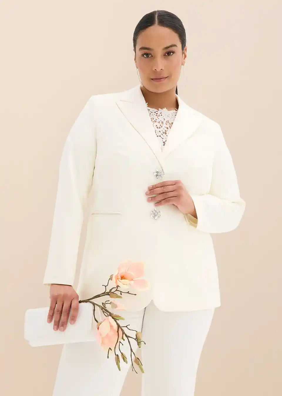 Moderan i ženstven: Sako sa satenskim ovratnikom i ukrasnim gumbima