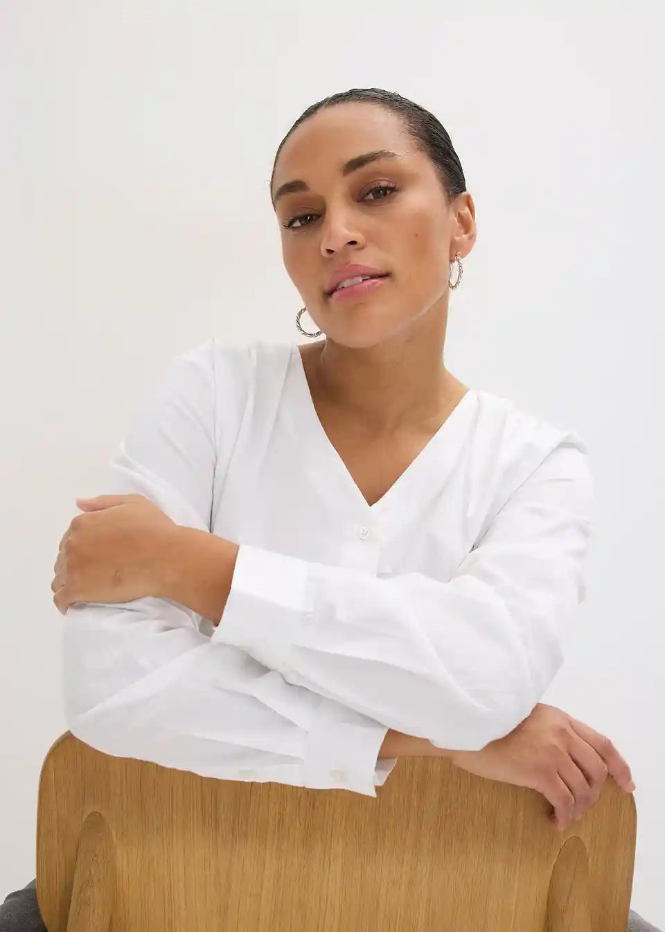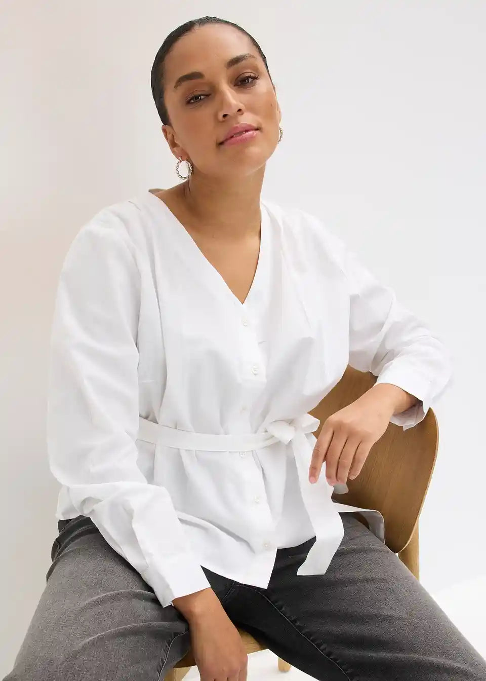 Fina bluza s lijepim detaljima nabora i skrivenom kopčanjem na gumbe
