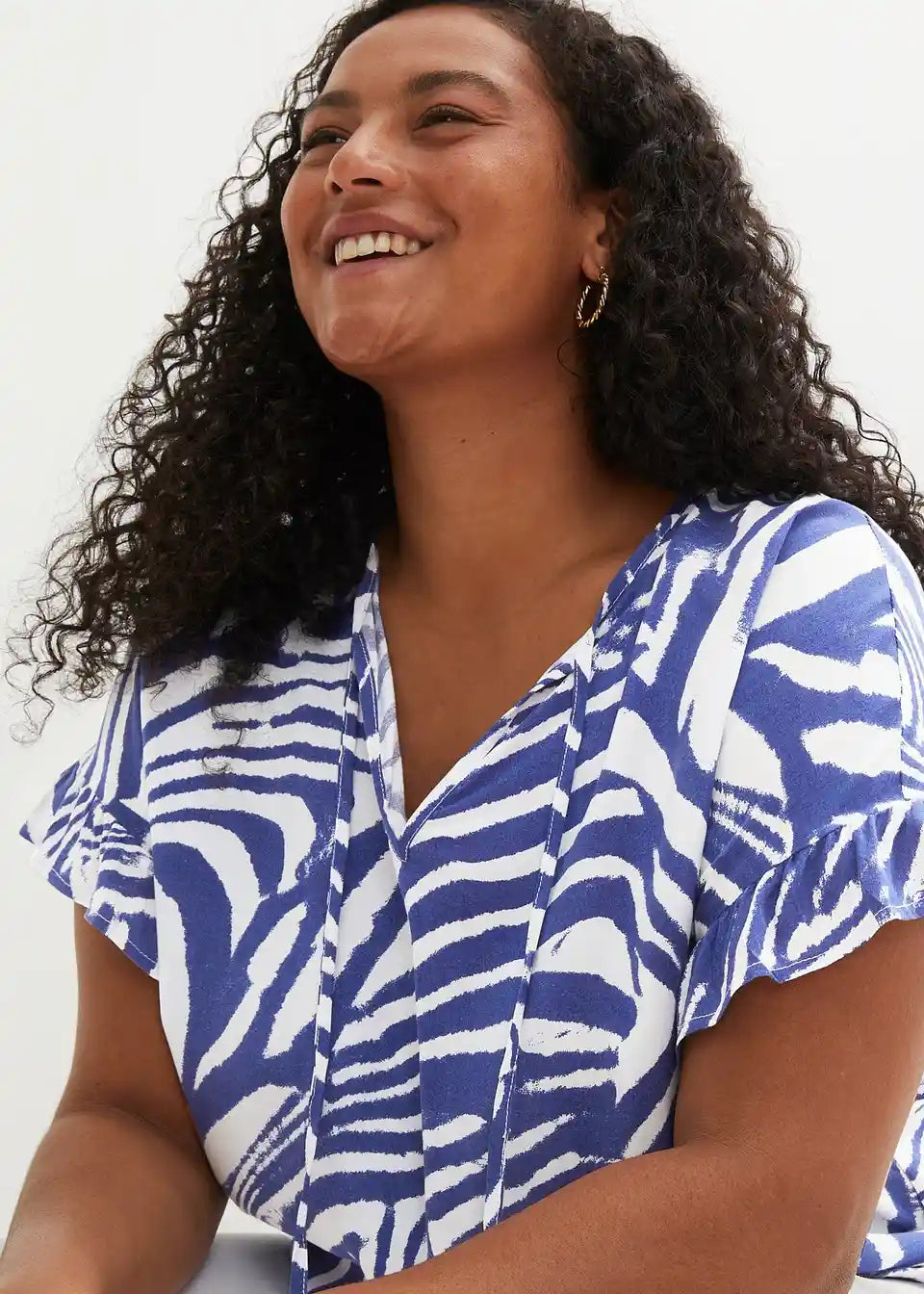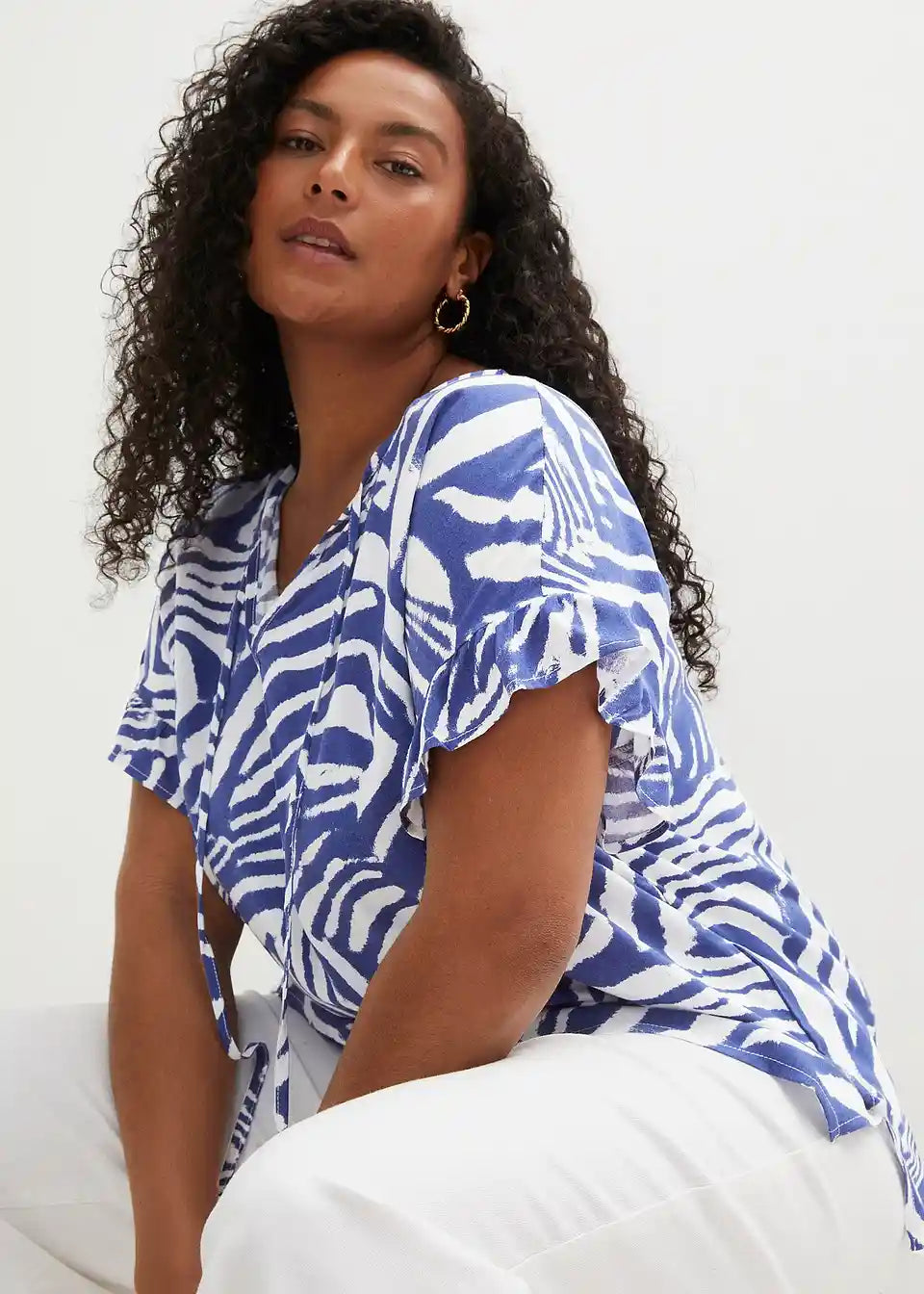 Prekrasna široka tunika s uzorkom i vezicama na izrezu.