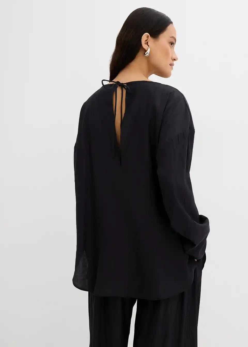 Oversize tunika-bluza s prorezom u obliku ključa na leđima, koji se može zatvoriti bojom usklađenim vrpcama